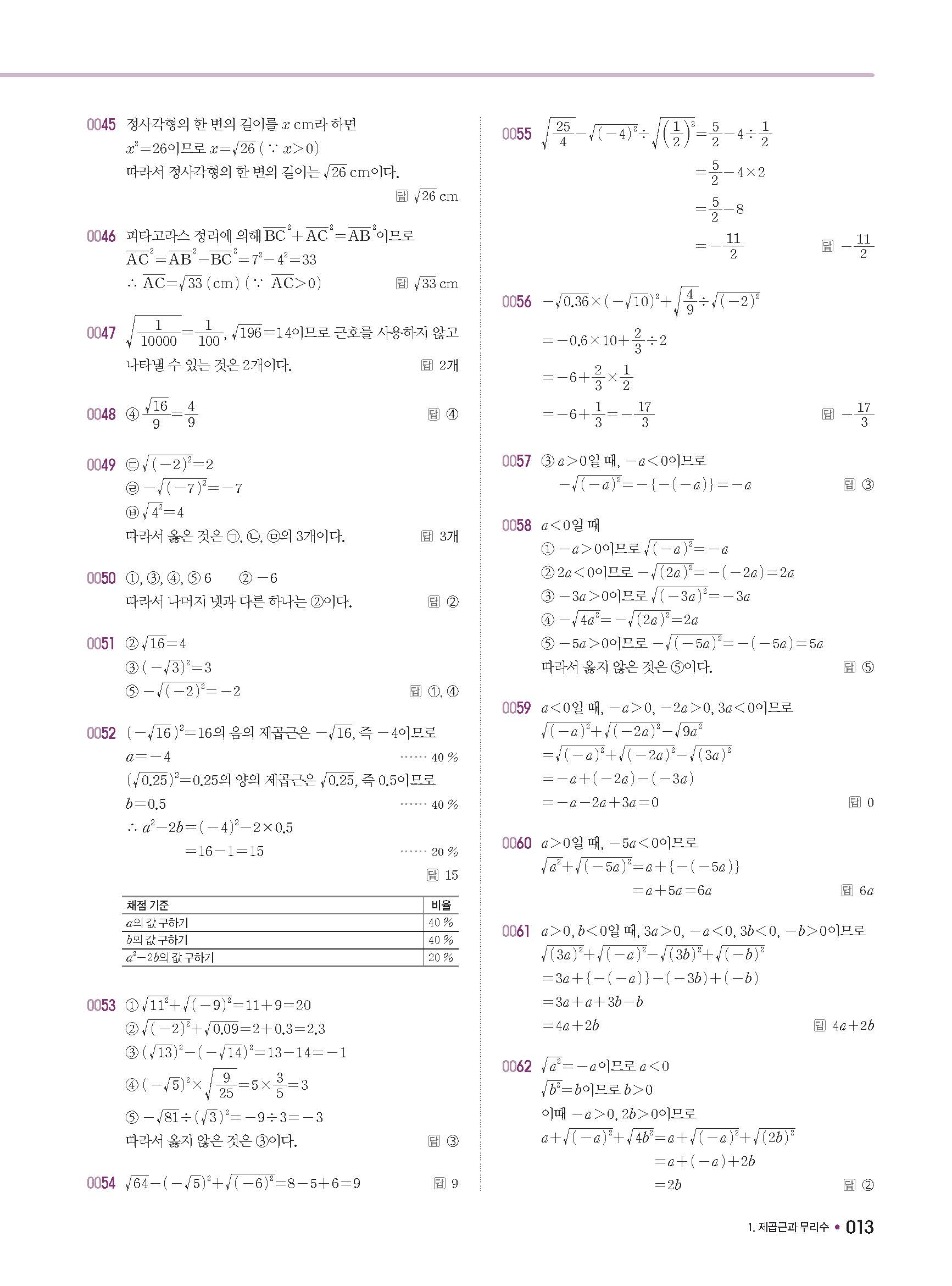 | 교학사 고호경 중3 수학교과서 답지 | |