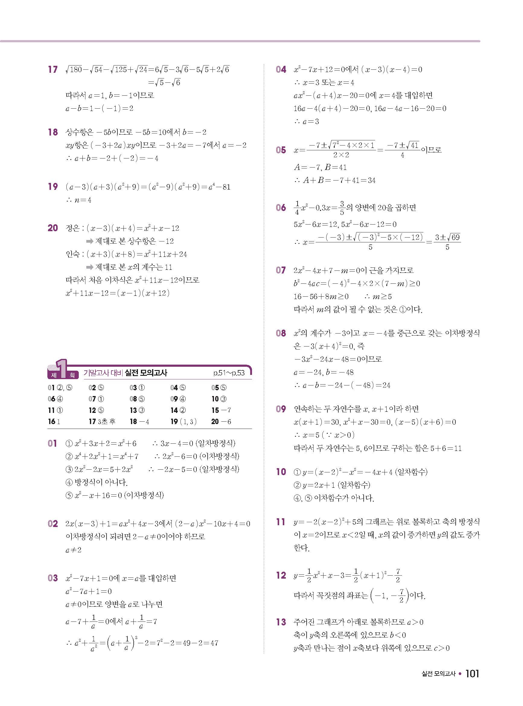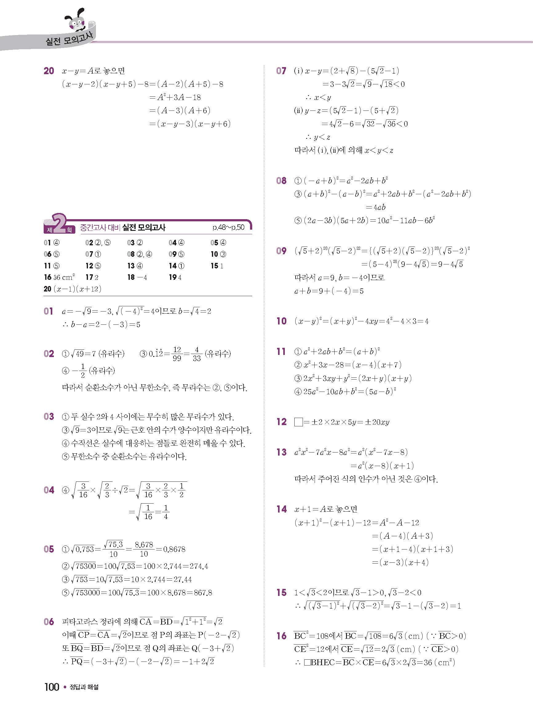 | 천재교육 이준열 중3 수학교과서 답지 | |