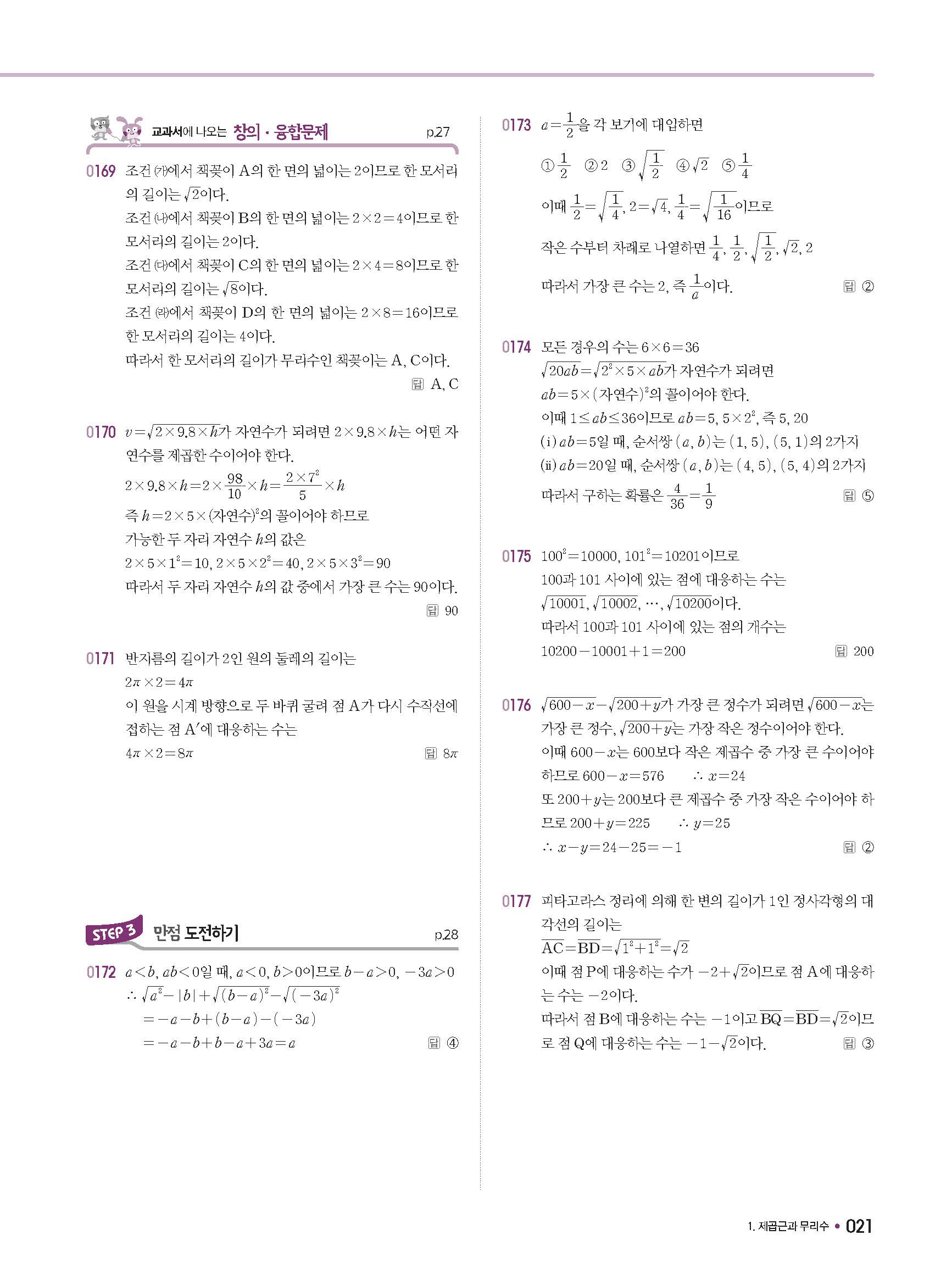 | 천재교육 류희찬 중3 수학교과서 답지 | |