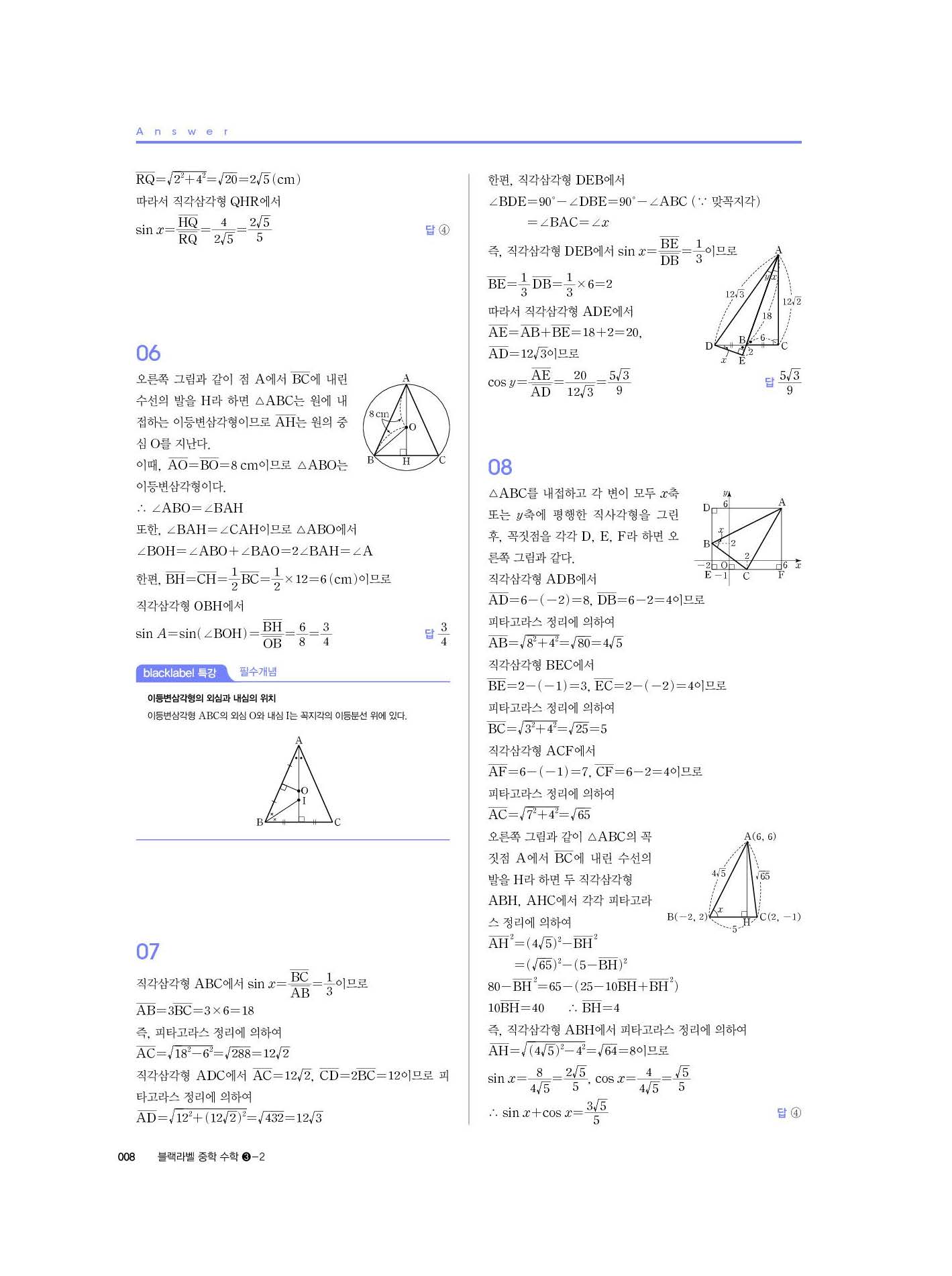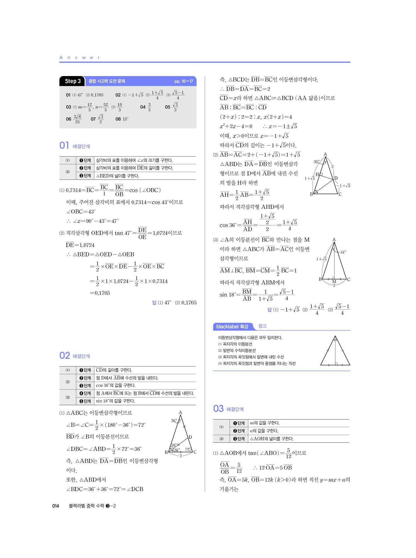 블랙라벨 중학수학 3-2 답지 해설 사진답지 빠른답지 모바일최적화 중3하