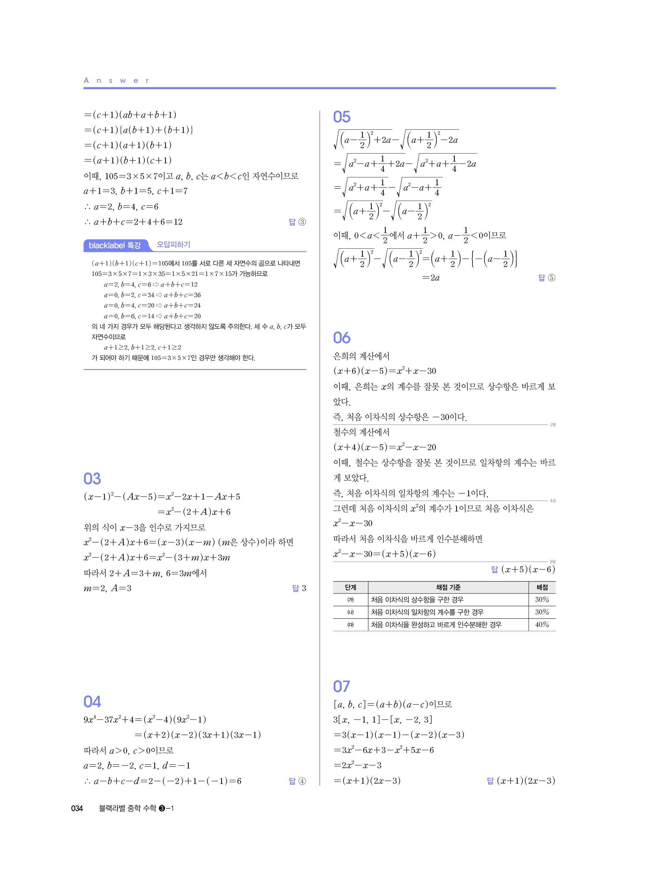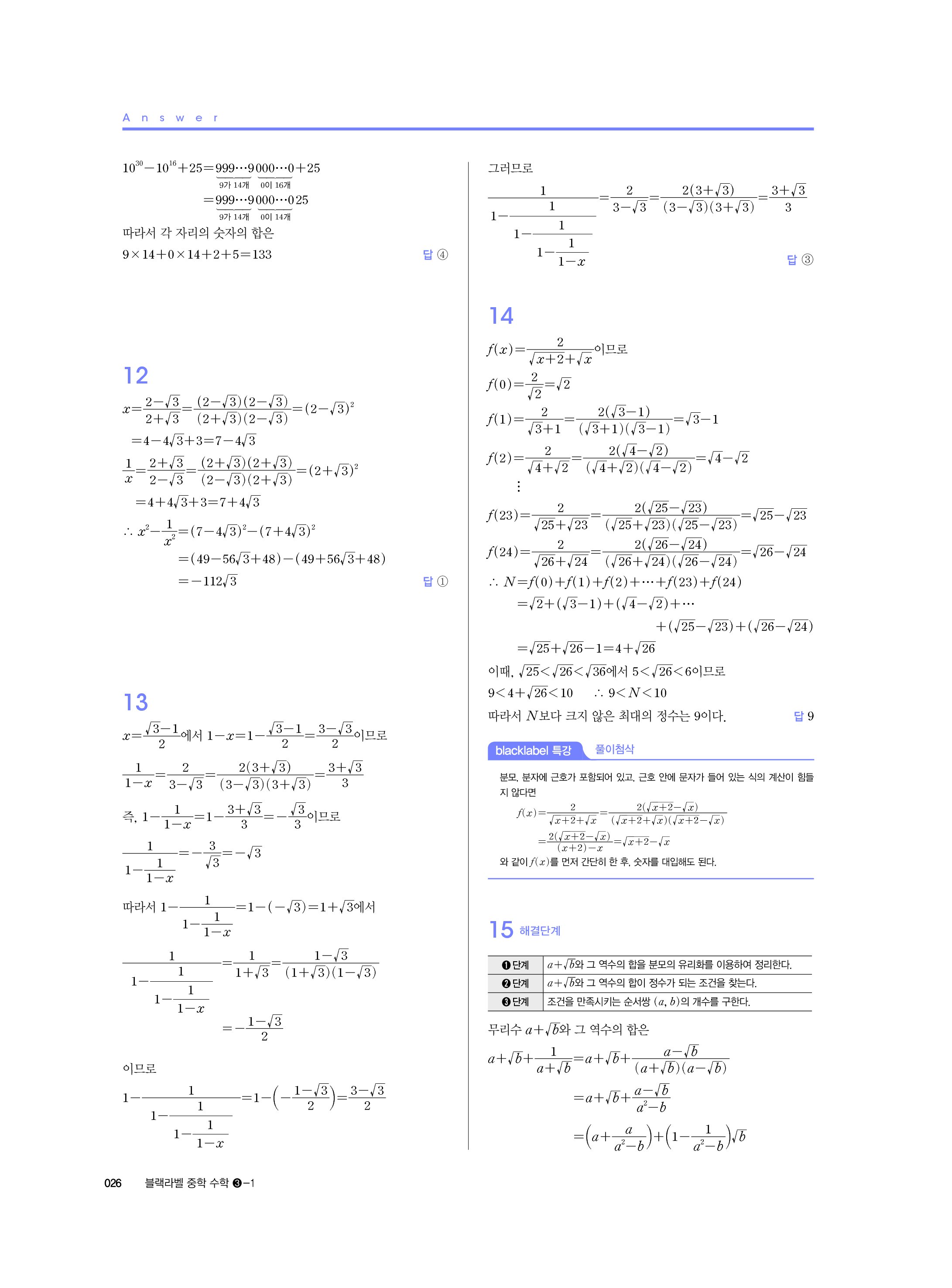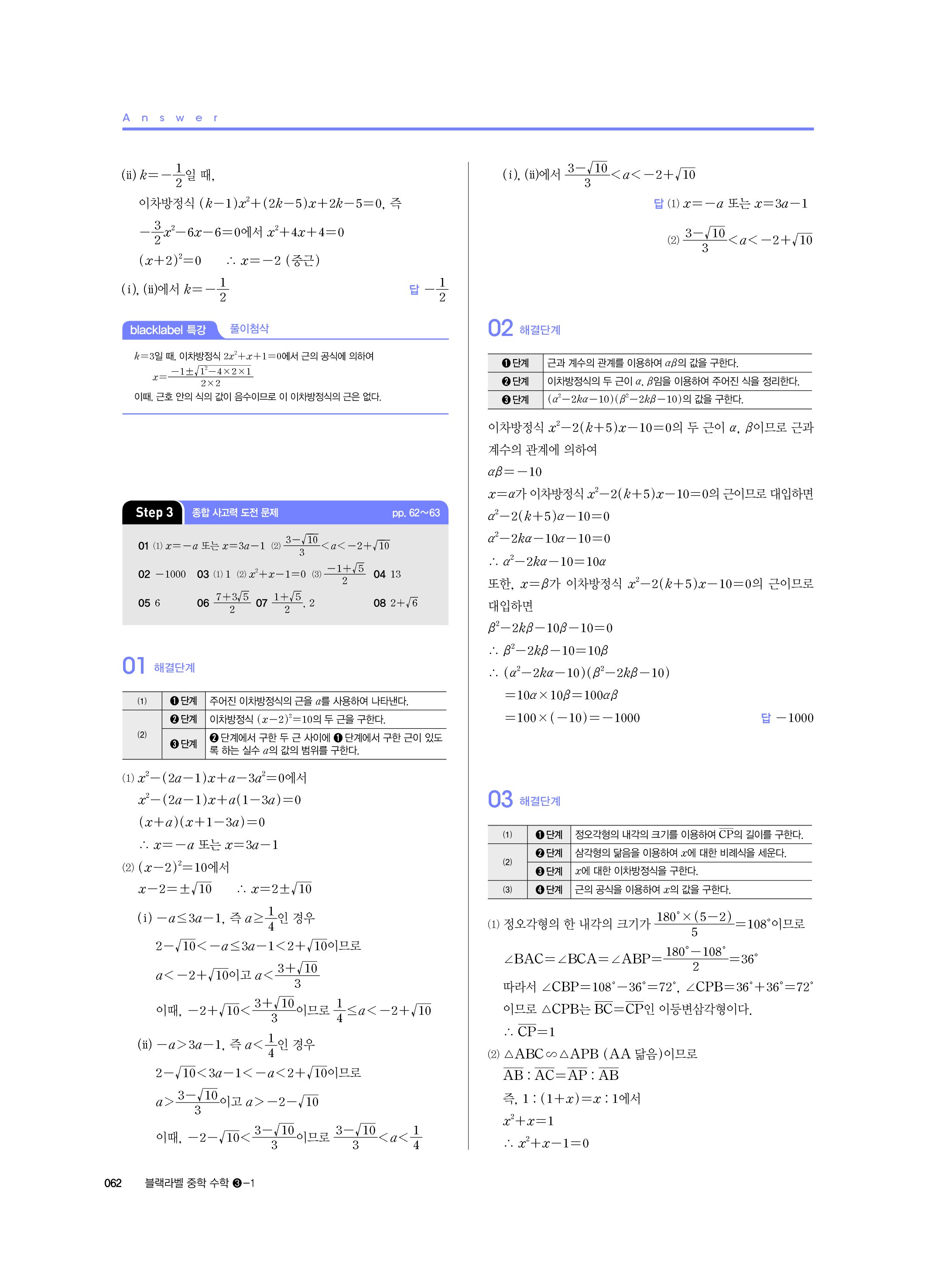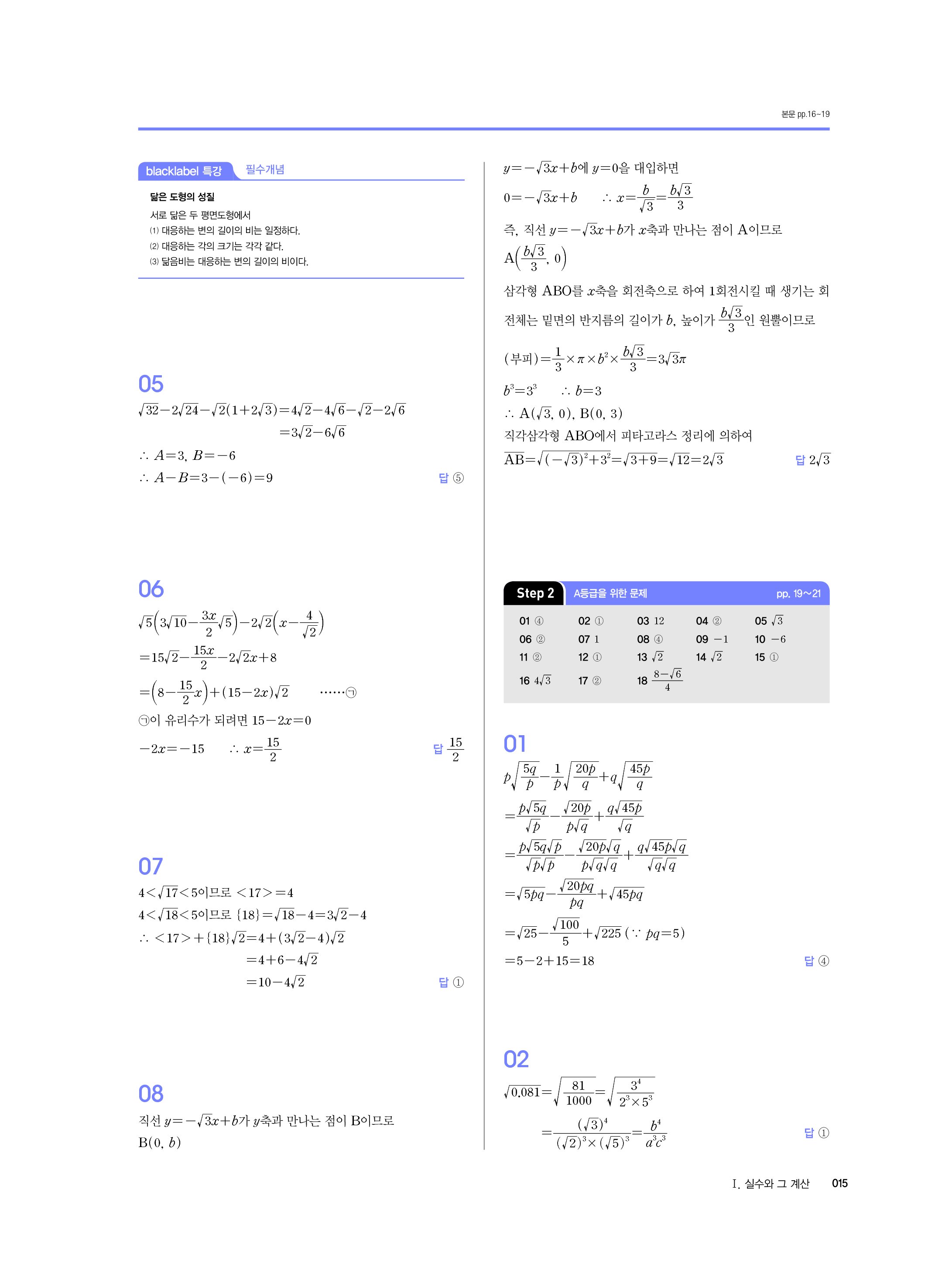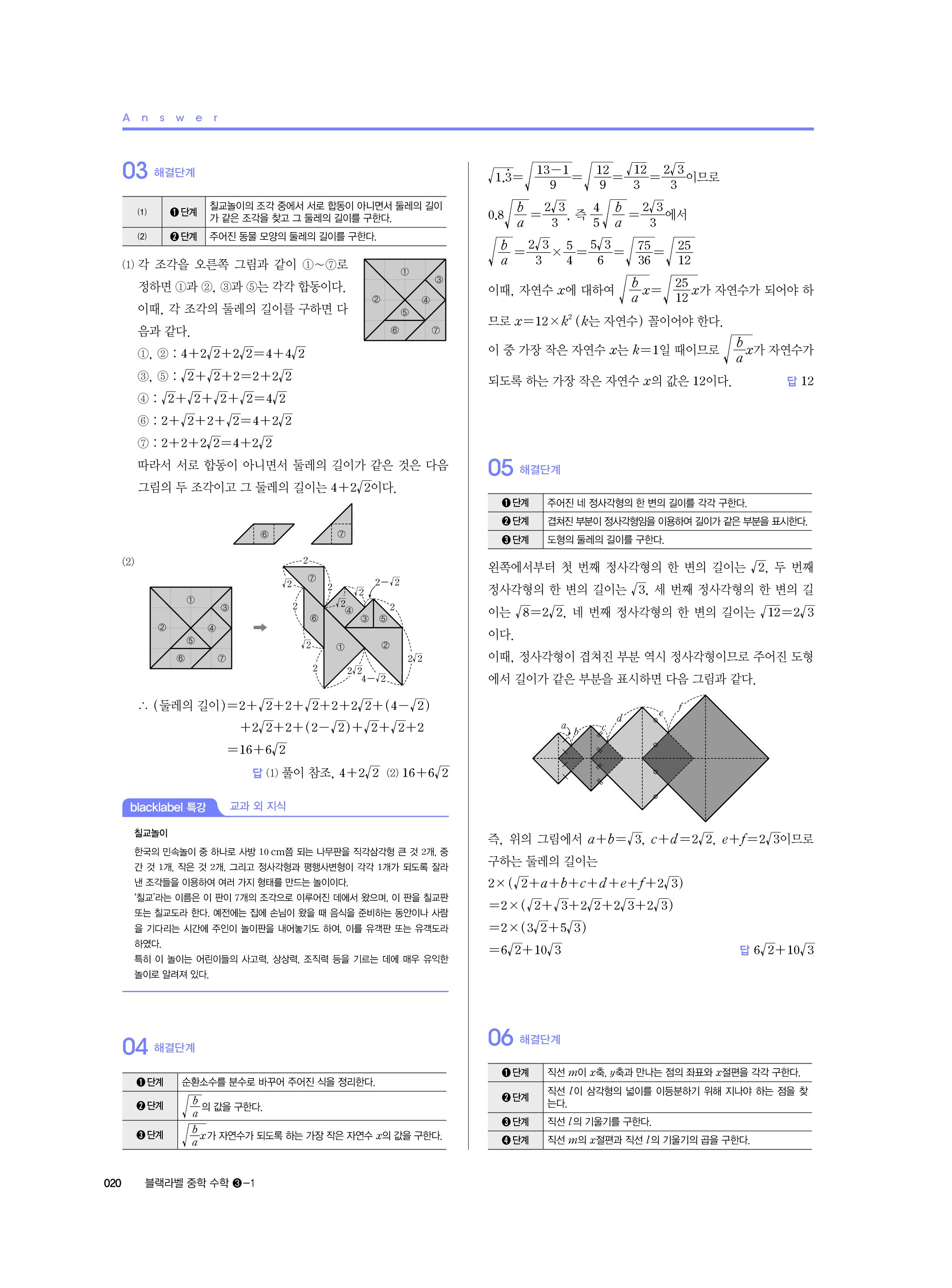 블랙라벨 중학수학 3-1 답지 해설 사진답지 빠른답지 모바일최적화 중3상