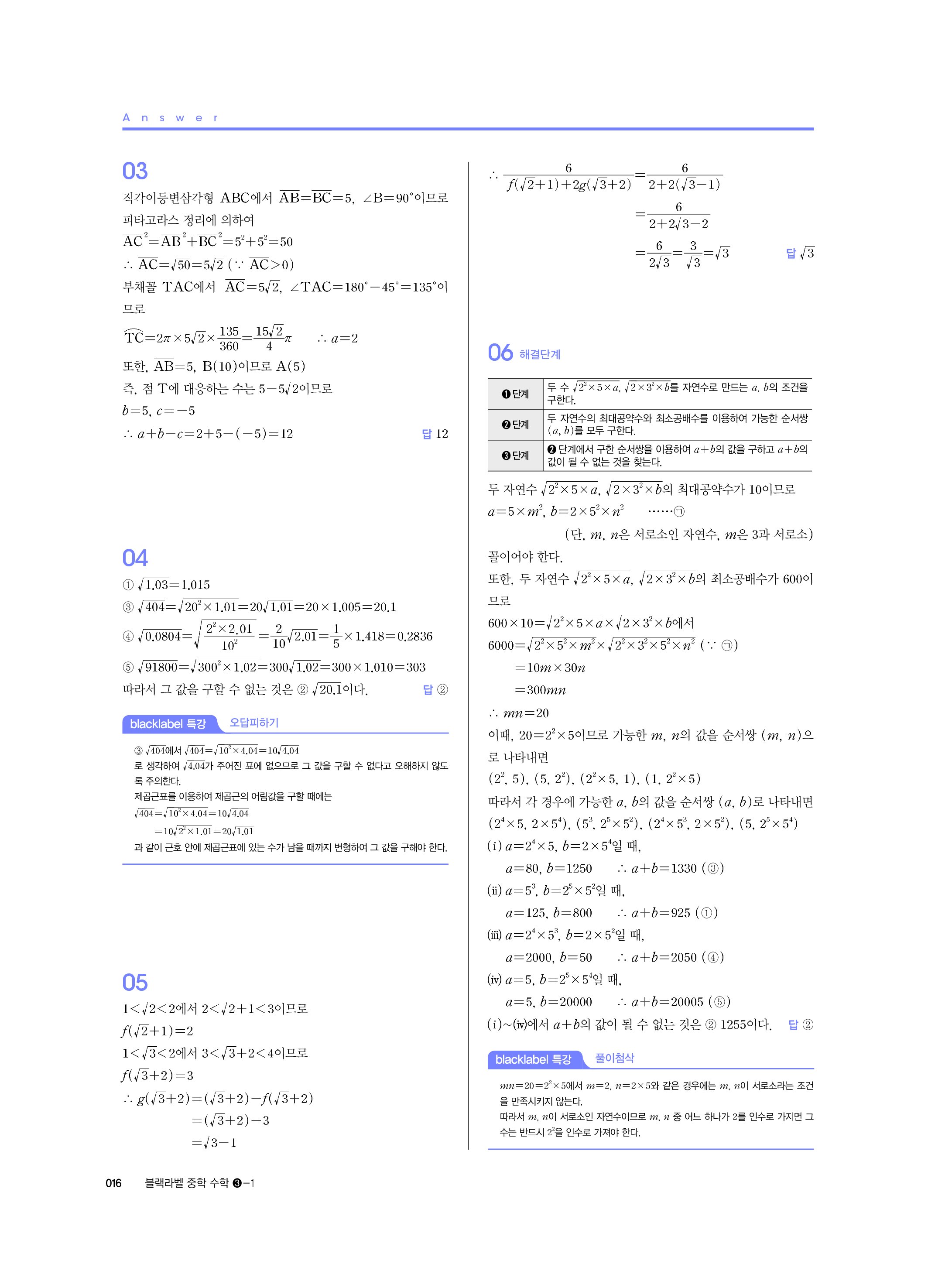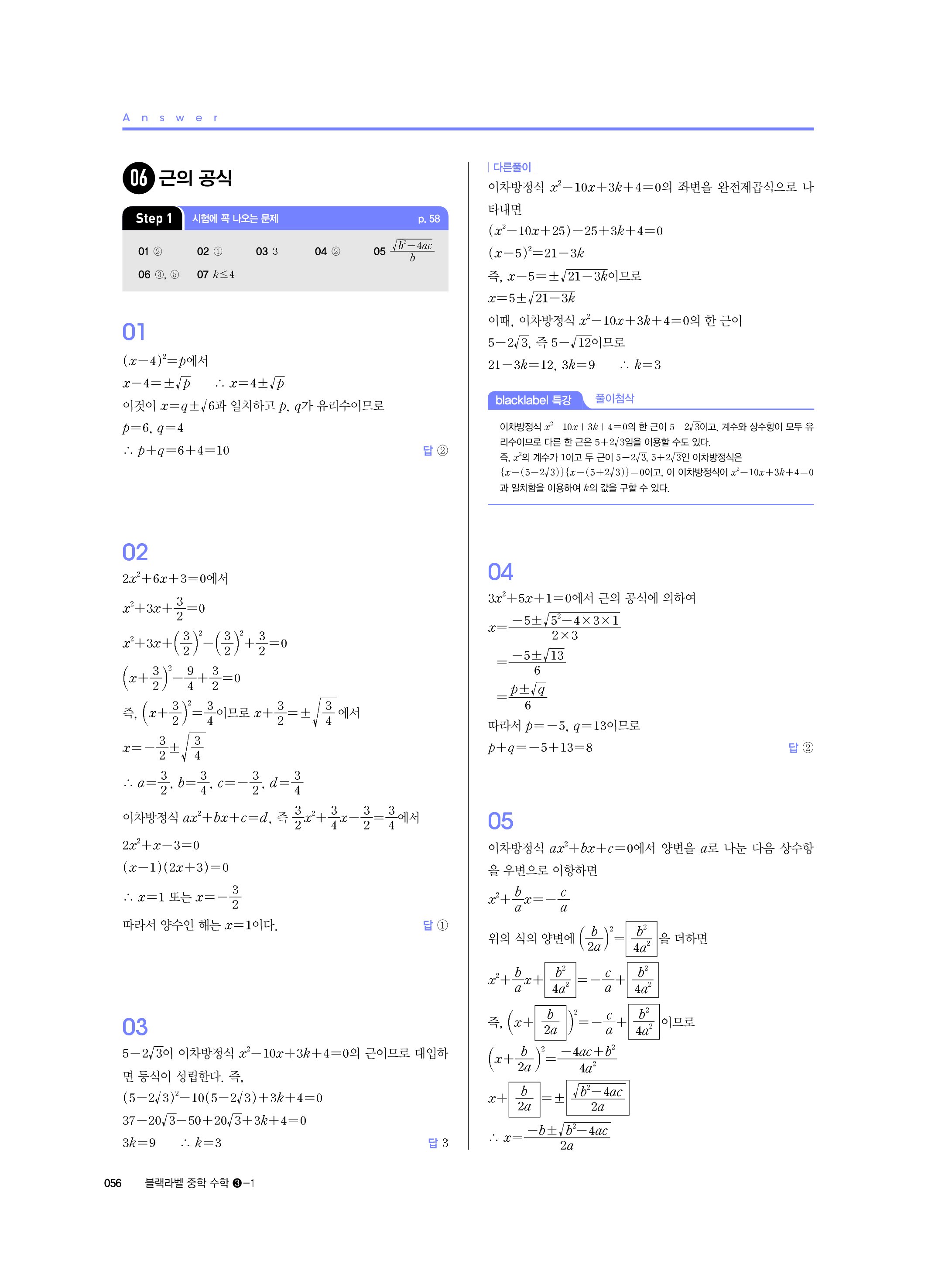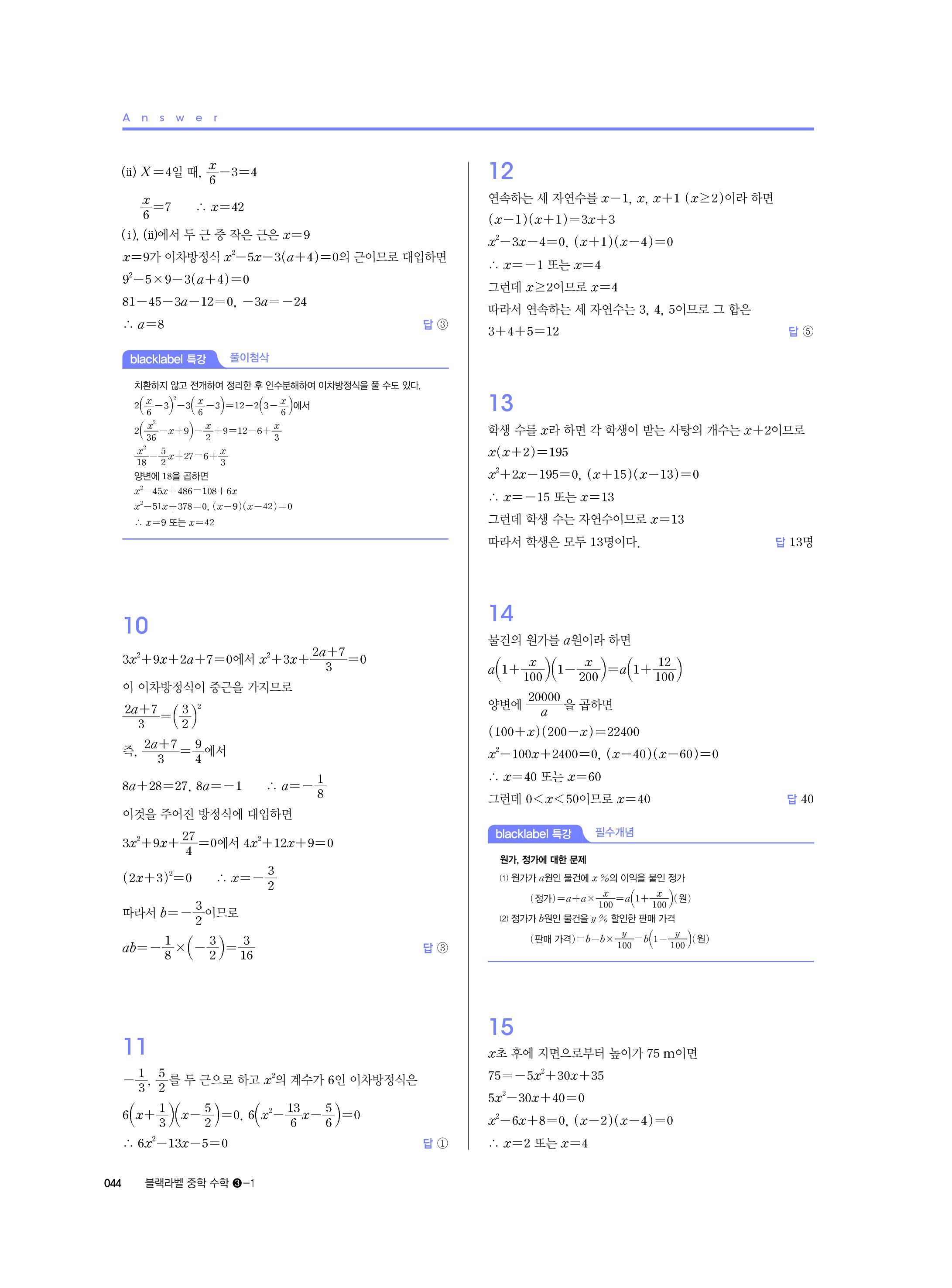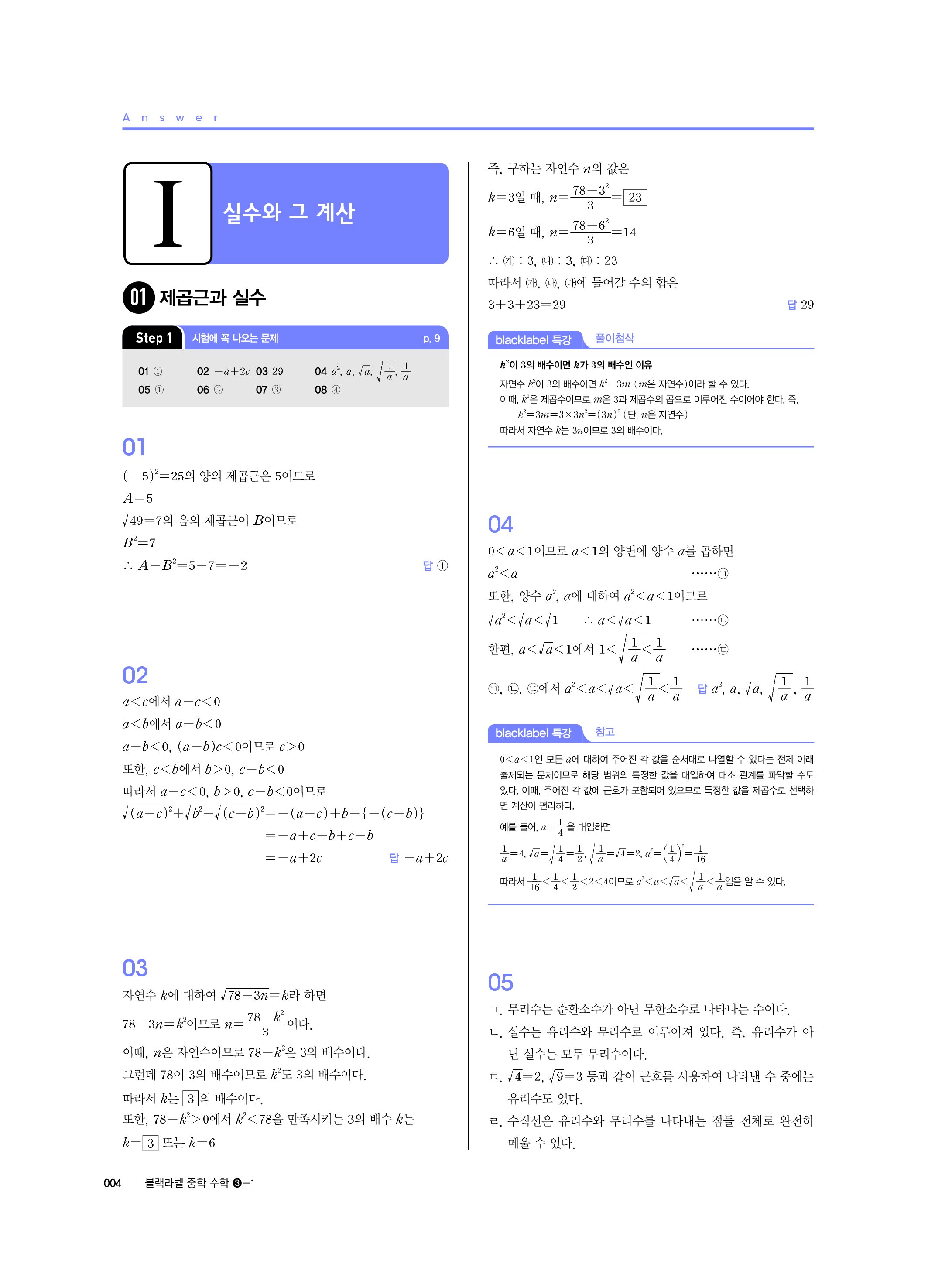 블랙라벨 중학수학 3-1 답지 해설 사진답지 빠른답지 모바일최적화 중3상