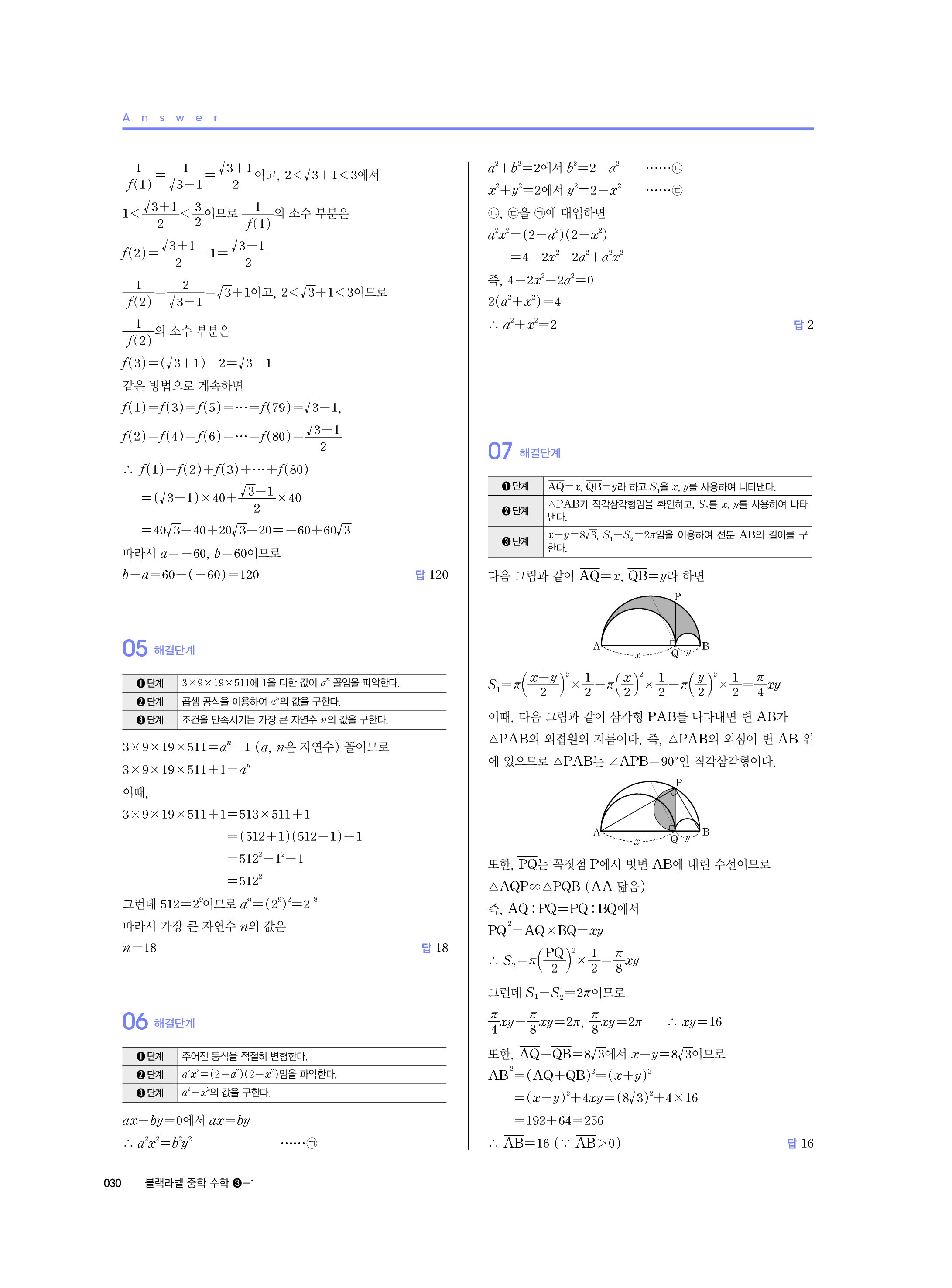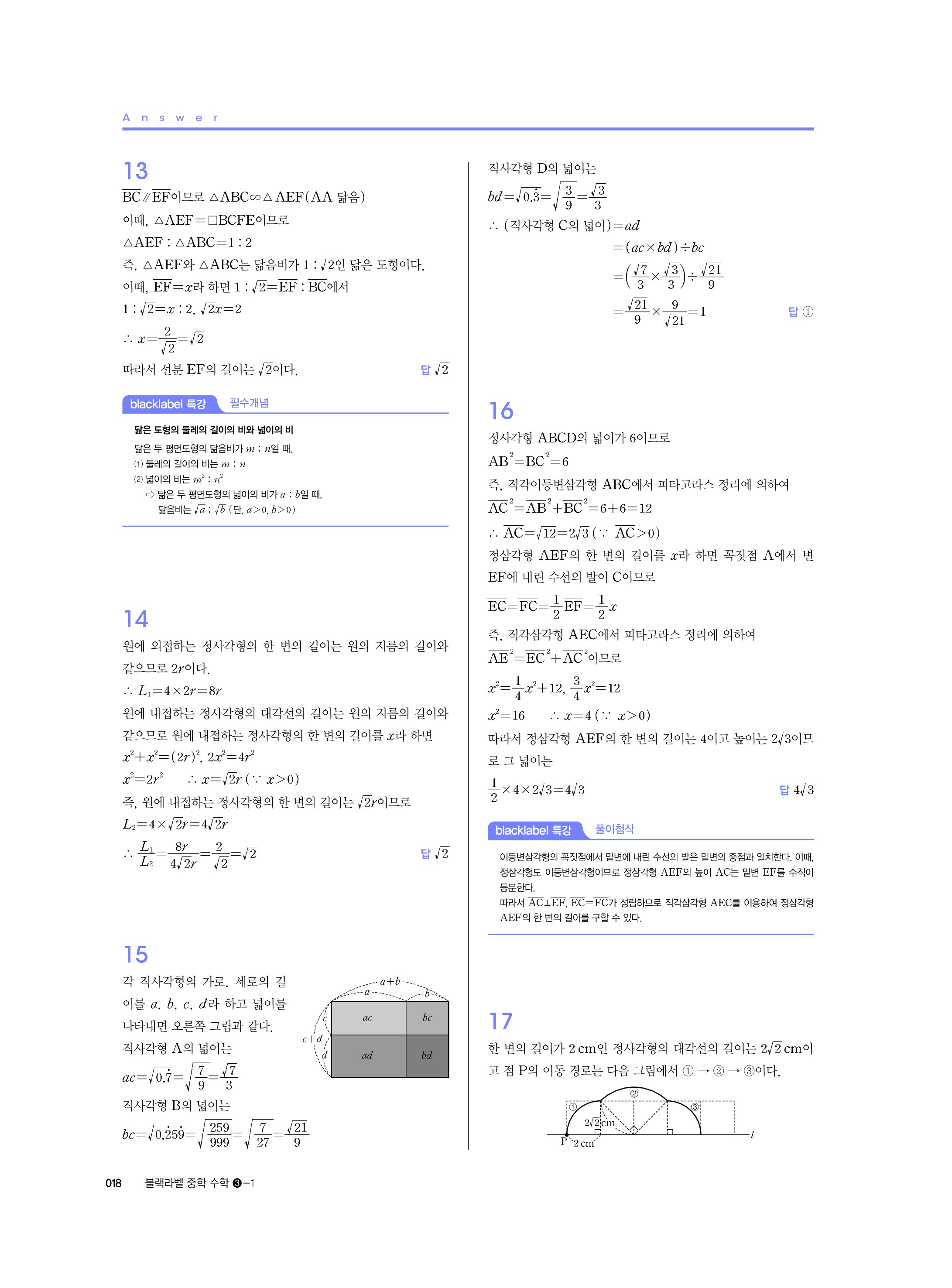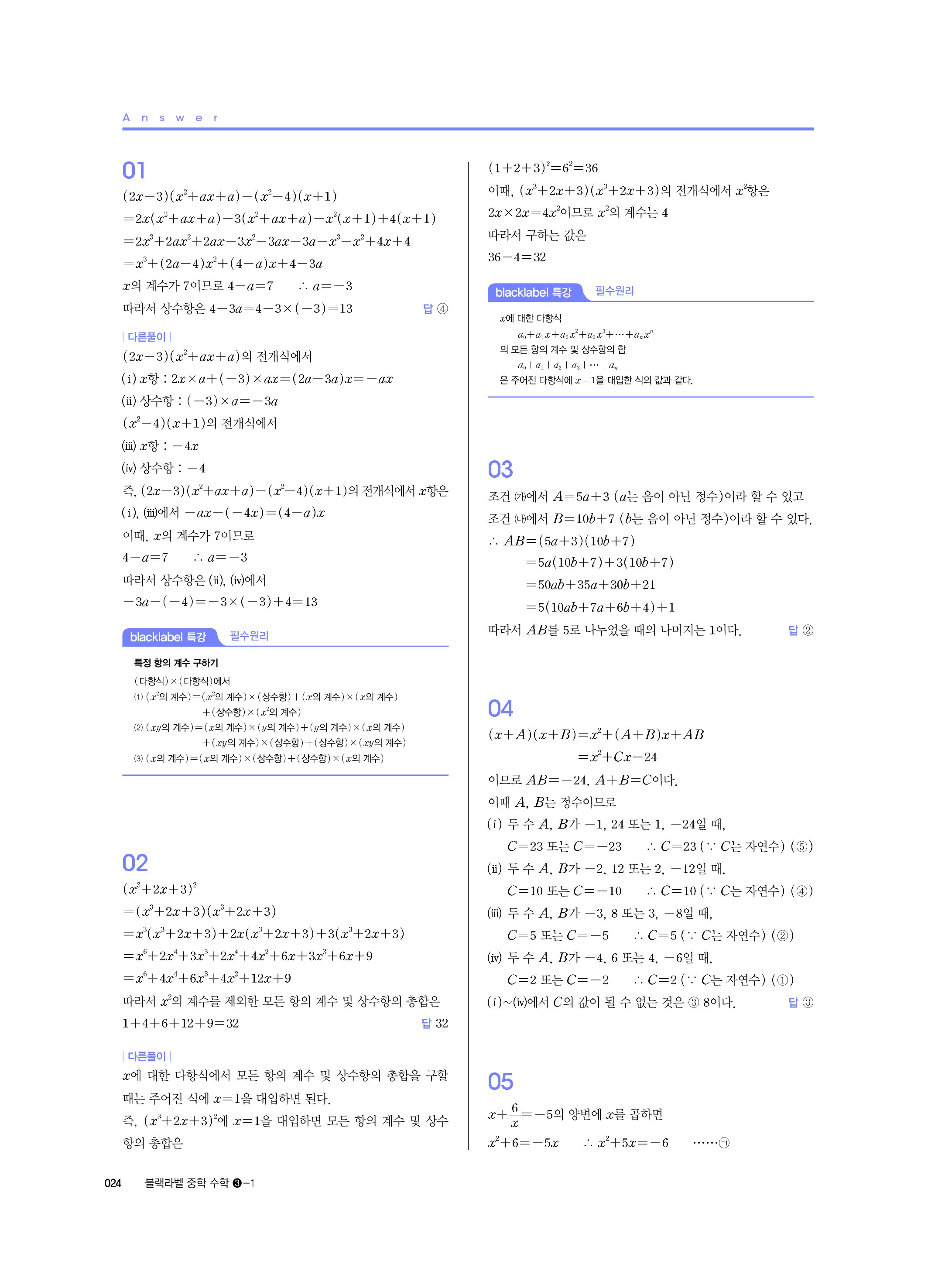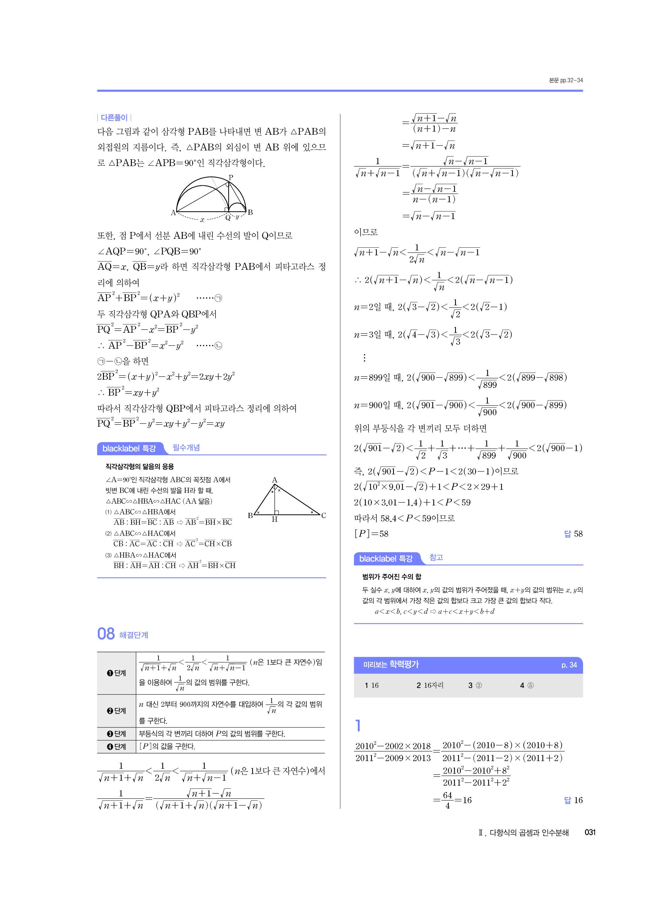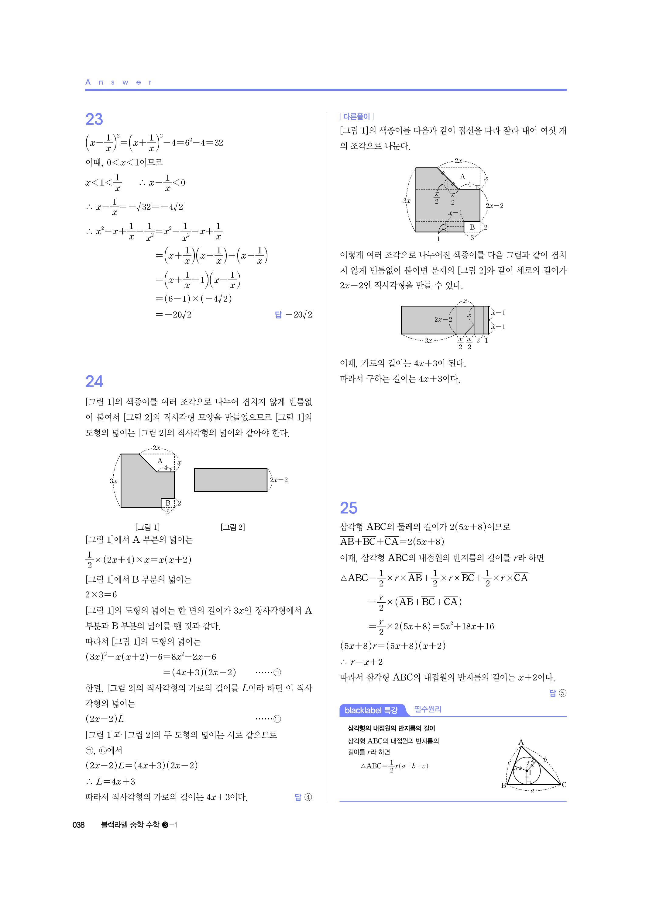 블랙라벨 중학수학 3-1 답지 해설 사진답지 빠른답지 모바일최적화 중3상