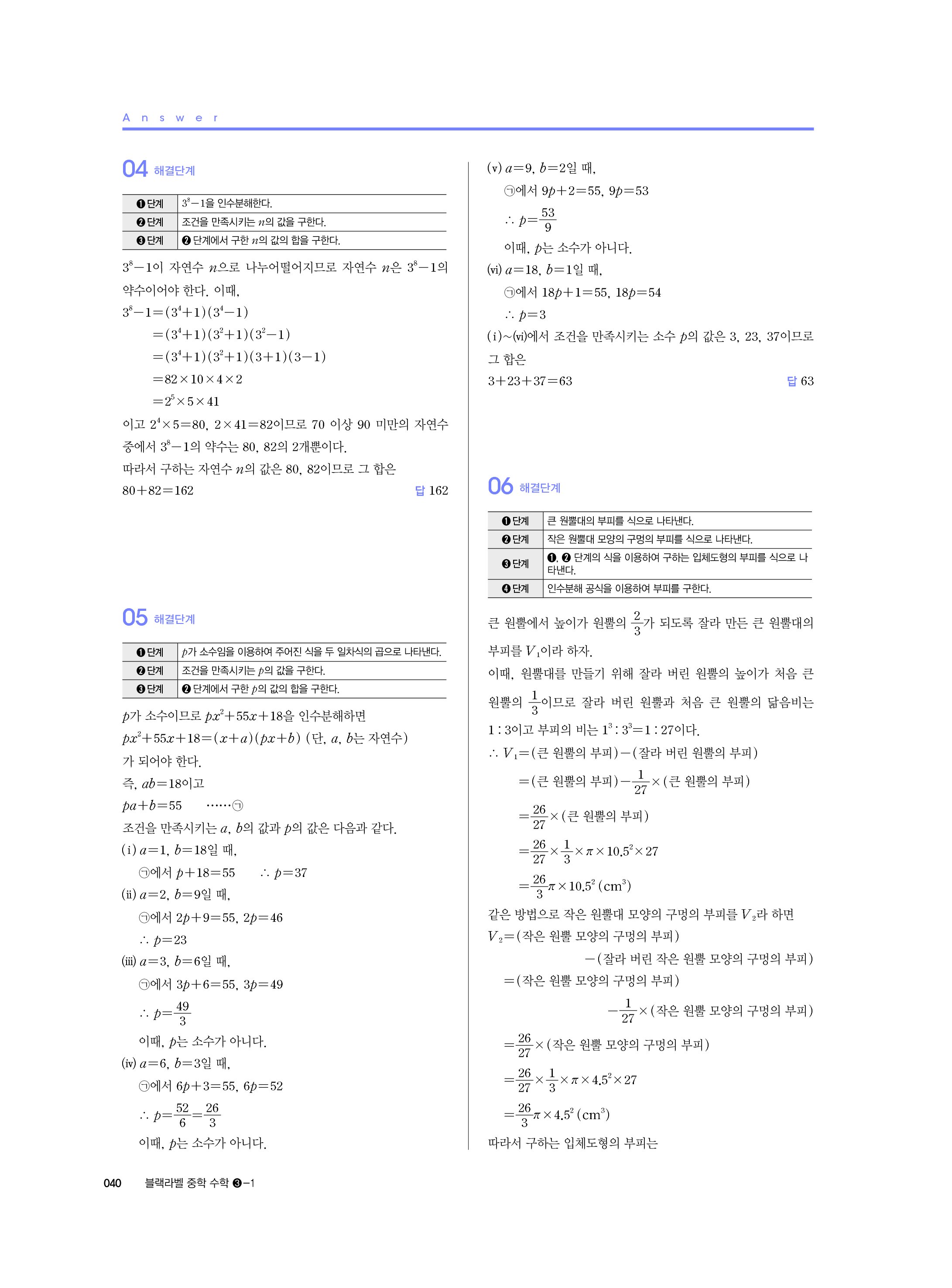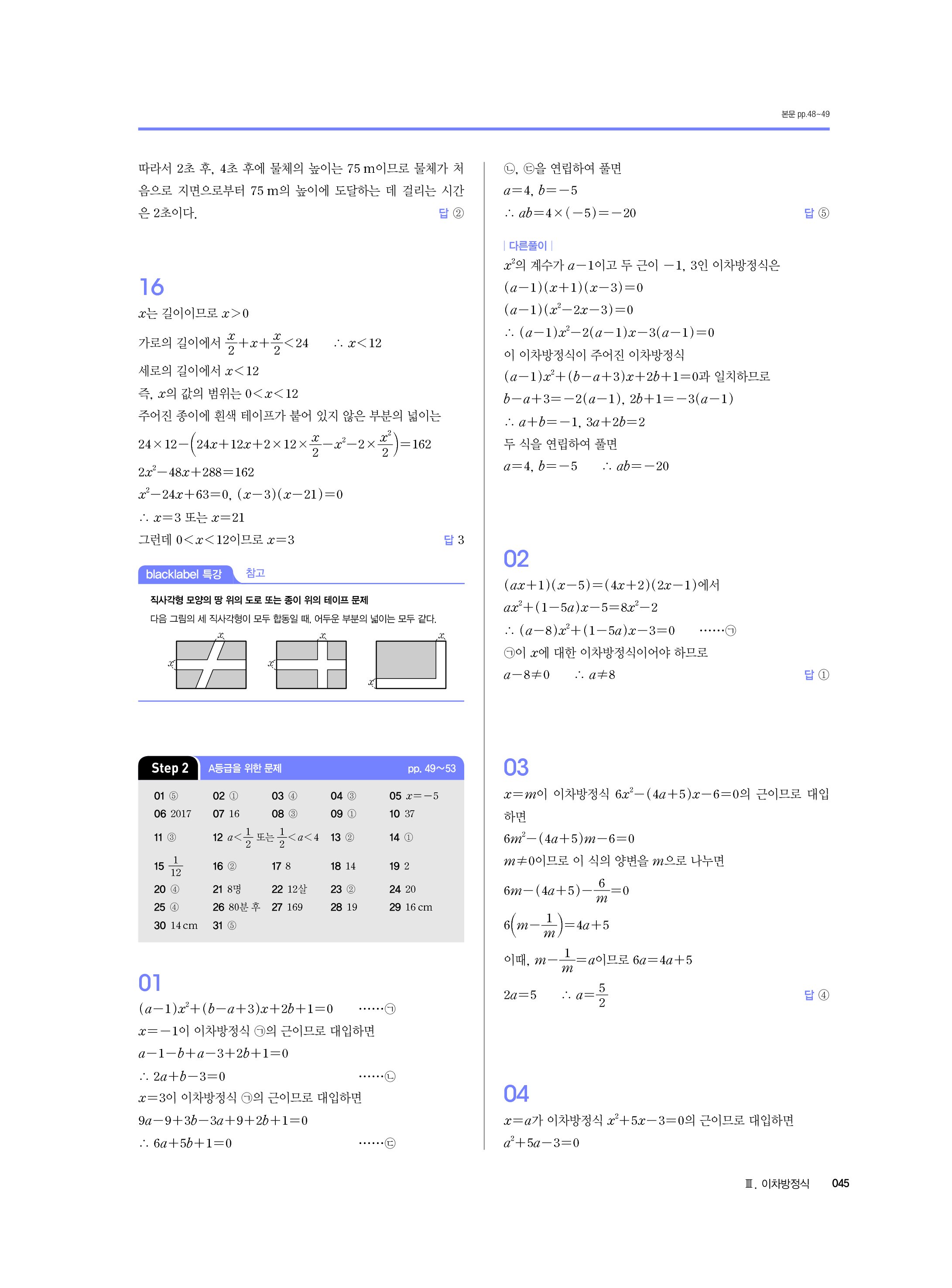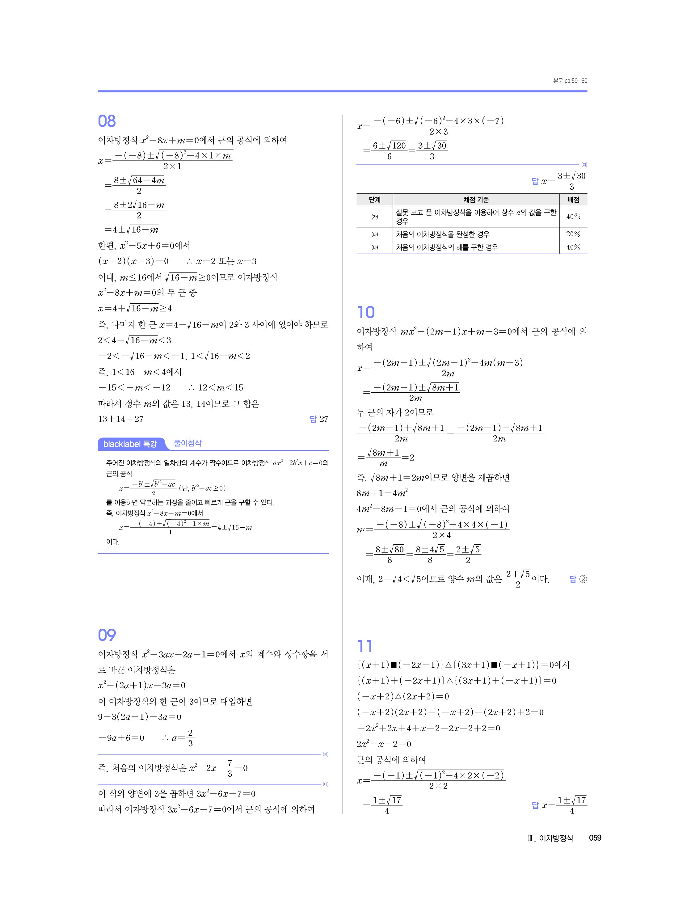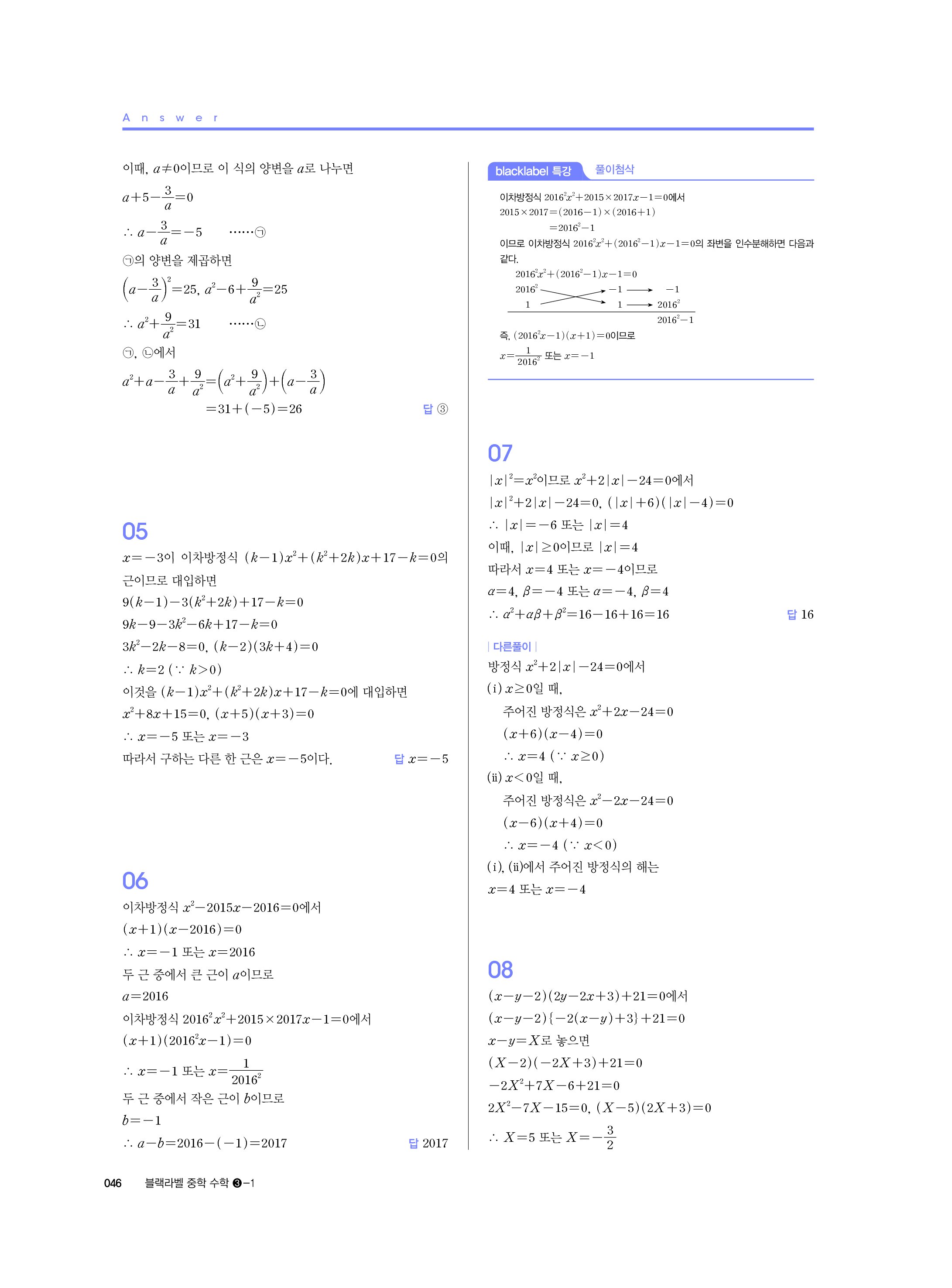 블랙라벨 중학수학 3-1 답지 해설 사진답지 빠른답지 모바일최적화 중3상
