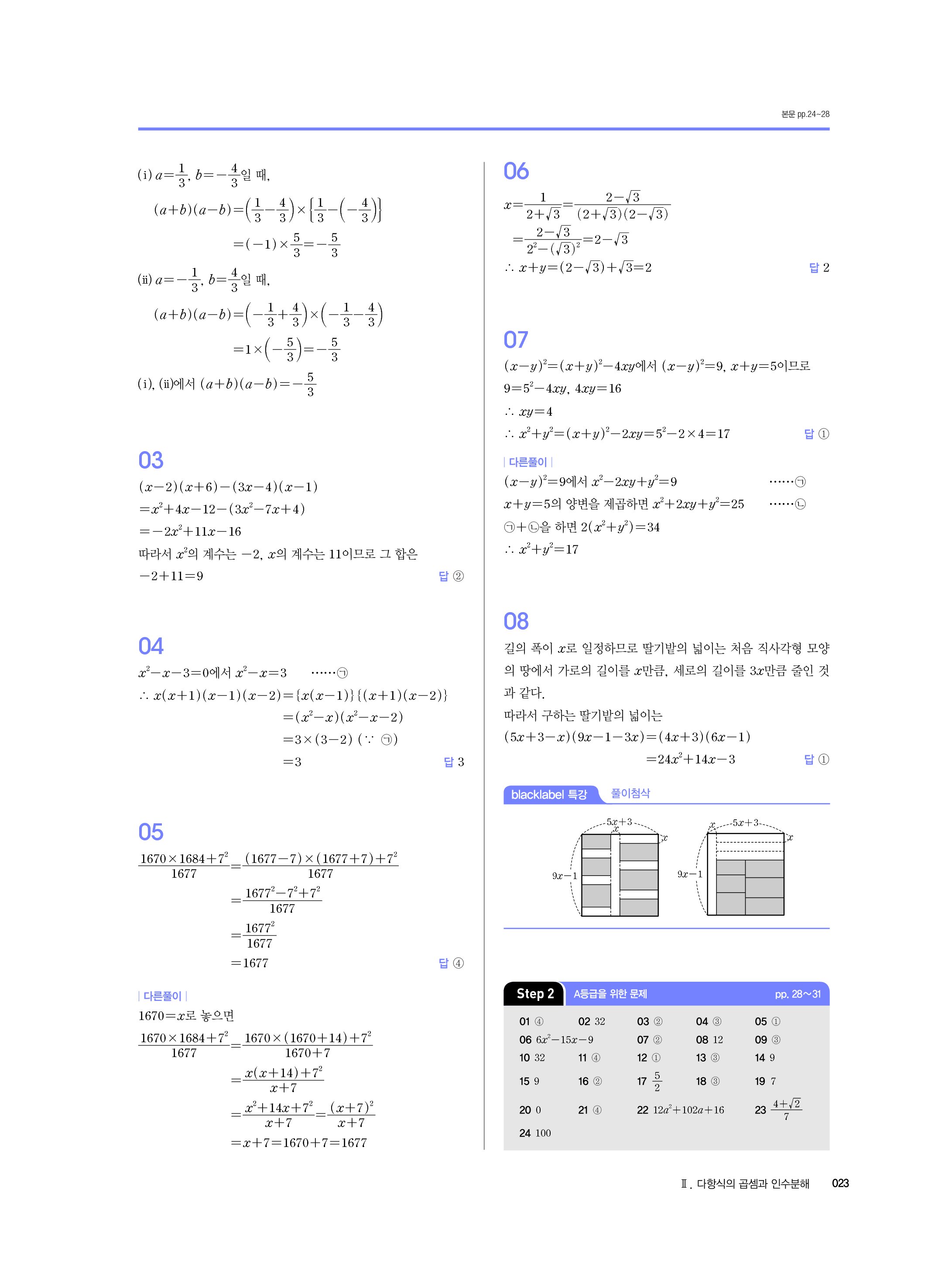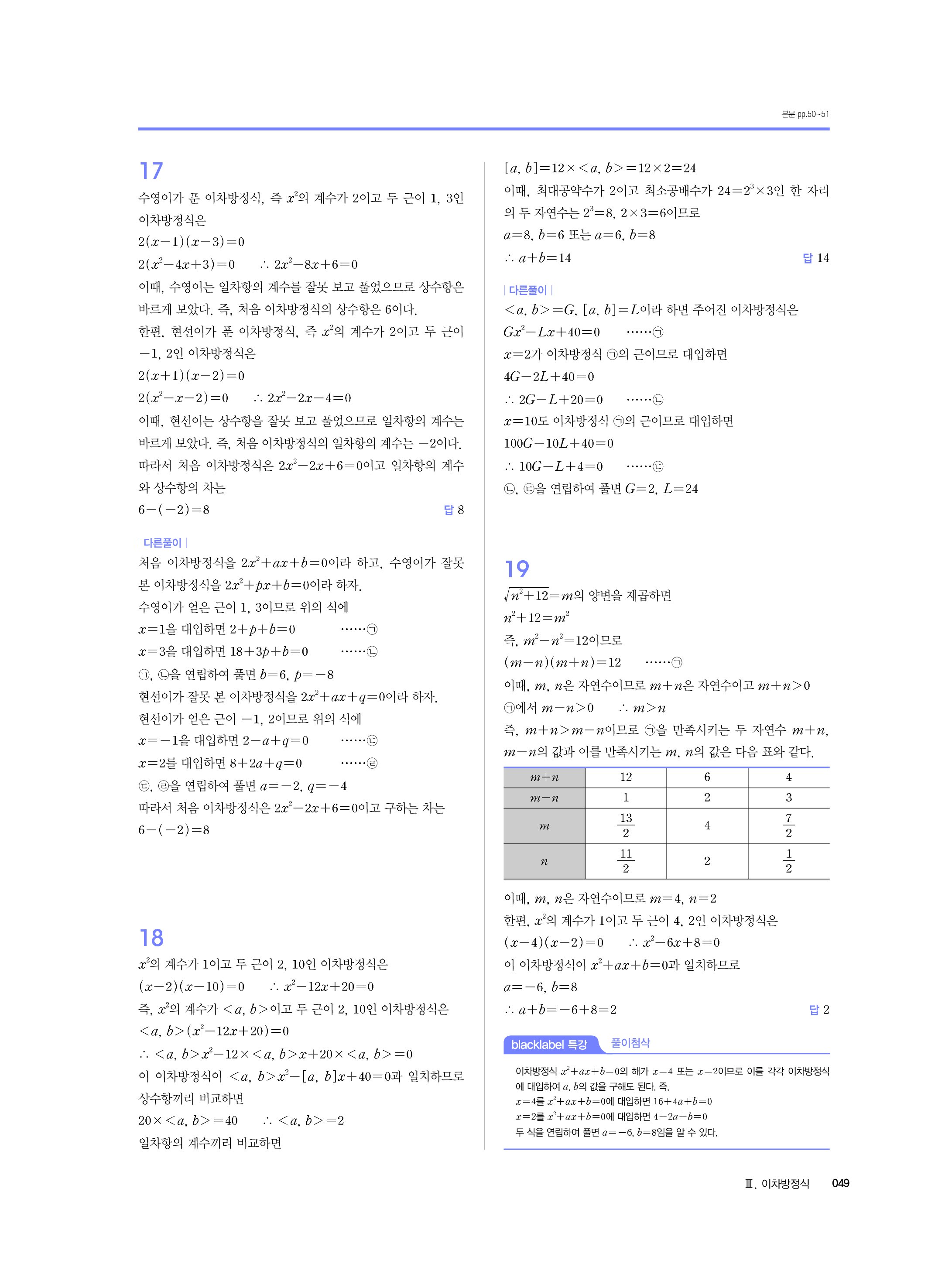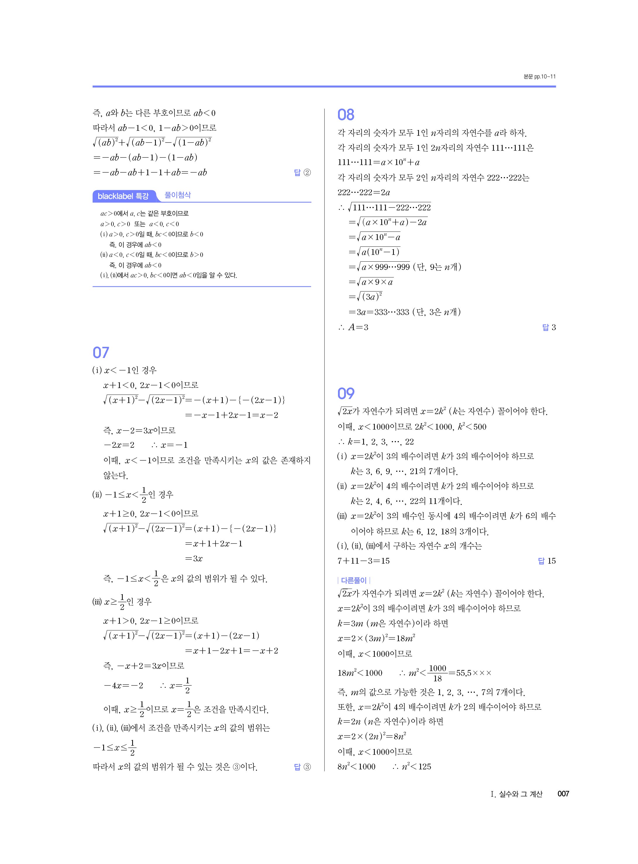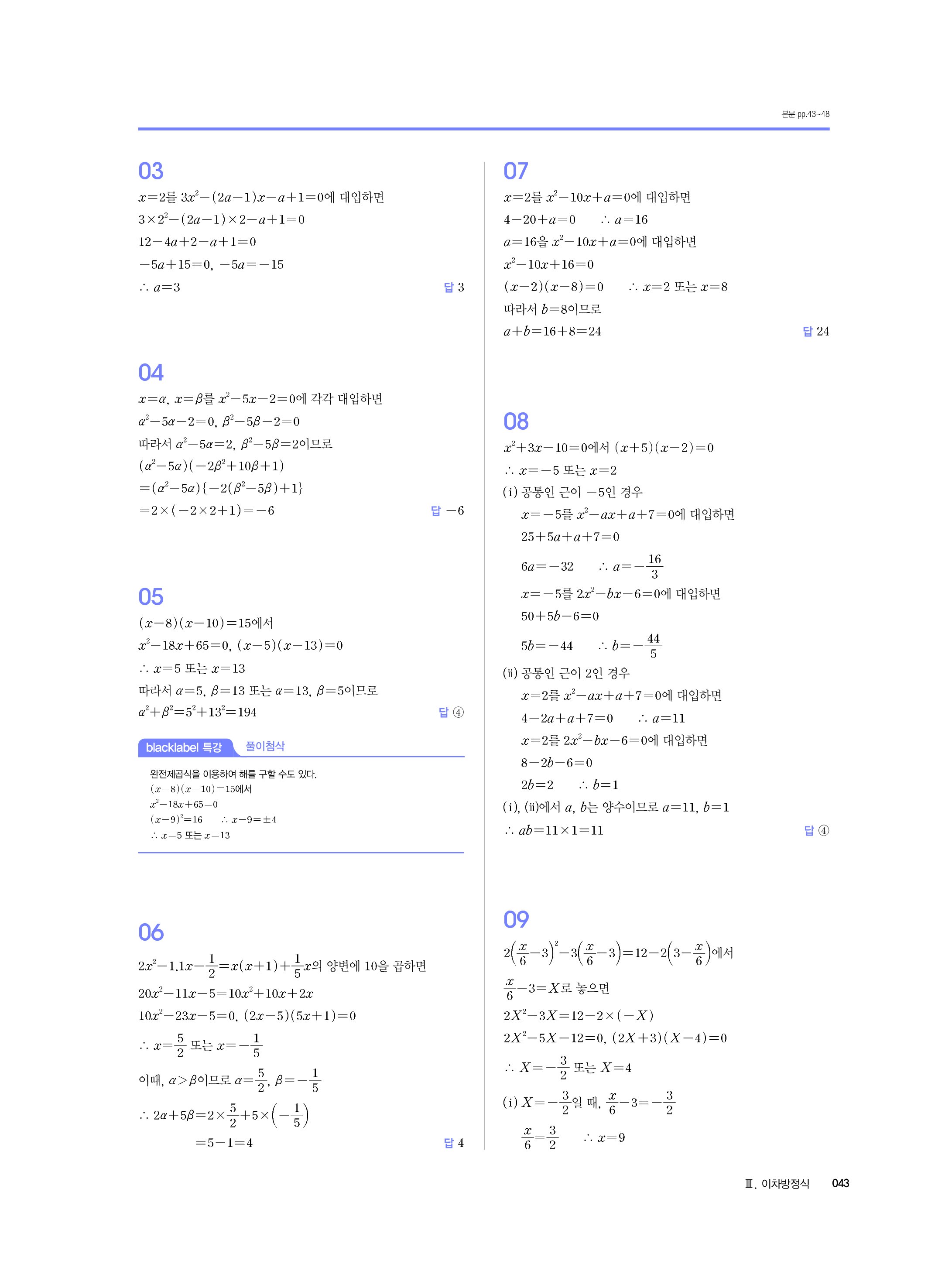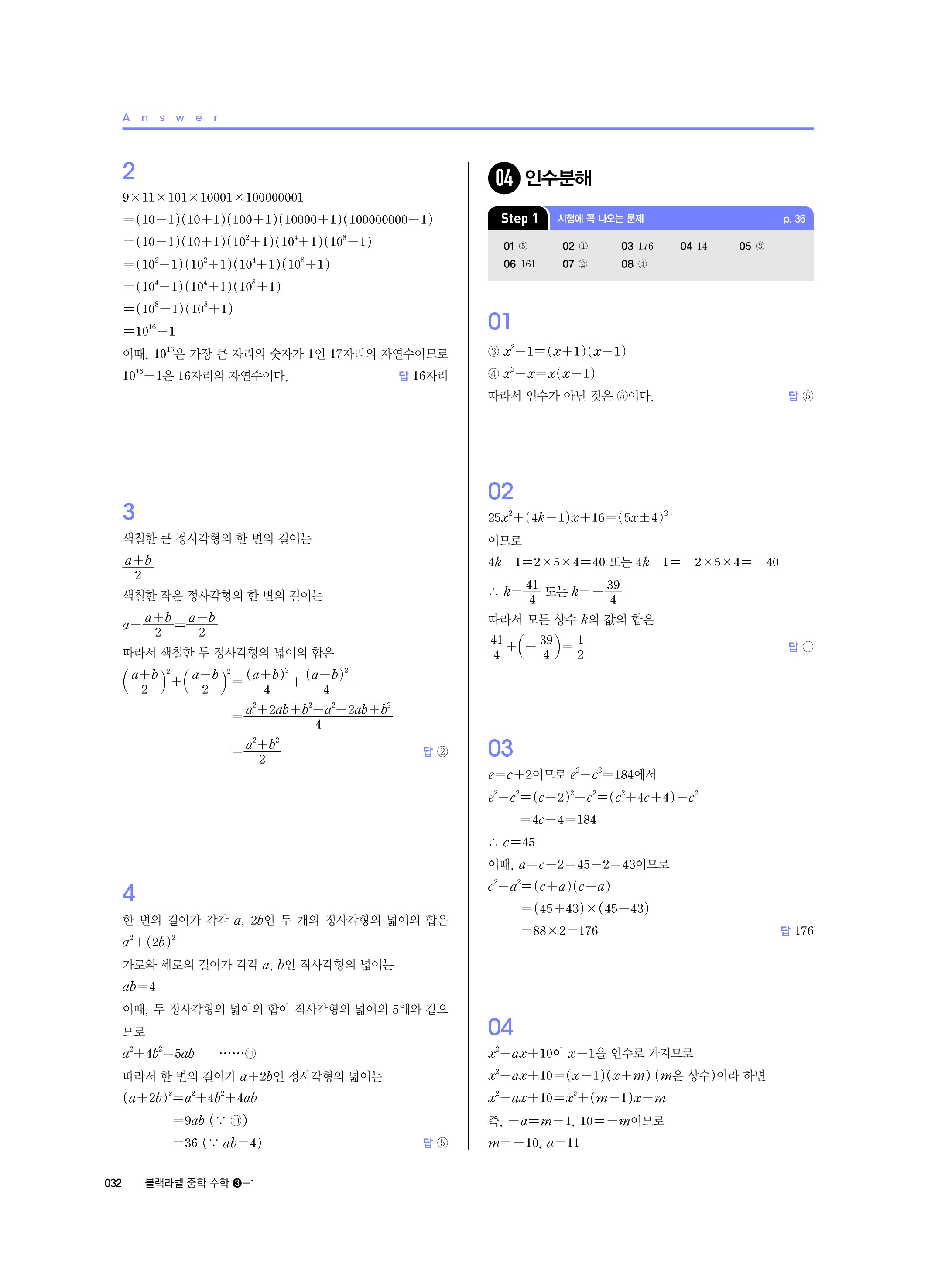 블랙라벨 중학수학 3-1 답지 해설 사진답지 빠른답지 모바일최적화 중3상