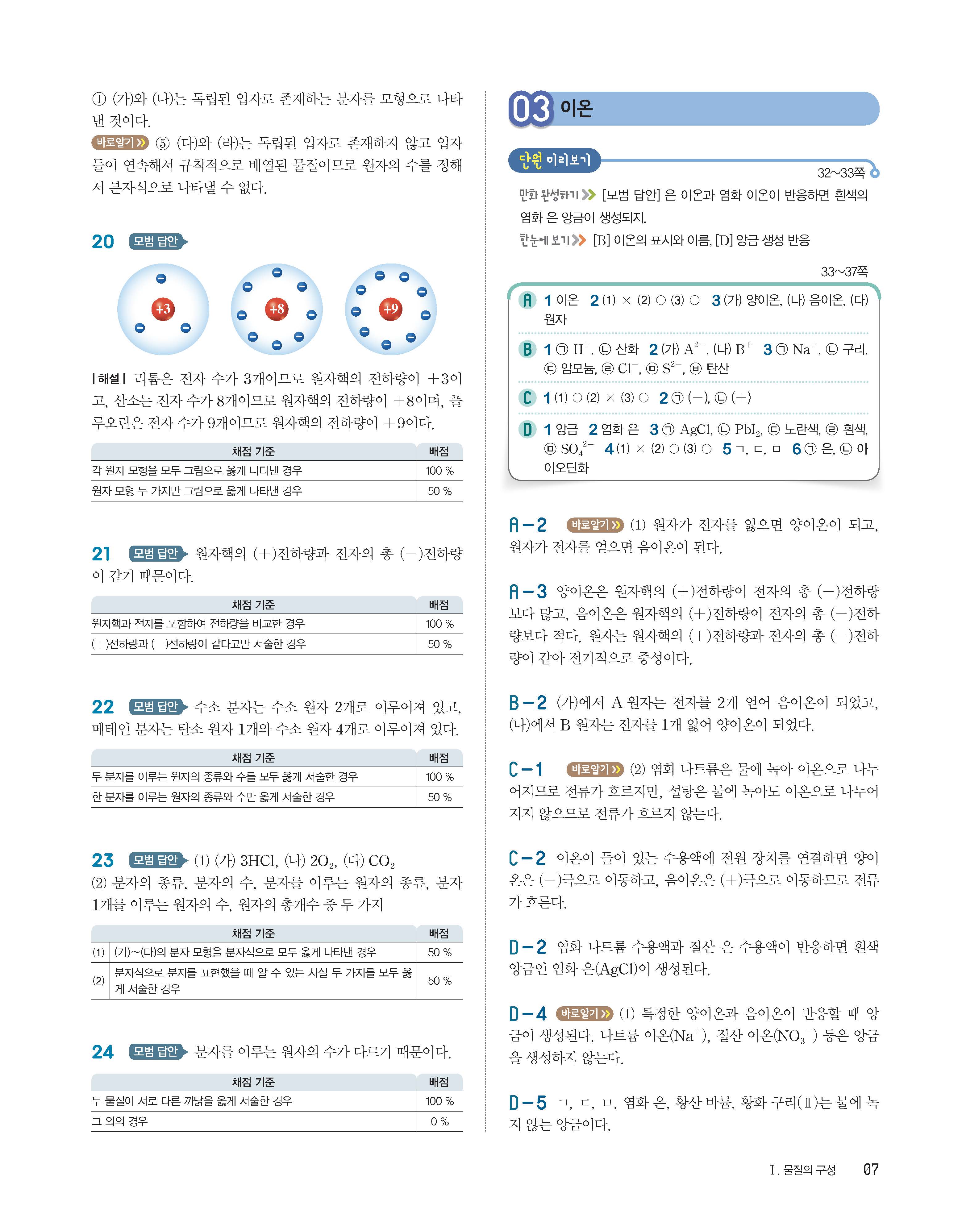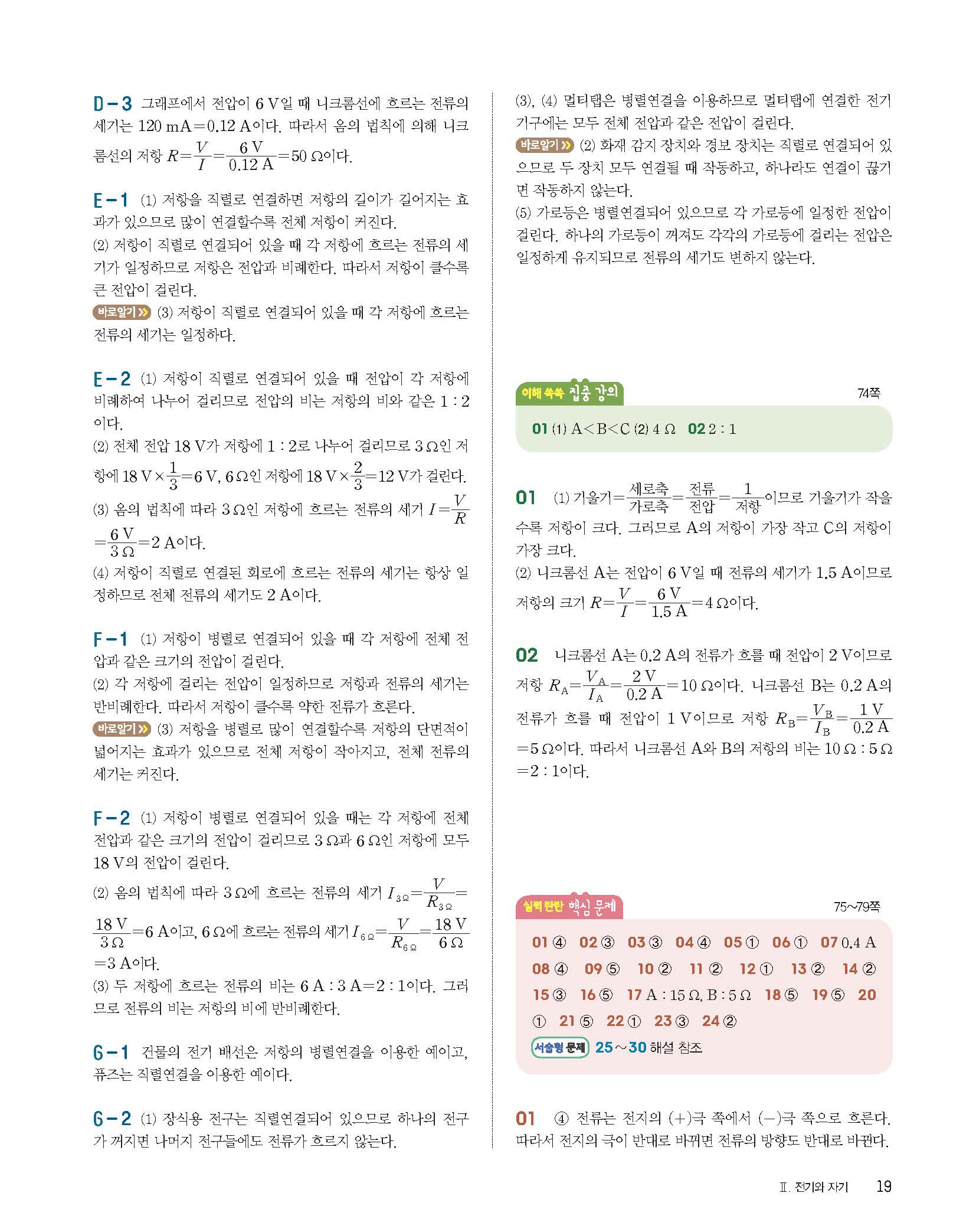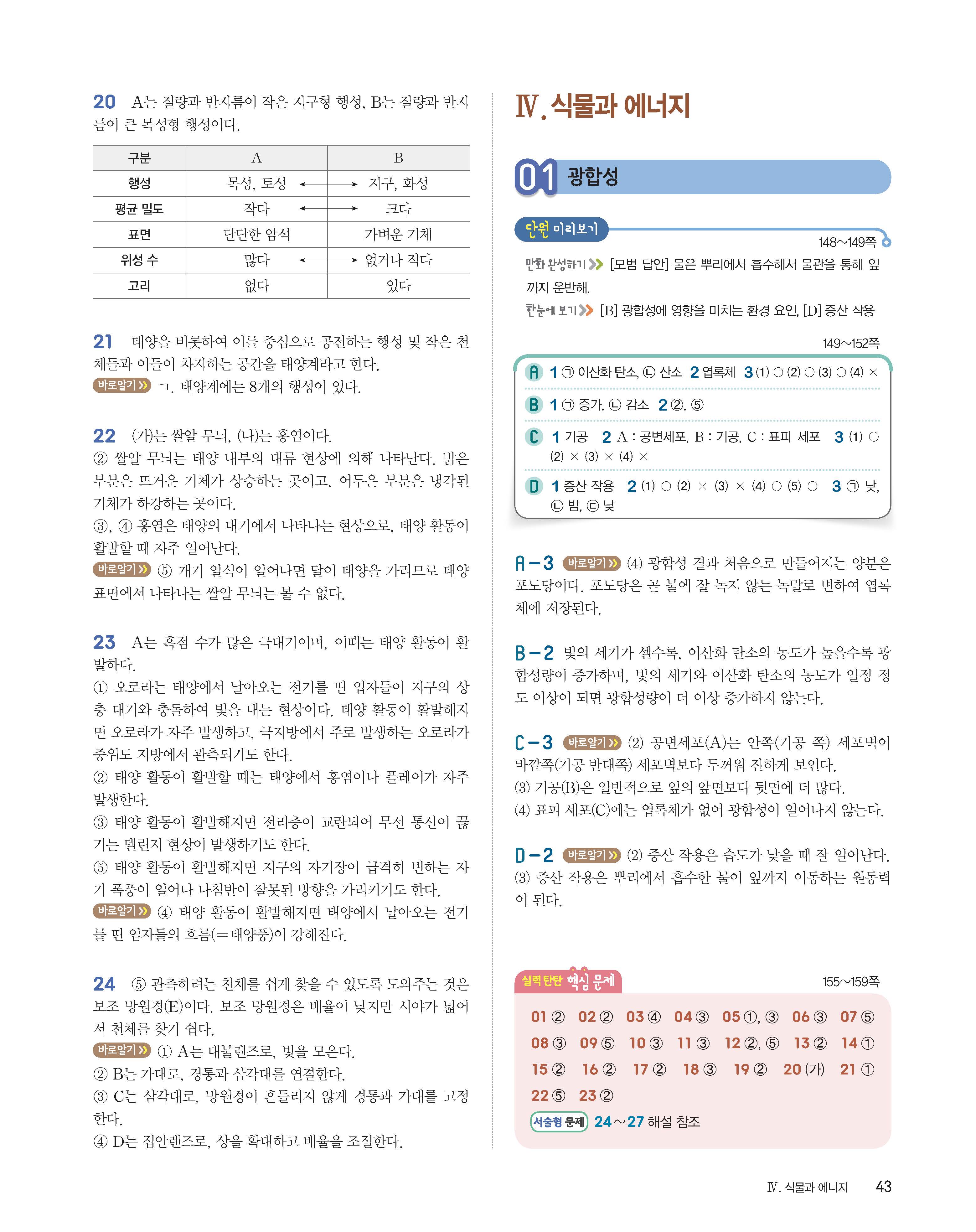 완자 중등과학2 답지 사진답지 빠른답지 모바일최적화