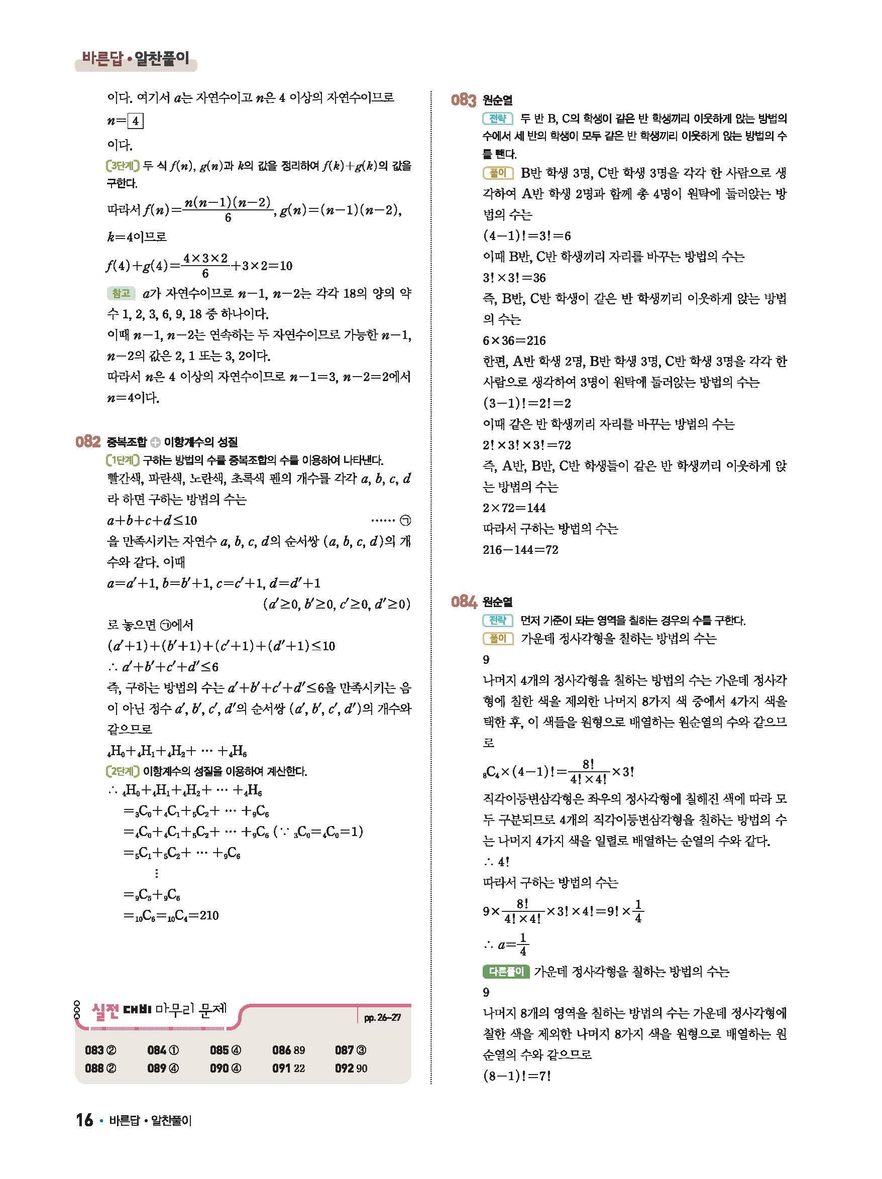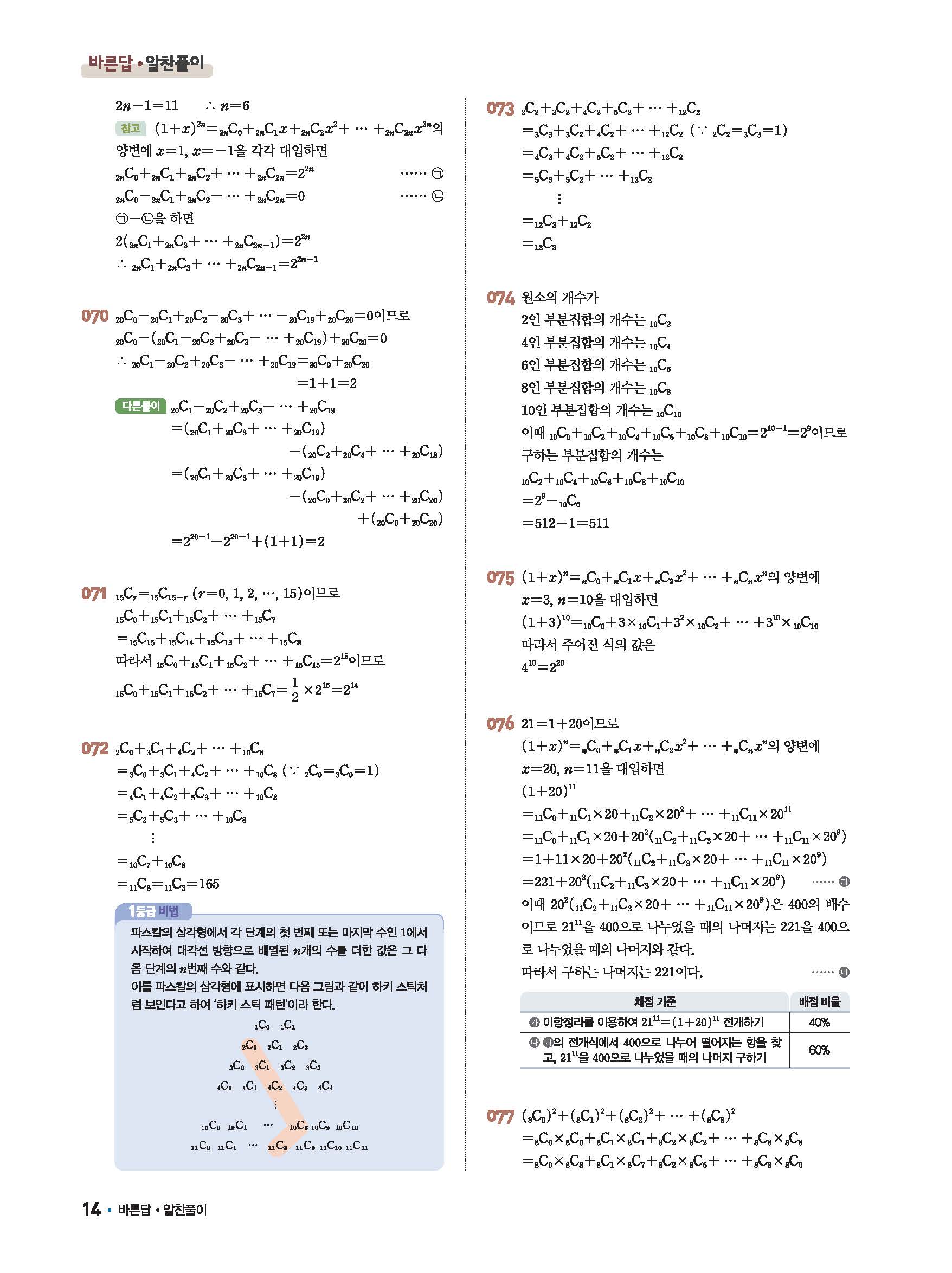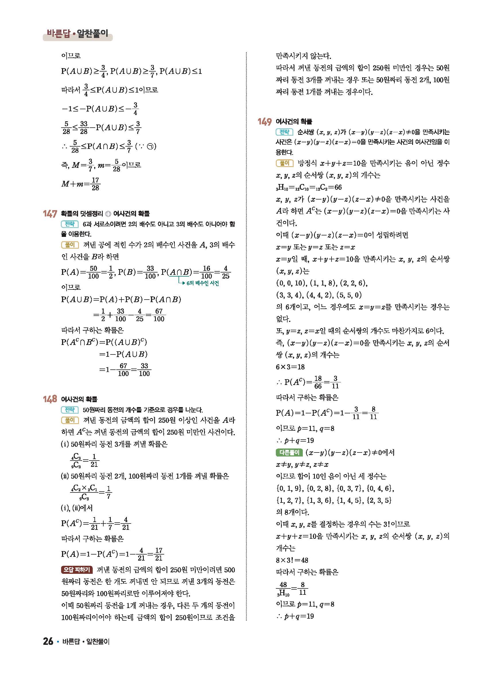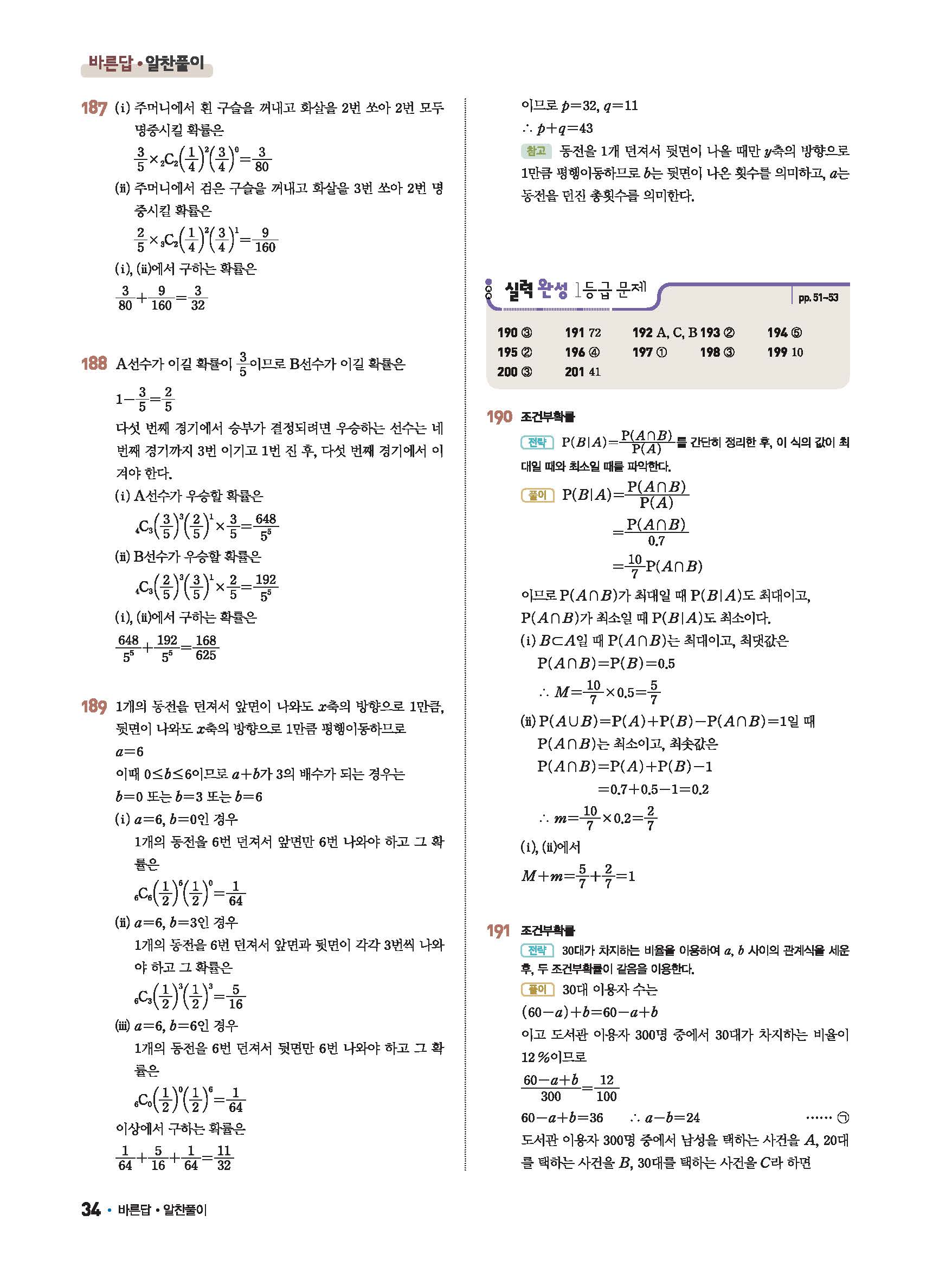 일등급만들기 확률과통계 답지 해설 사진답지 빠른답지 모바일최적화