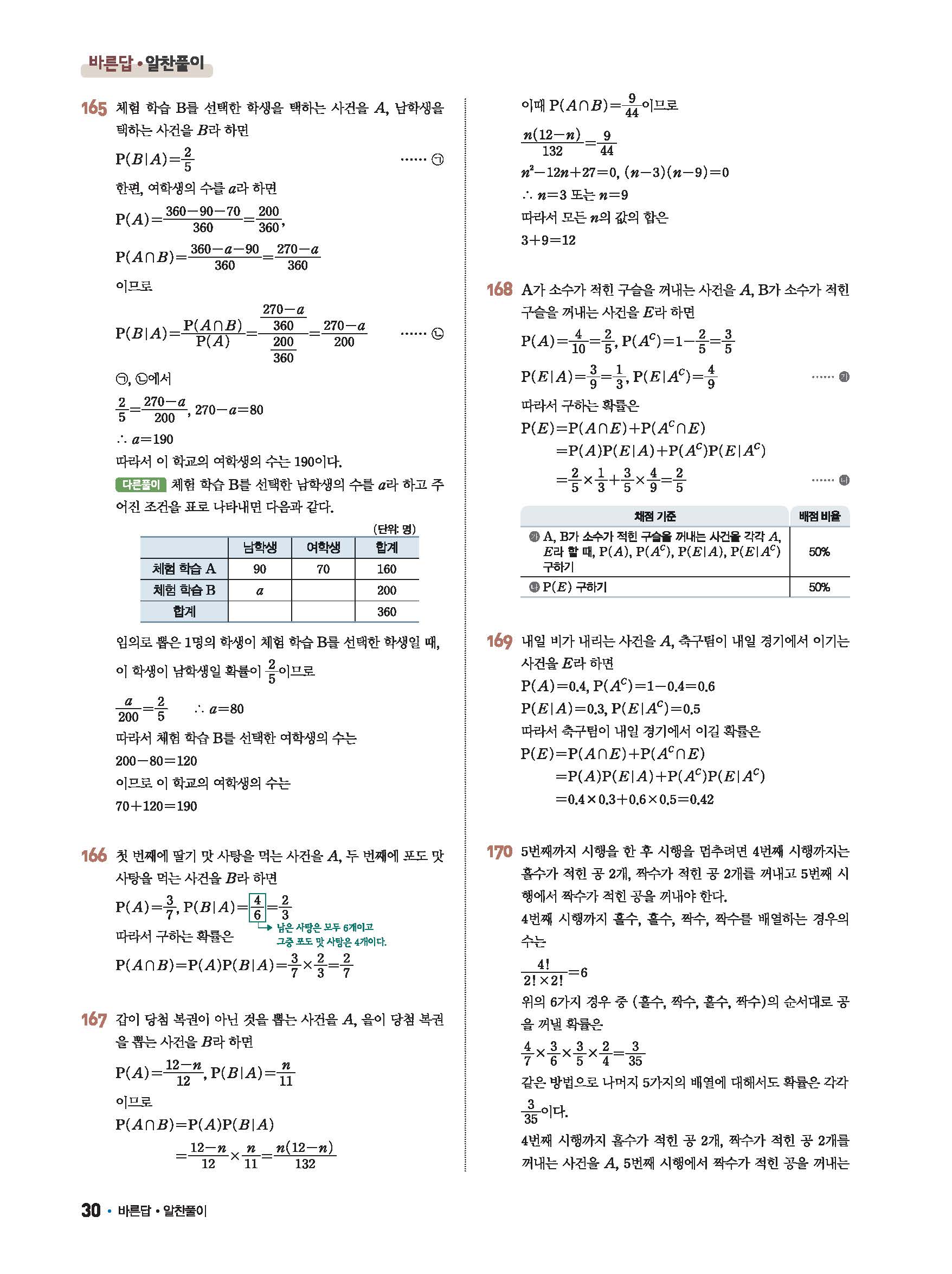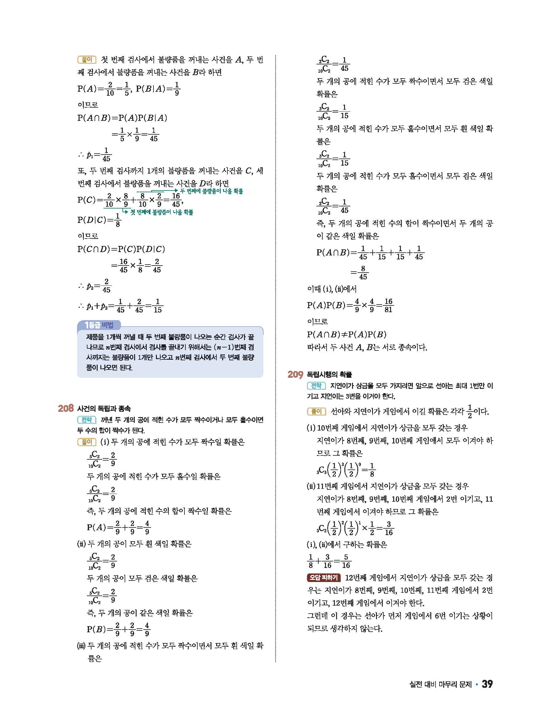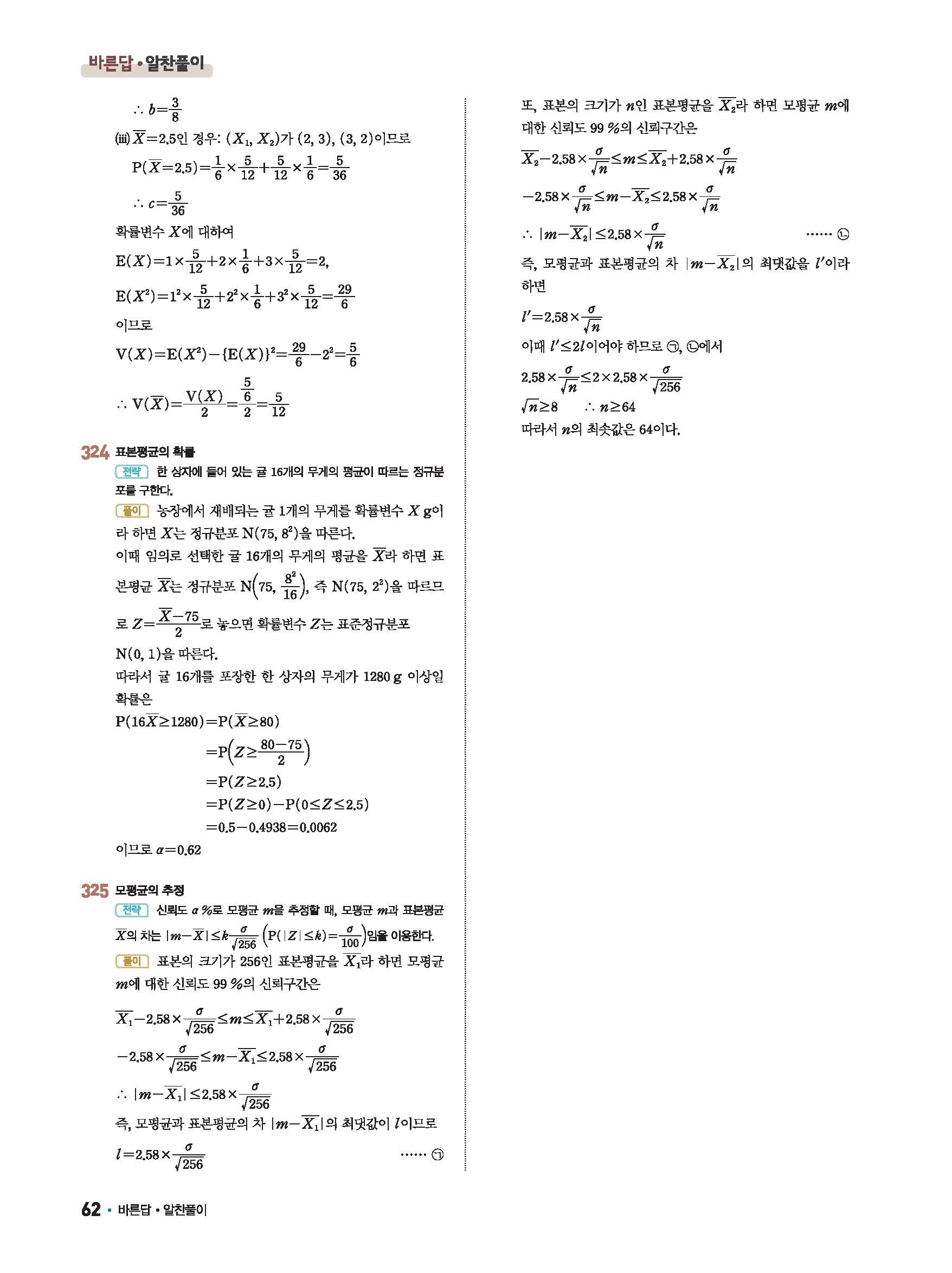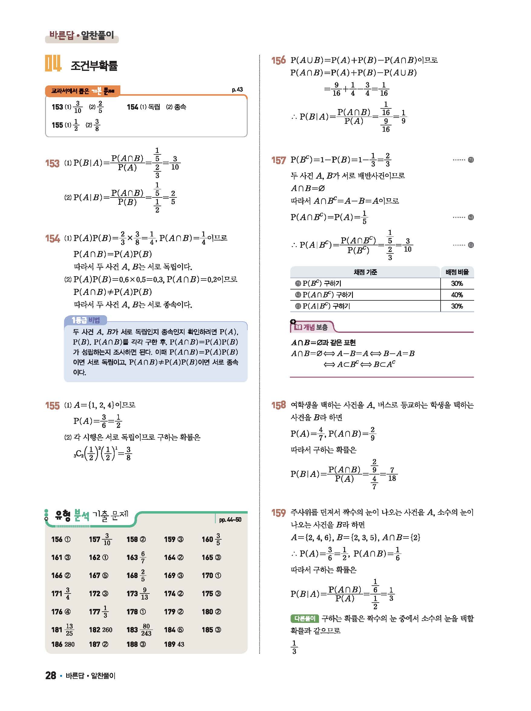 일등급만들기 확률과통계 답지 해설 사진답지 빠른답지 모바일최적화