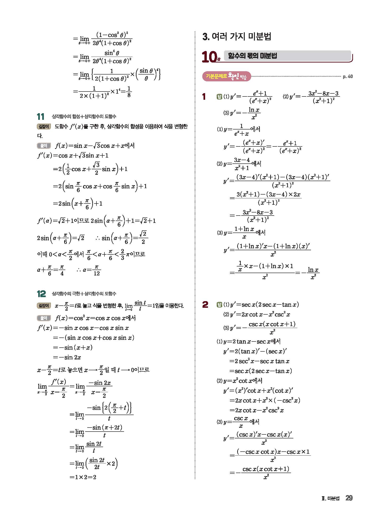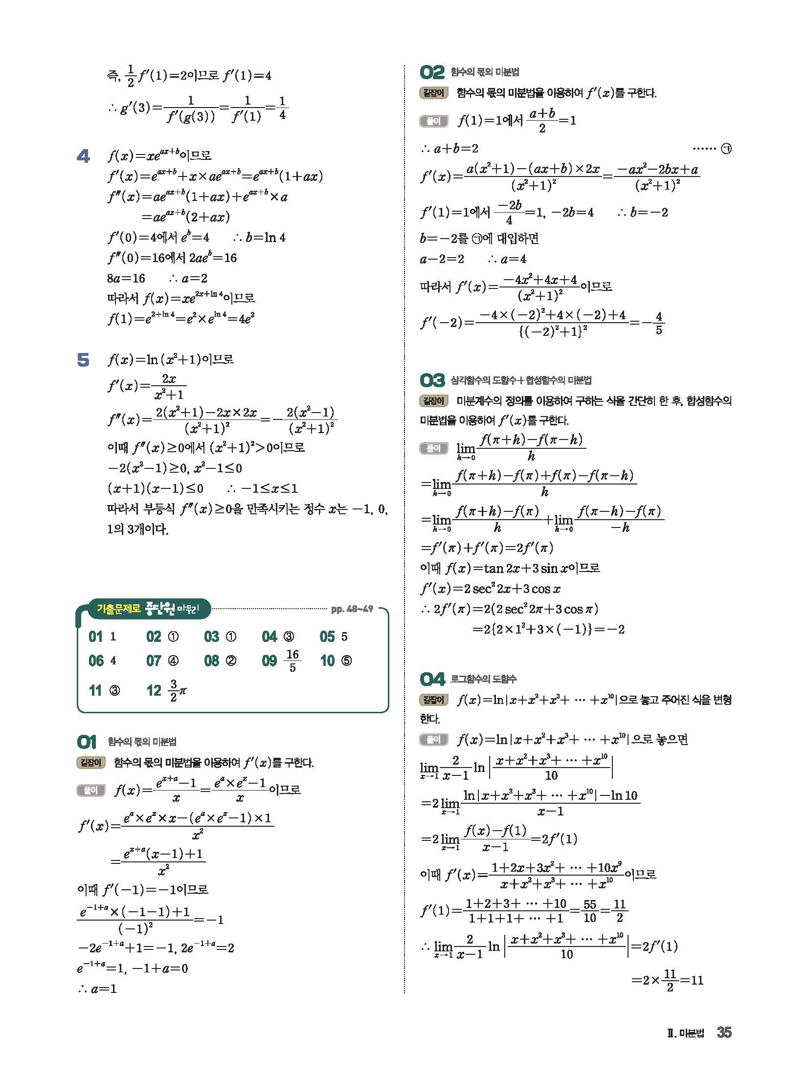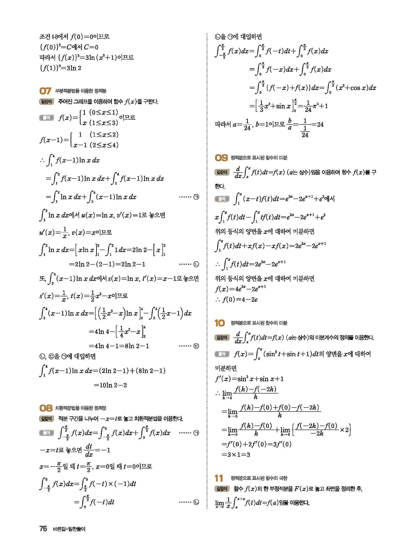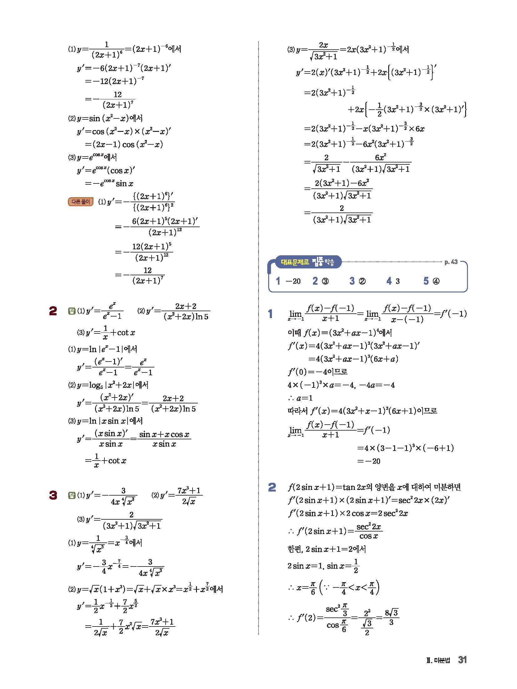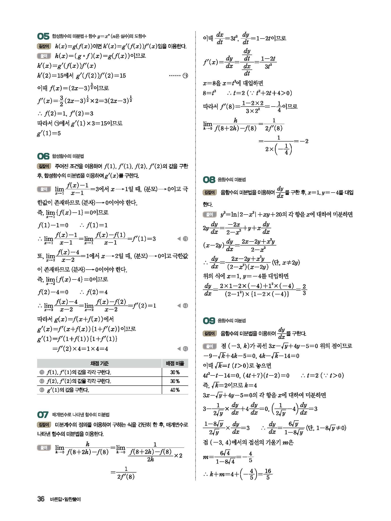 파사쥬 미적분 답지 해설 사진답지 빠른답지 모바일최적화