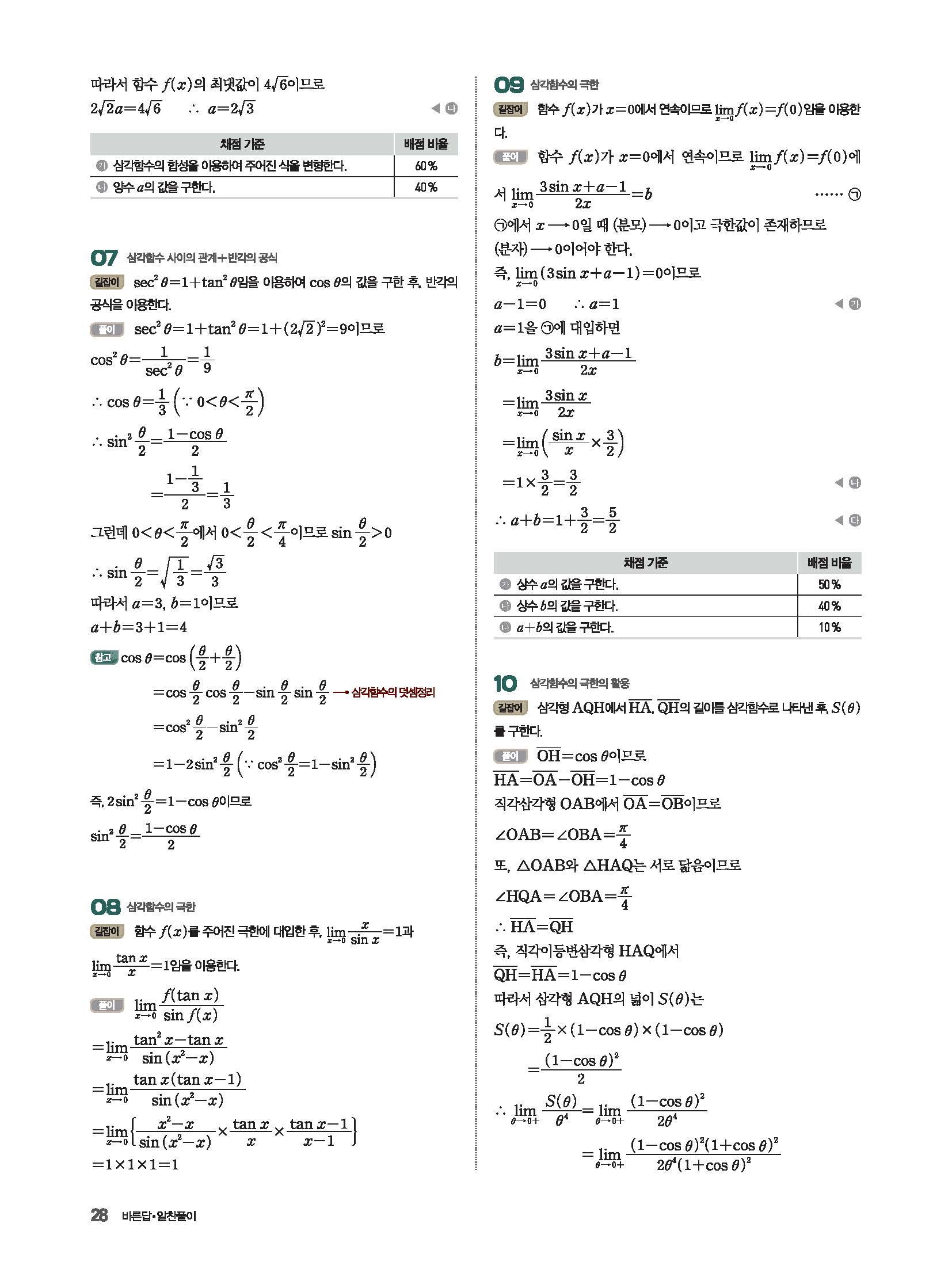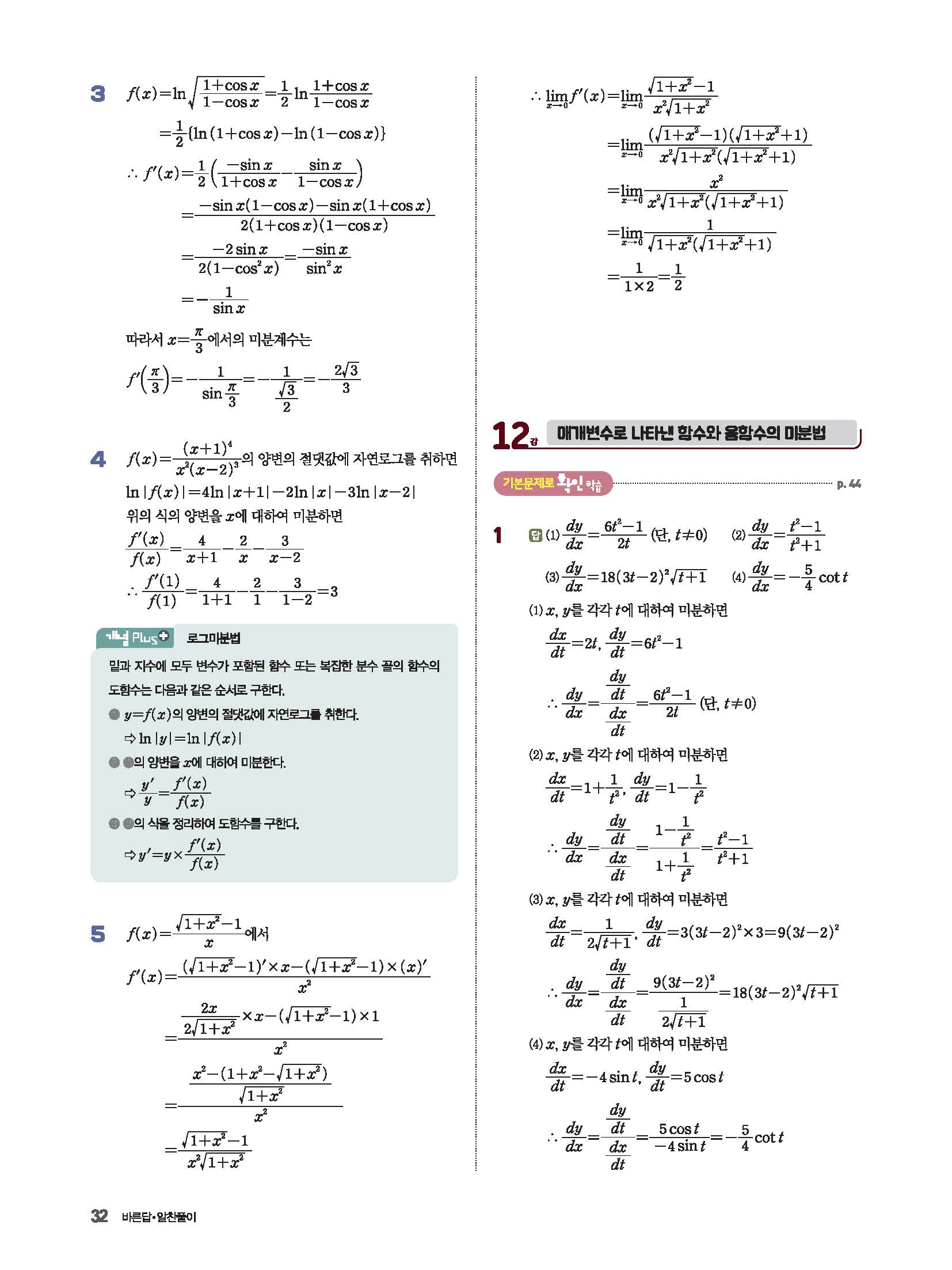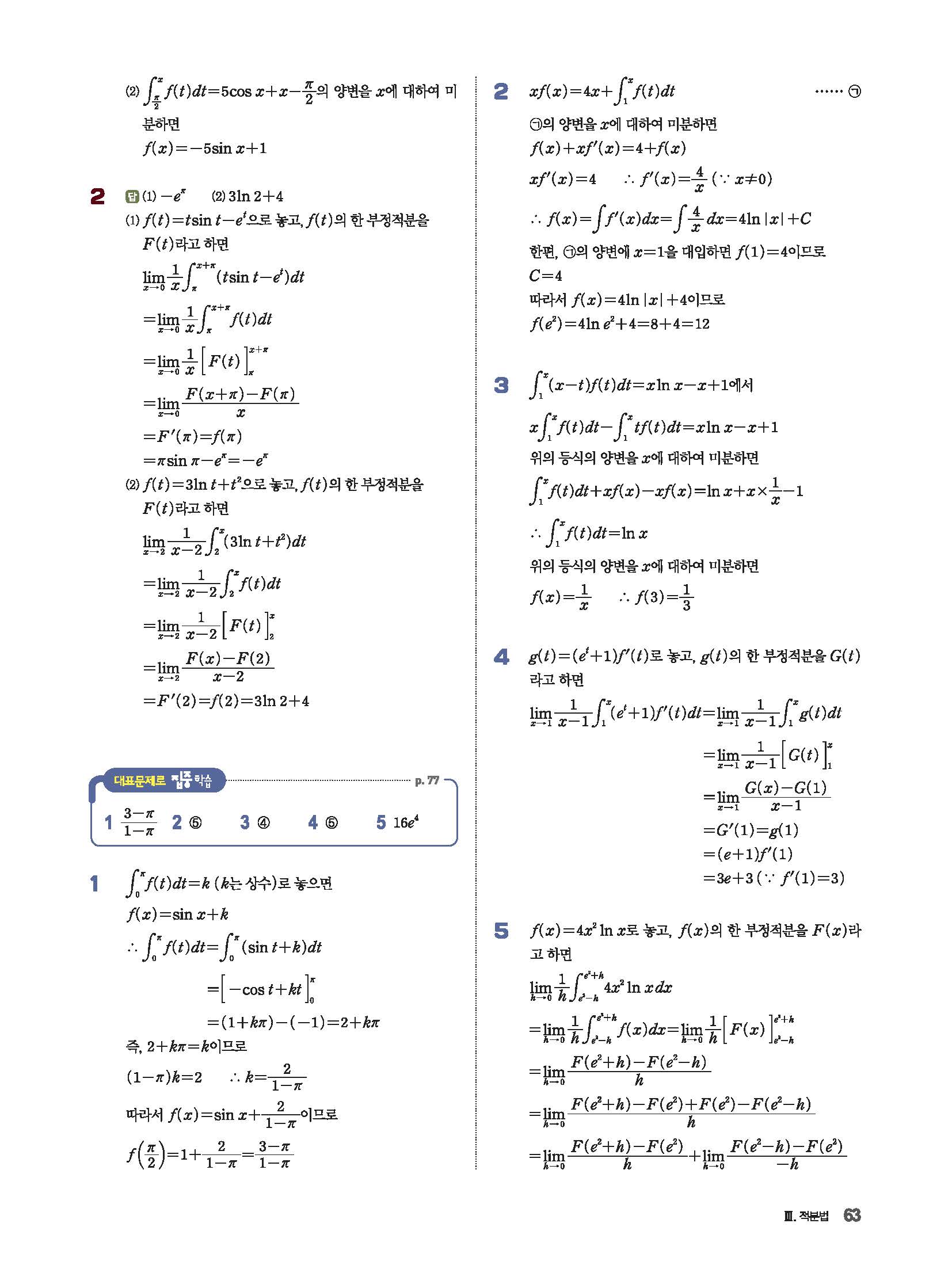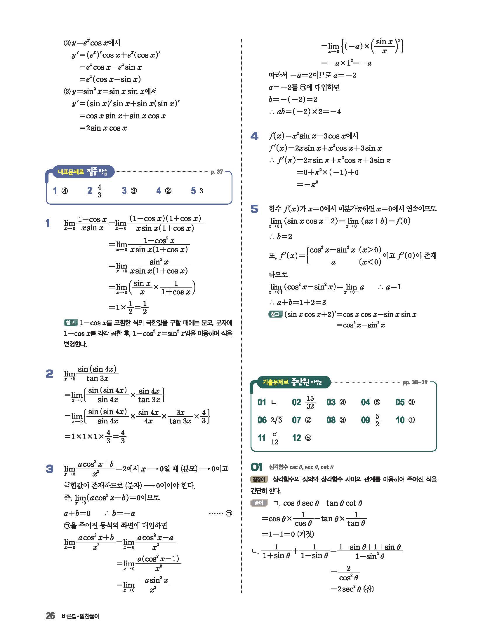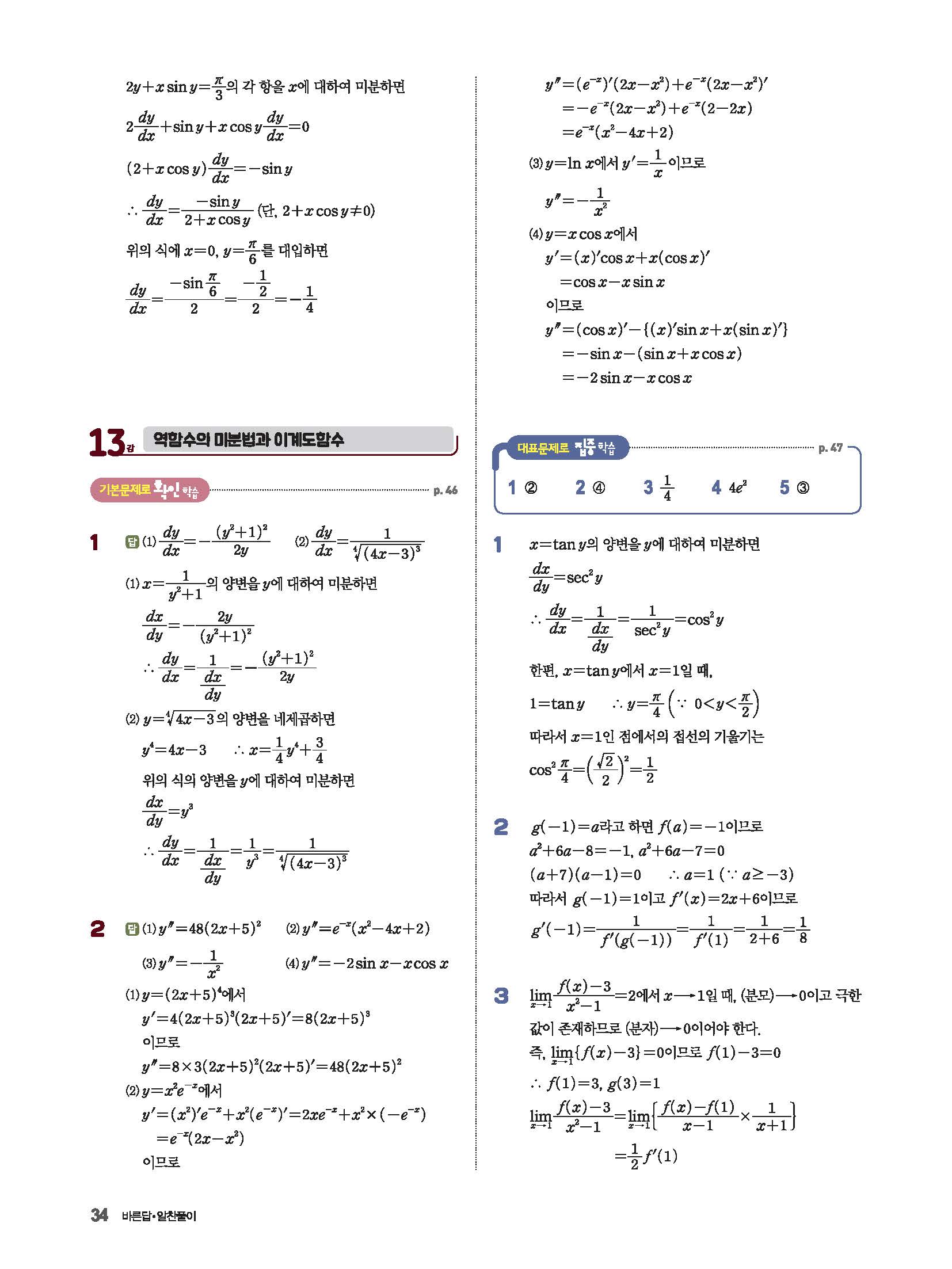 파사쥬 미적분 답지 해설 사진답지 빠른답지 모바일최적화