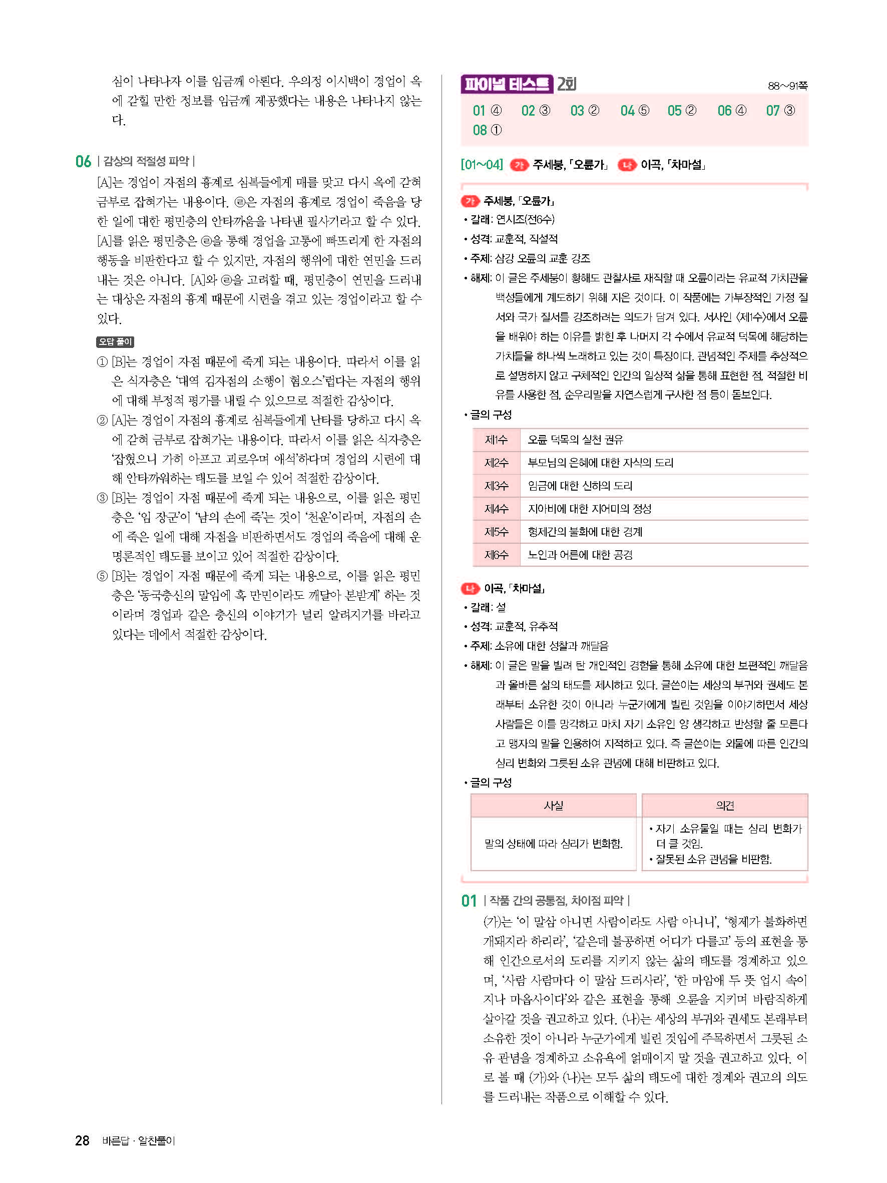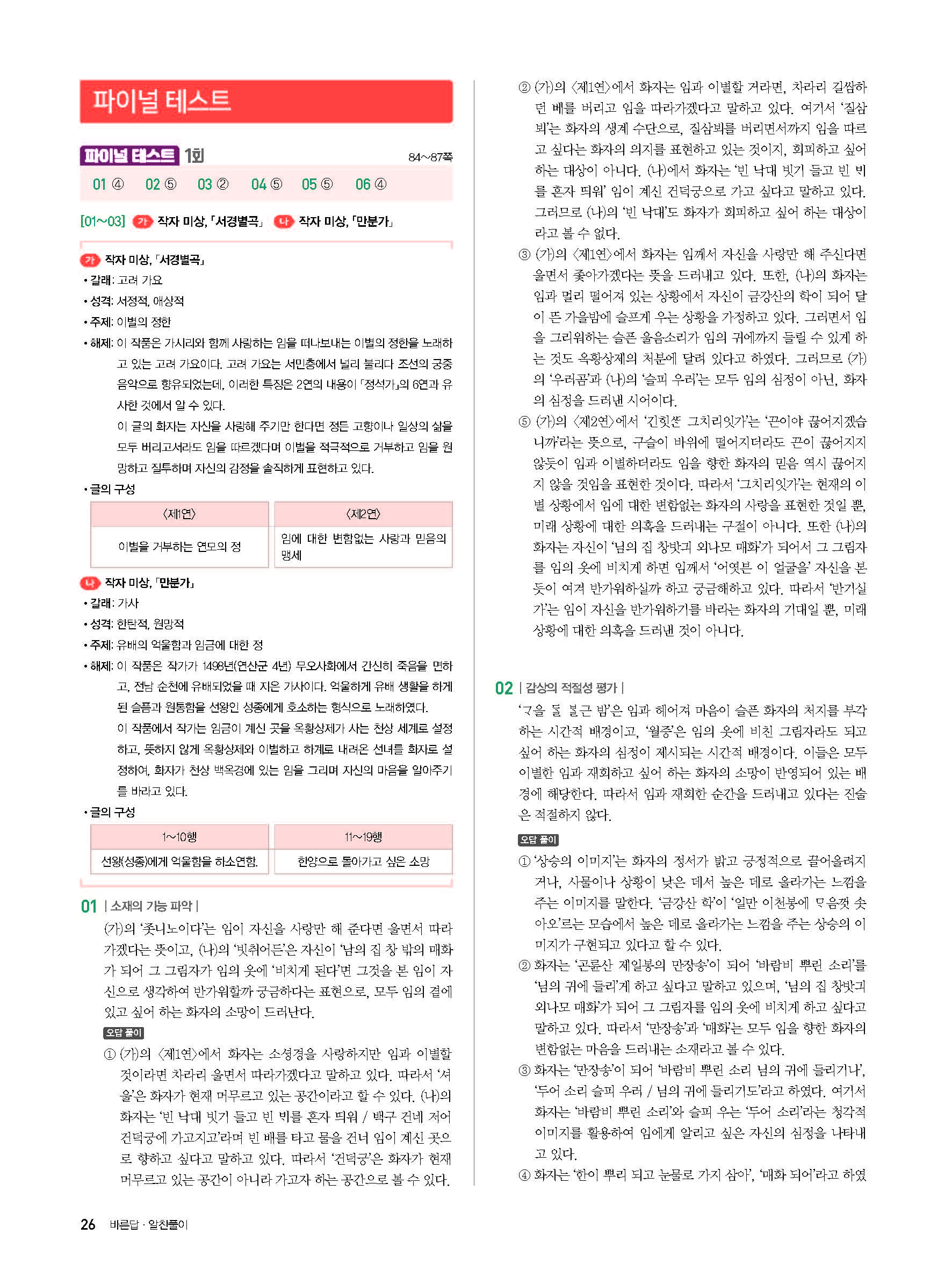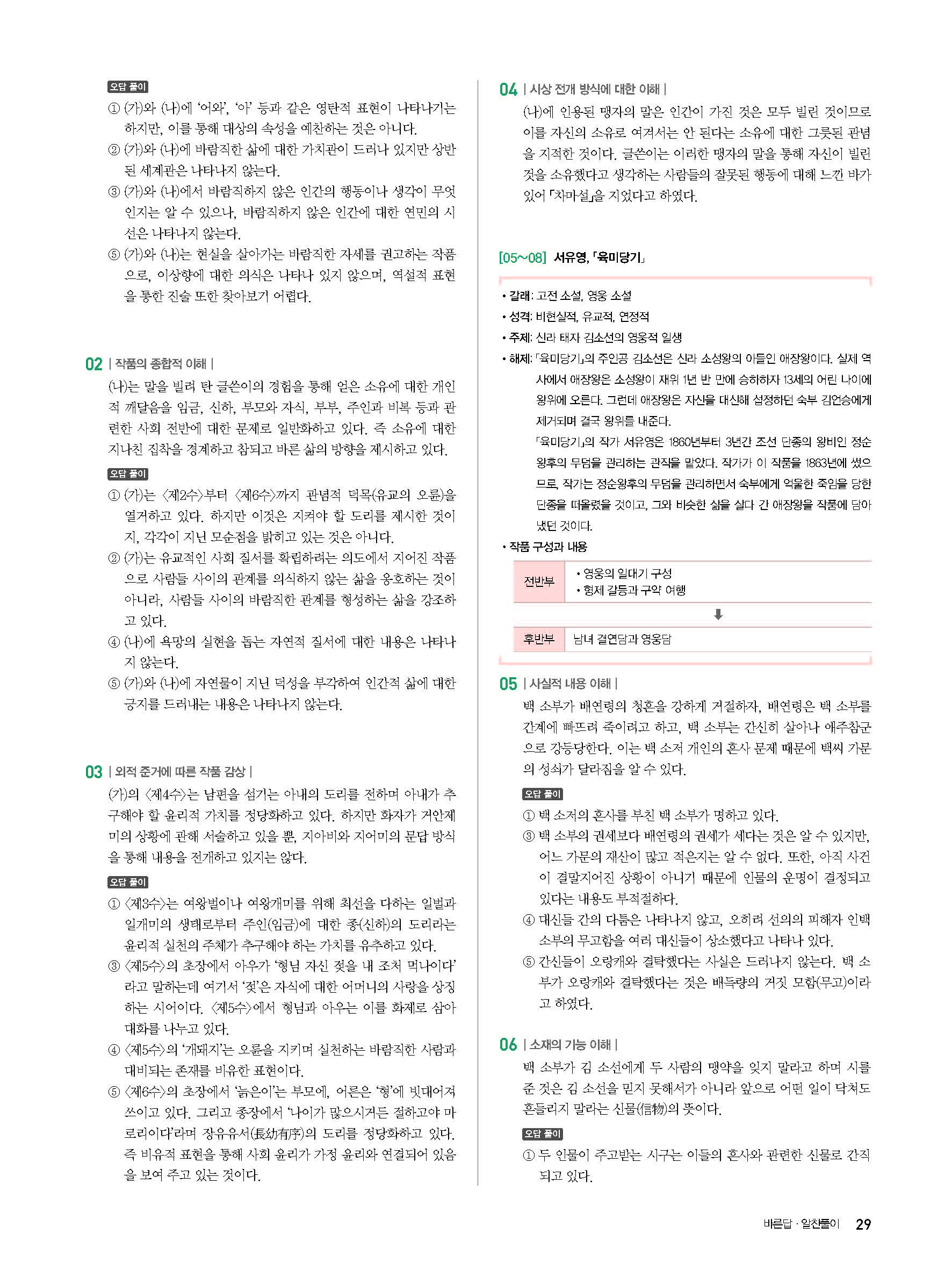 고잉 고전문학 답지 해설 사진답지 빠른답지 모바일최적화 미래엔