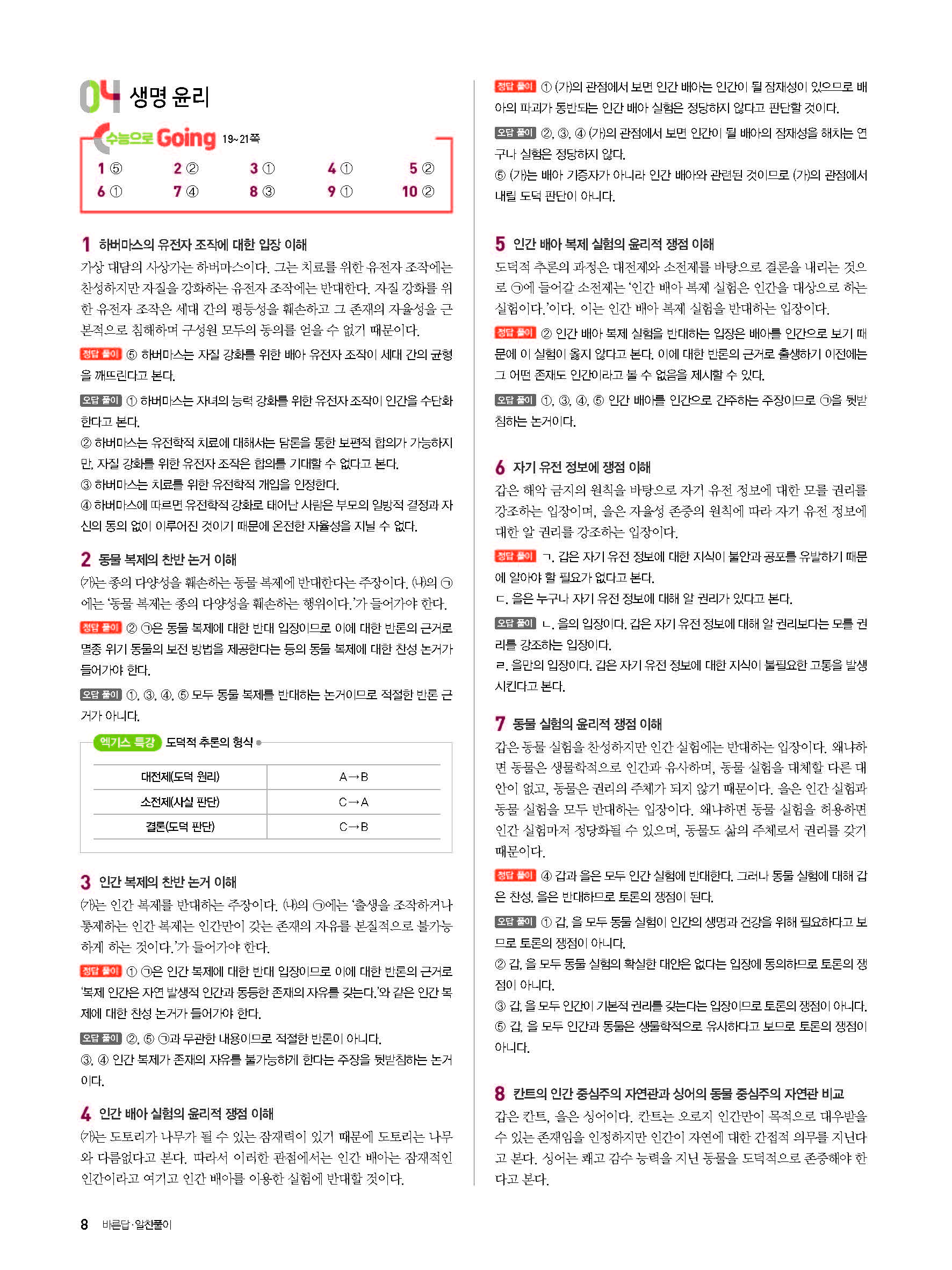 고잉 생활과윤리 답지 해설 사진답지 빠른답지 모바일최적화 미래엔