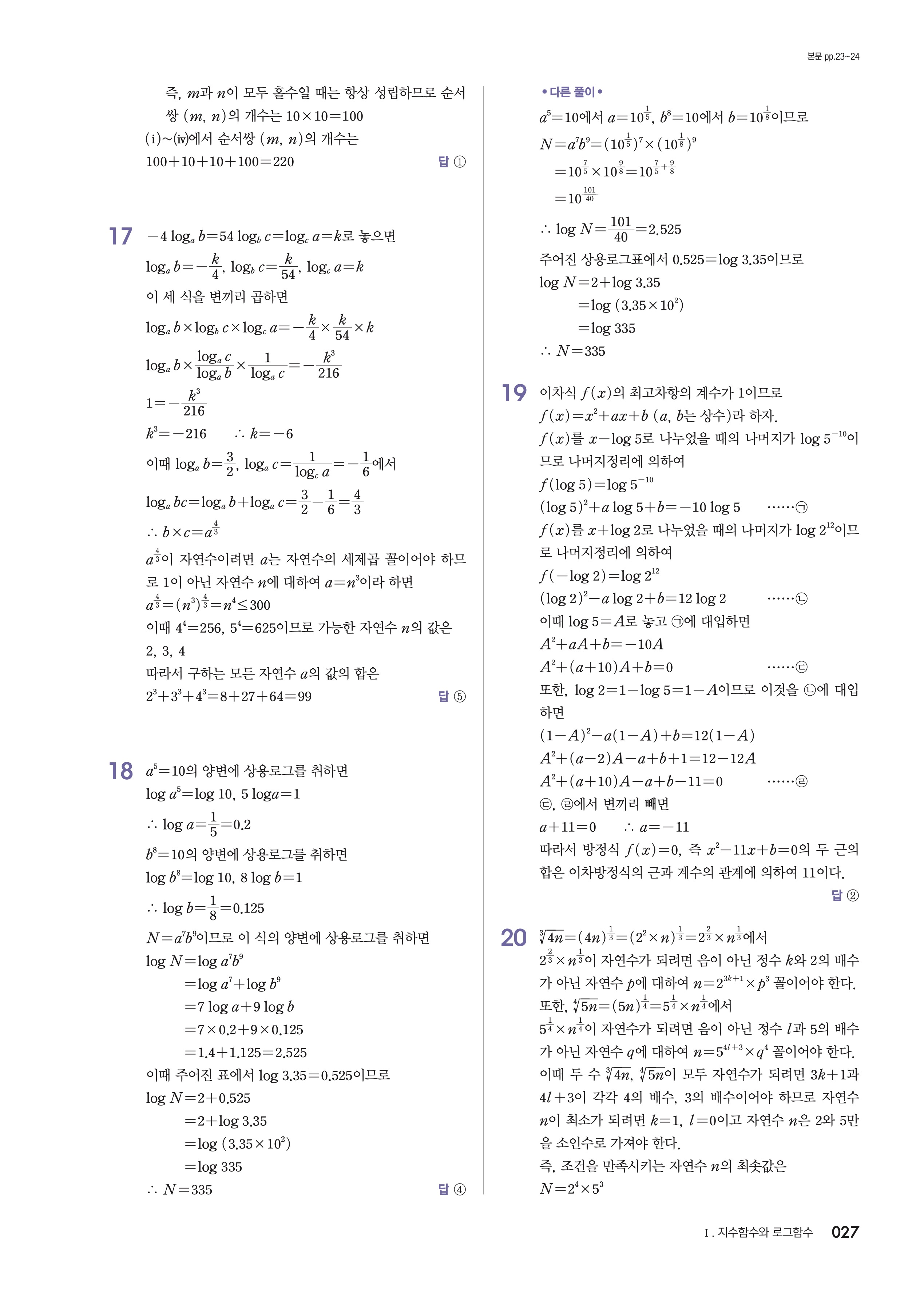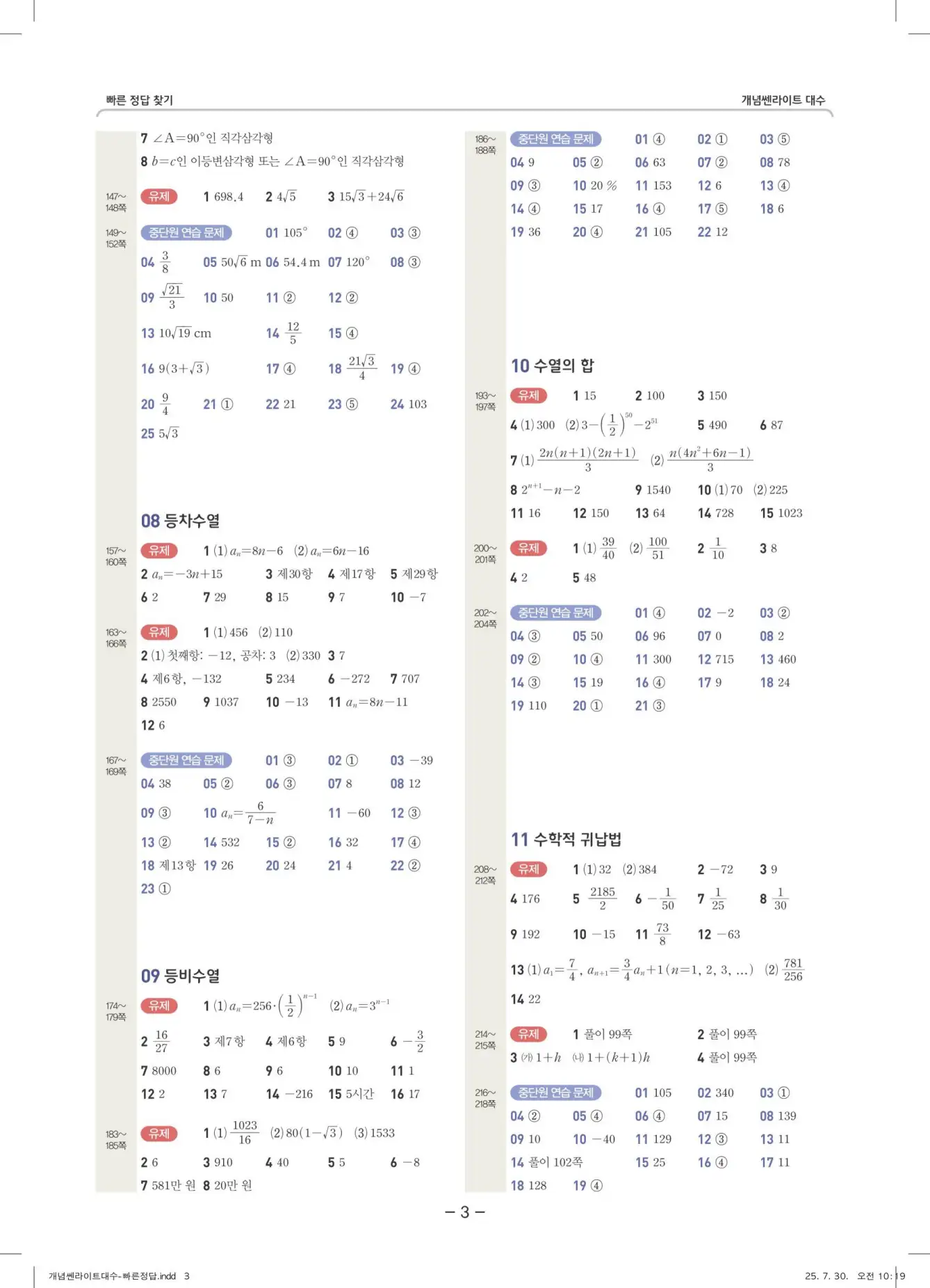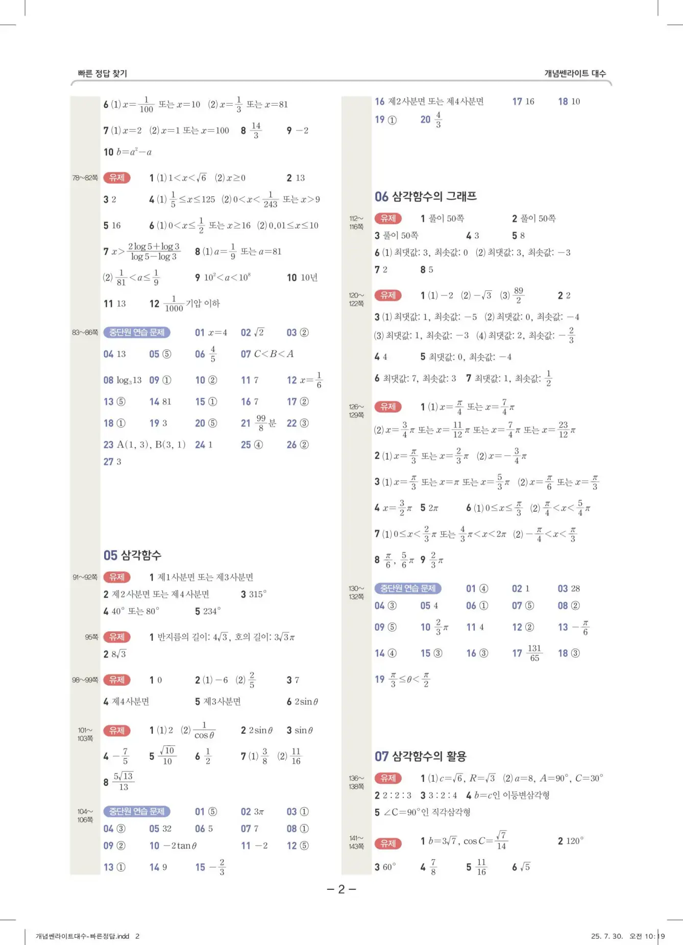 2025 개념원리 대수 답지 (본문 해설 포함)