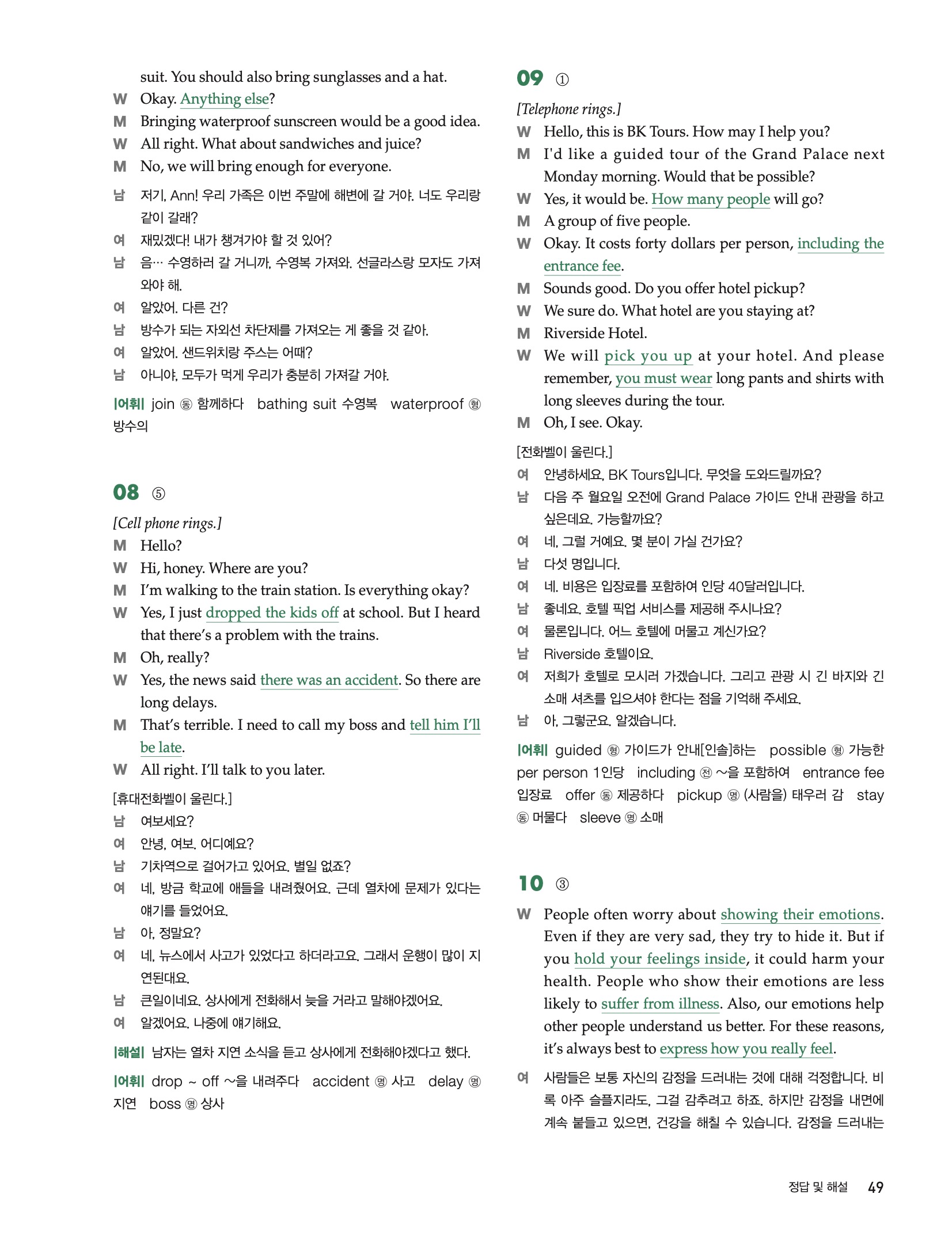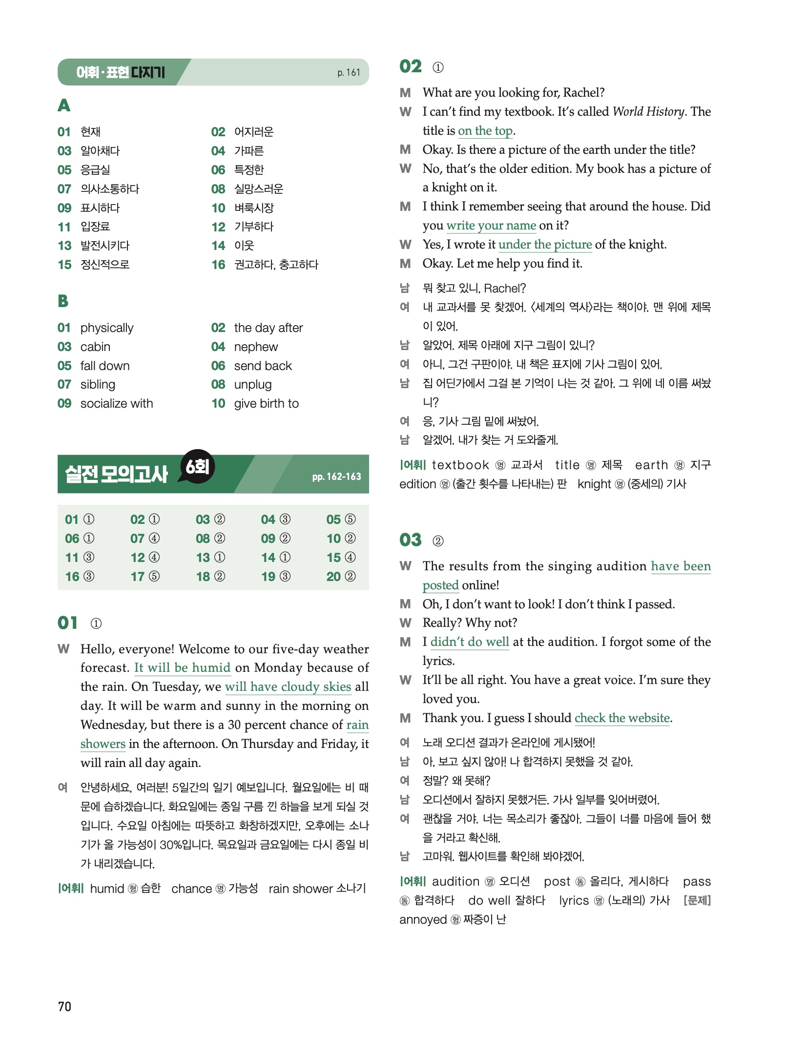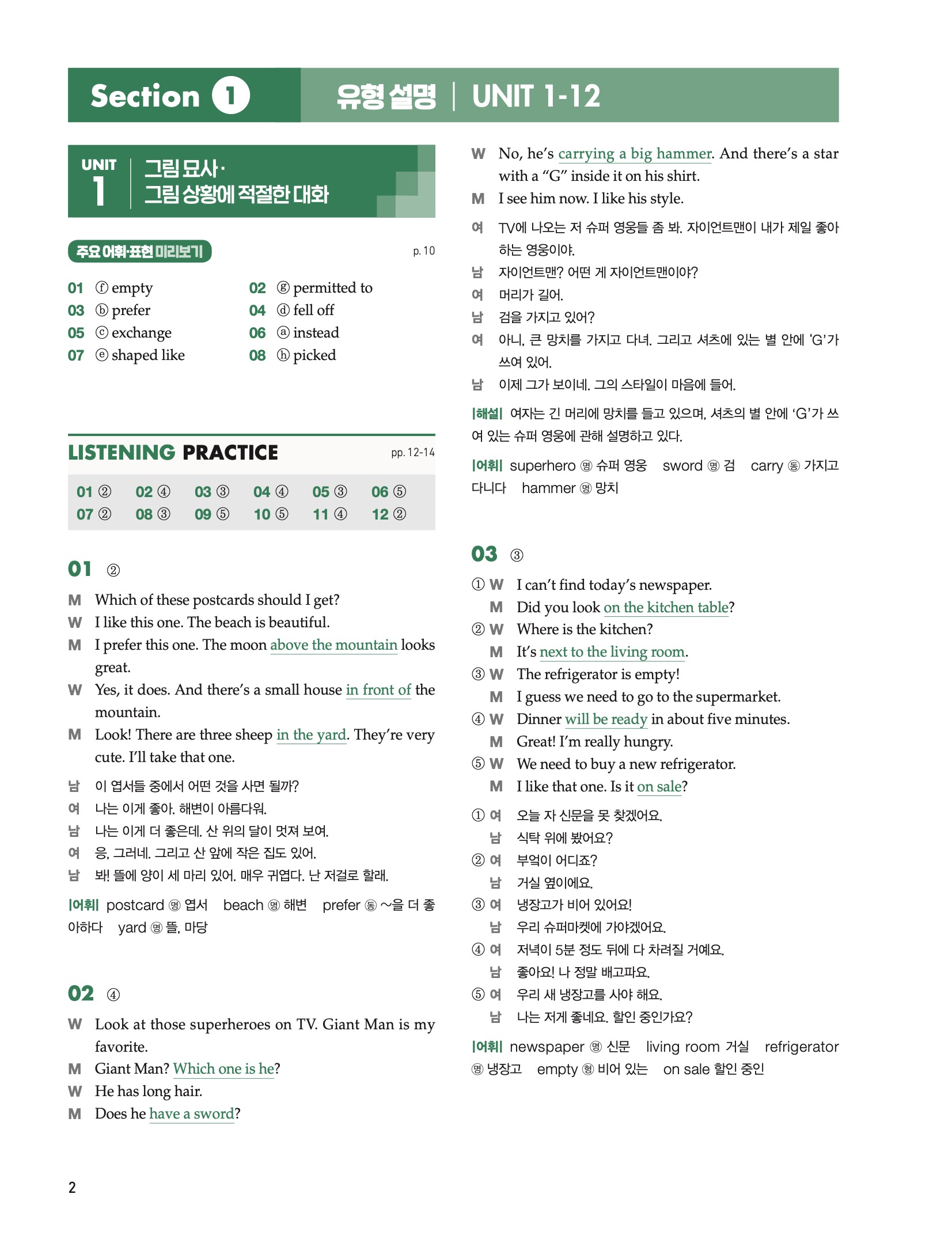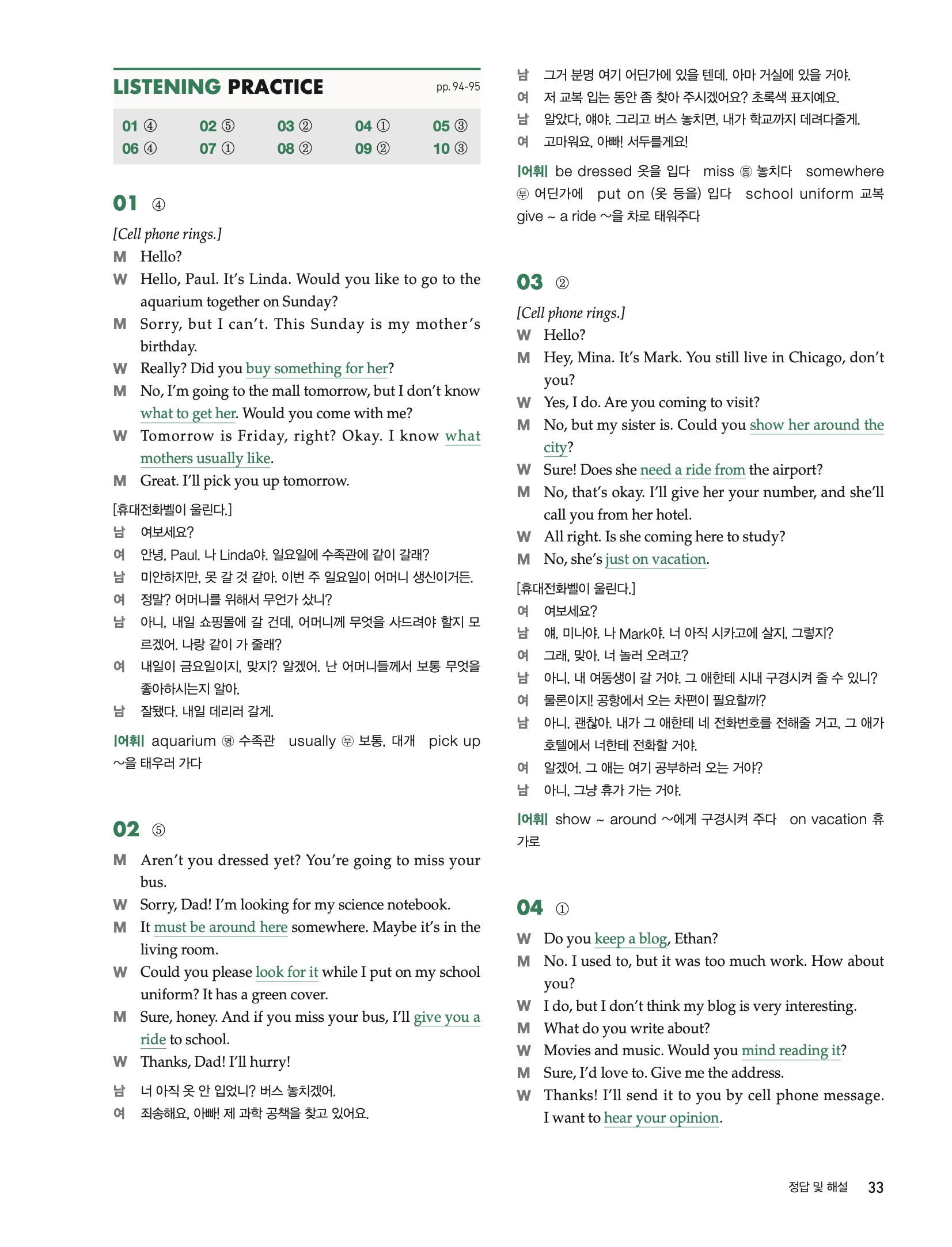 아래는 듣기 실력 향상과 영어 학습에 도움이 되는 다른 교재의 답지와 해설을 제공하는 포스팅입니다.