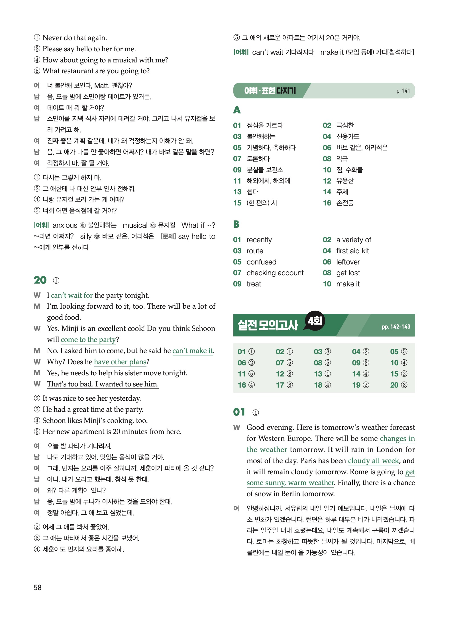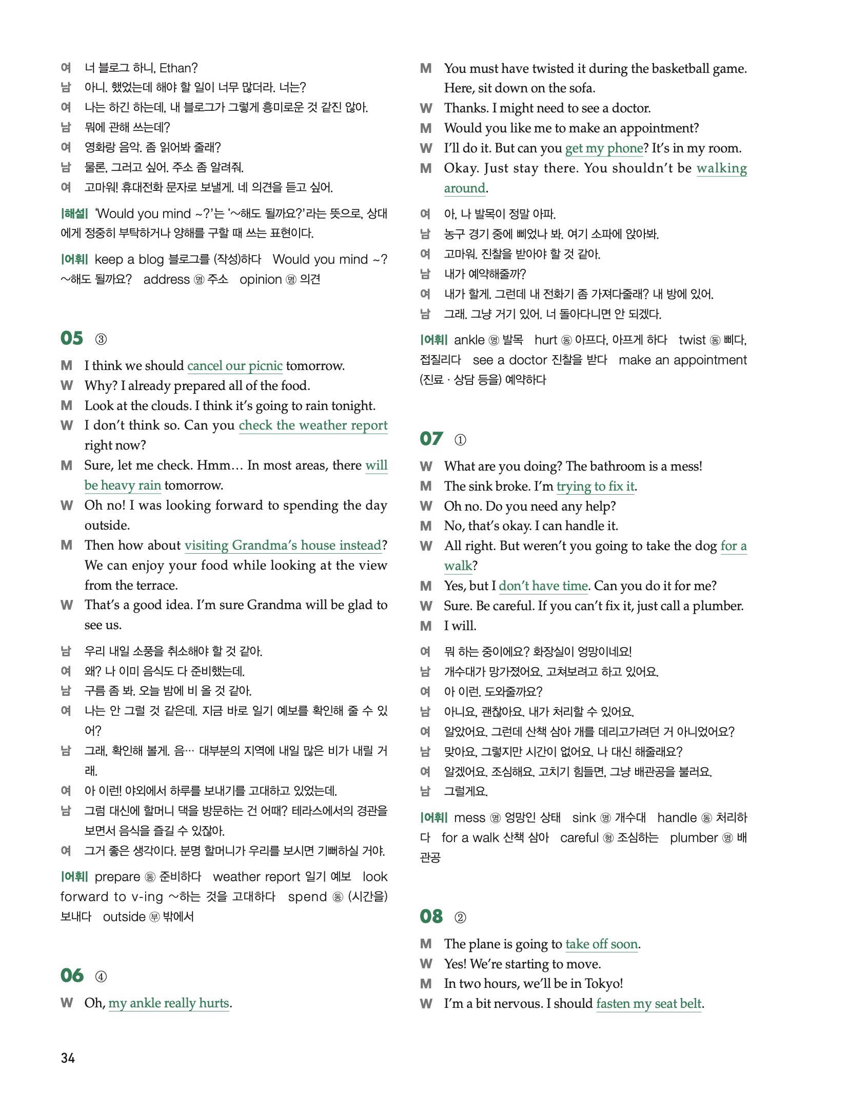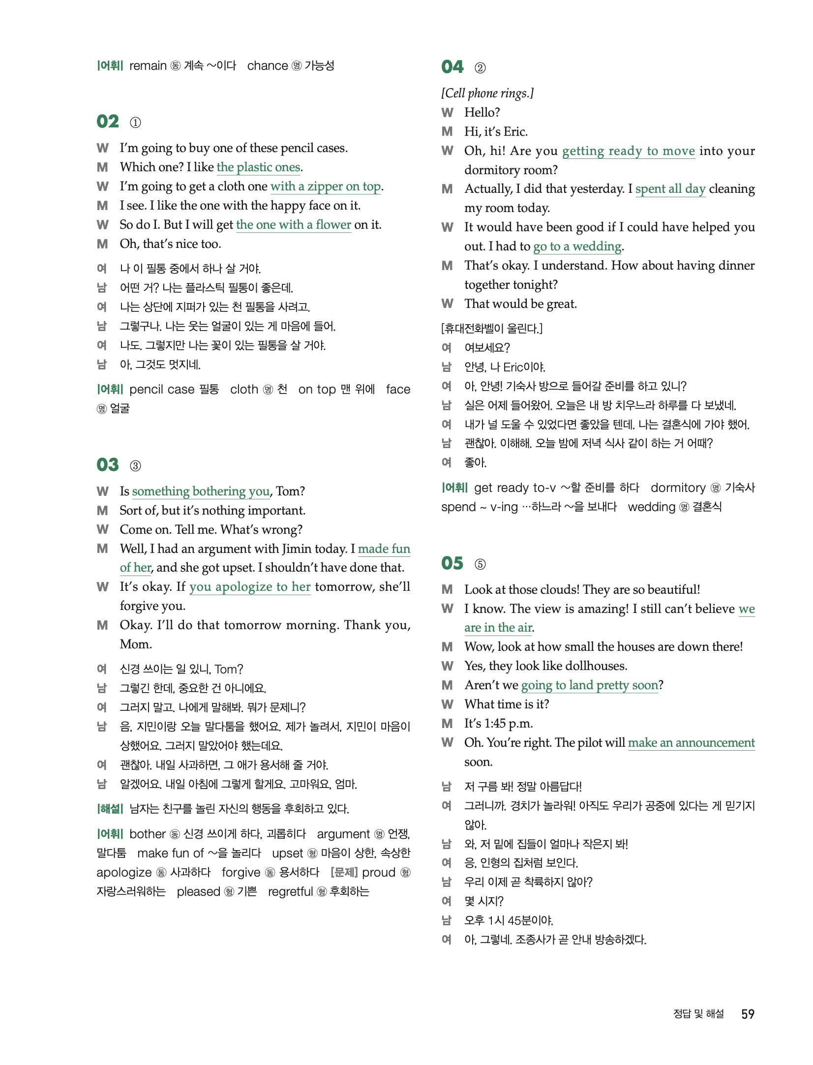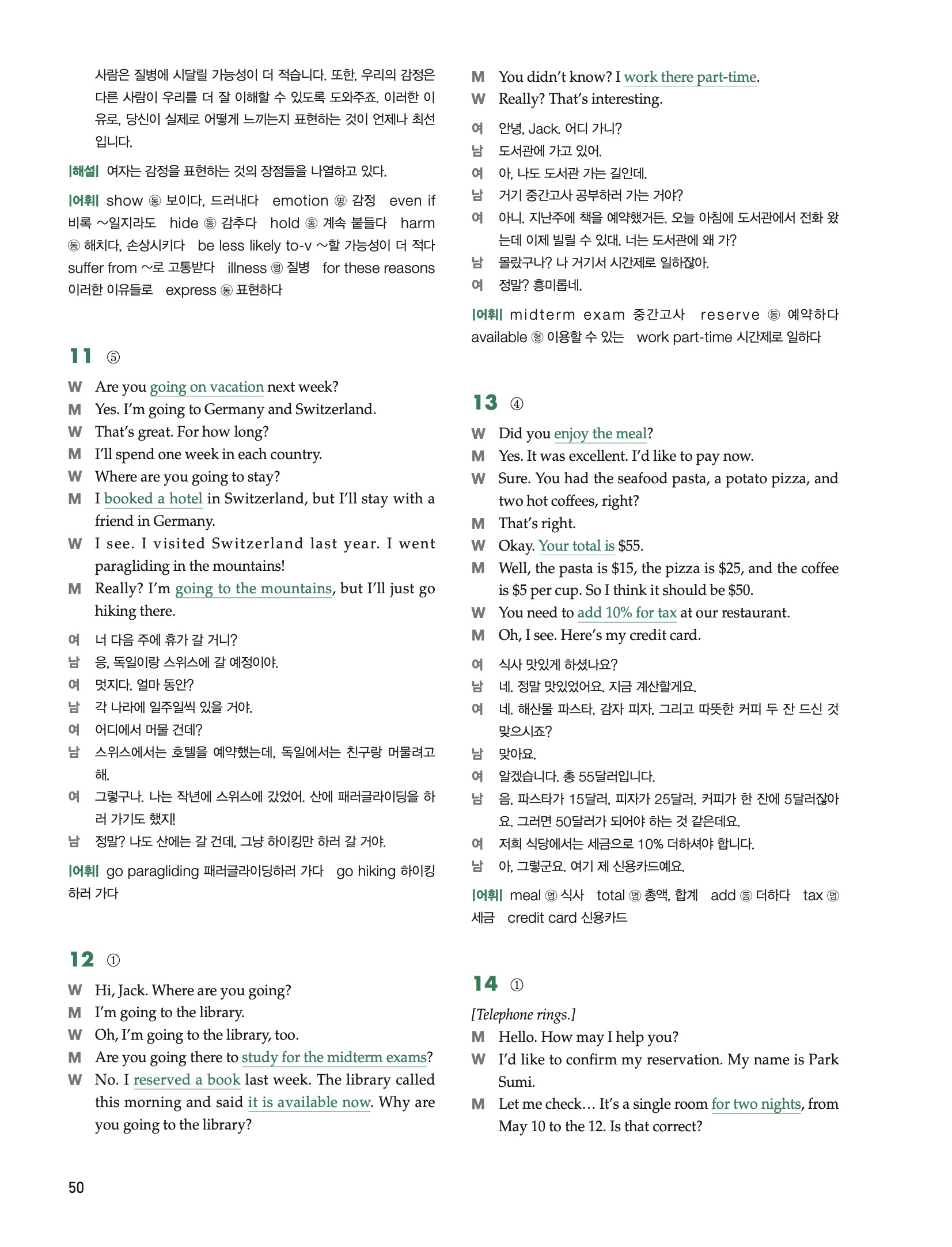 아래는 듣기 실력 향상과 영어 학습에 도움이 되는 다른 교재의 답지와 해설을 제공하는 포스팅입니다.
