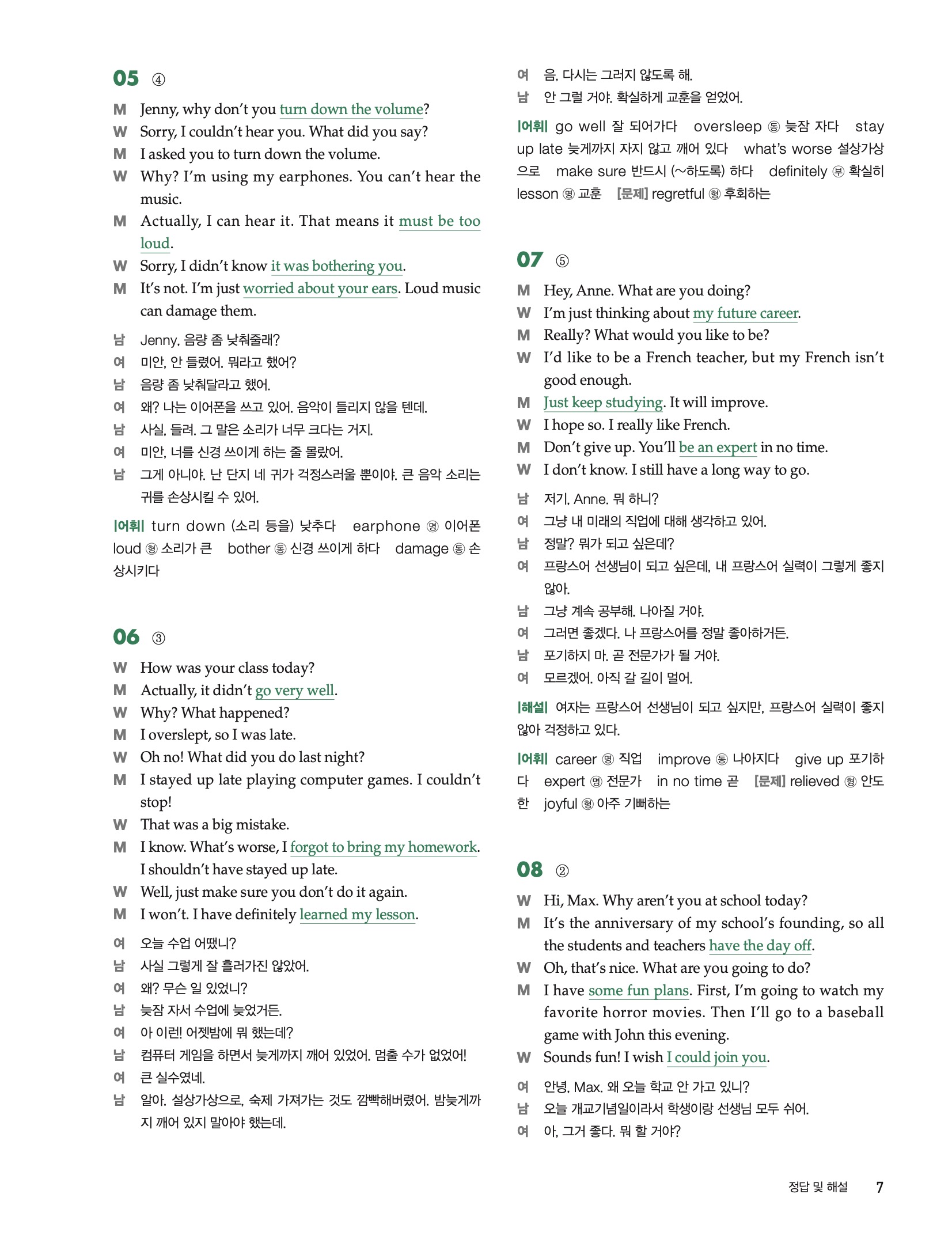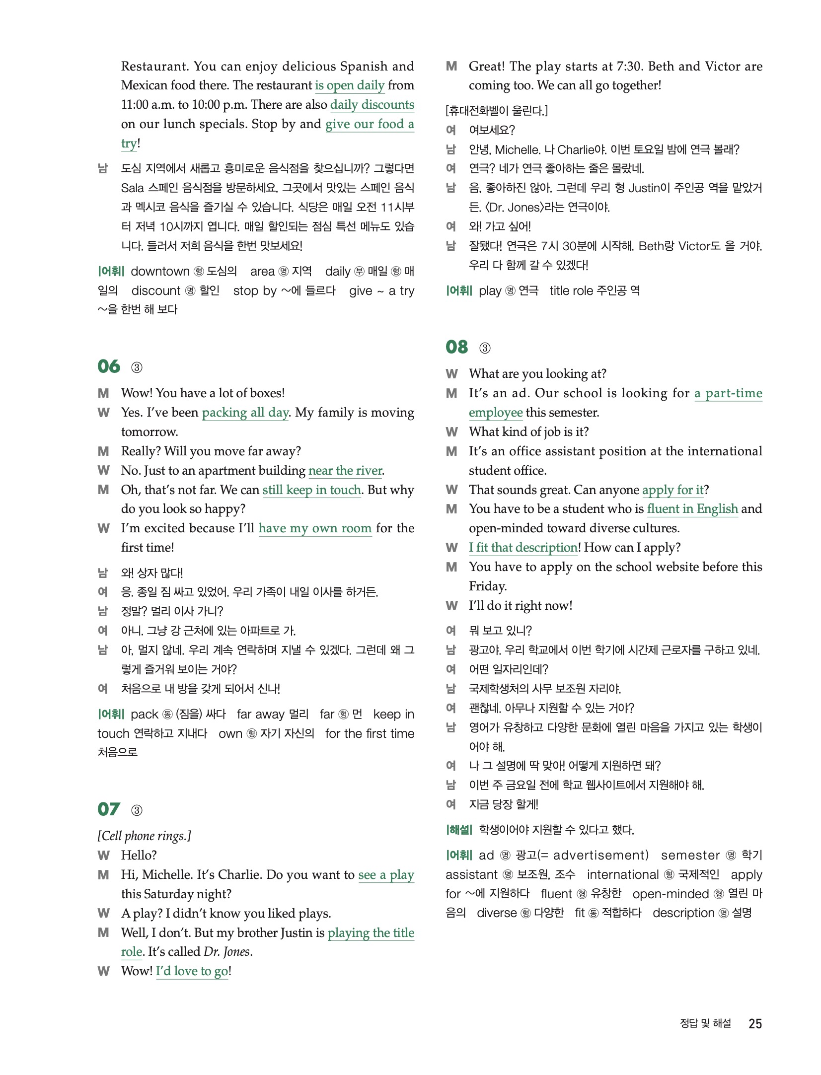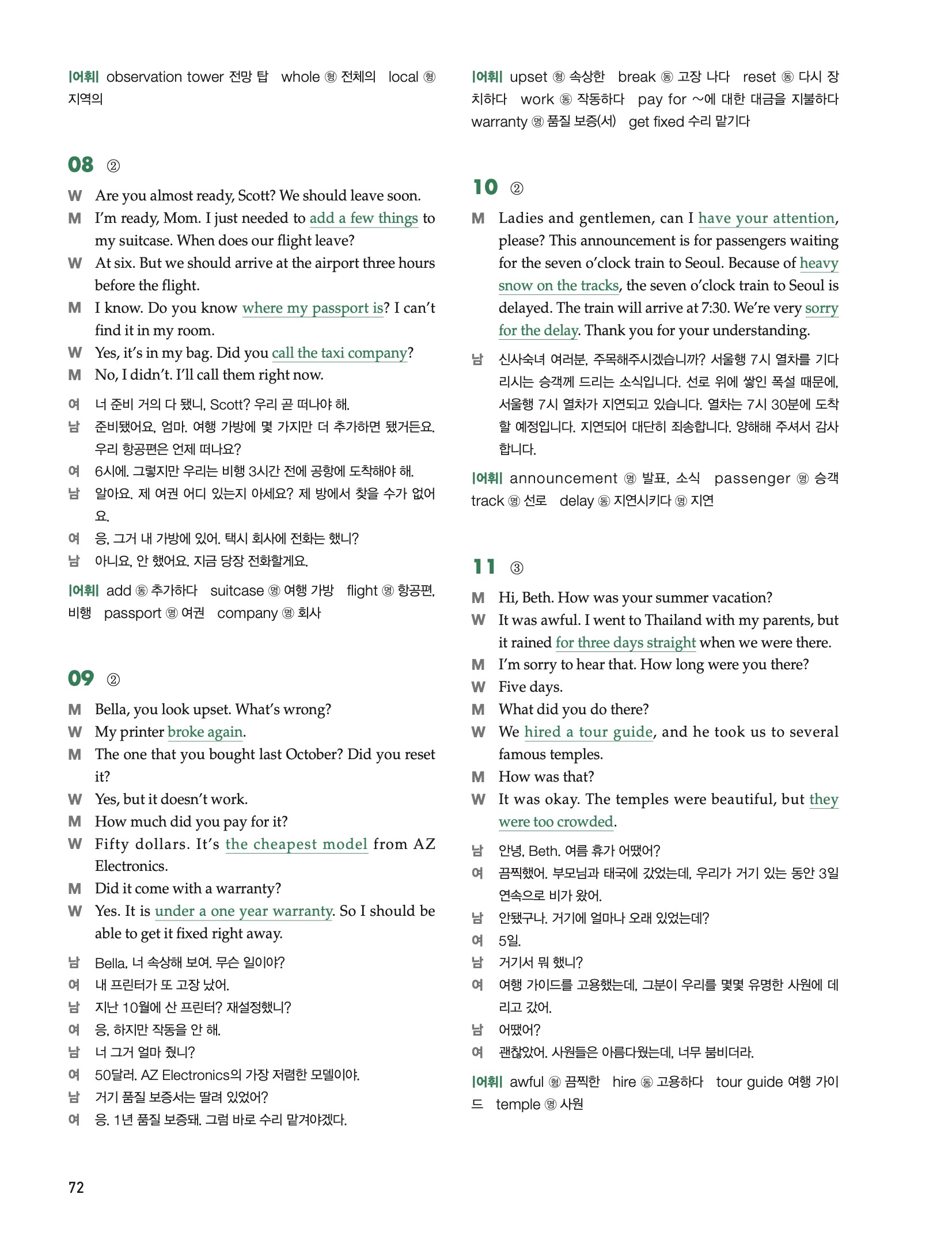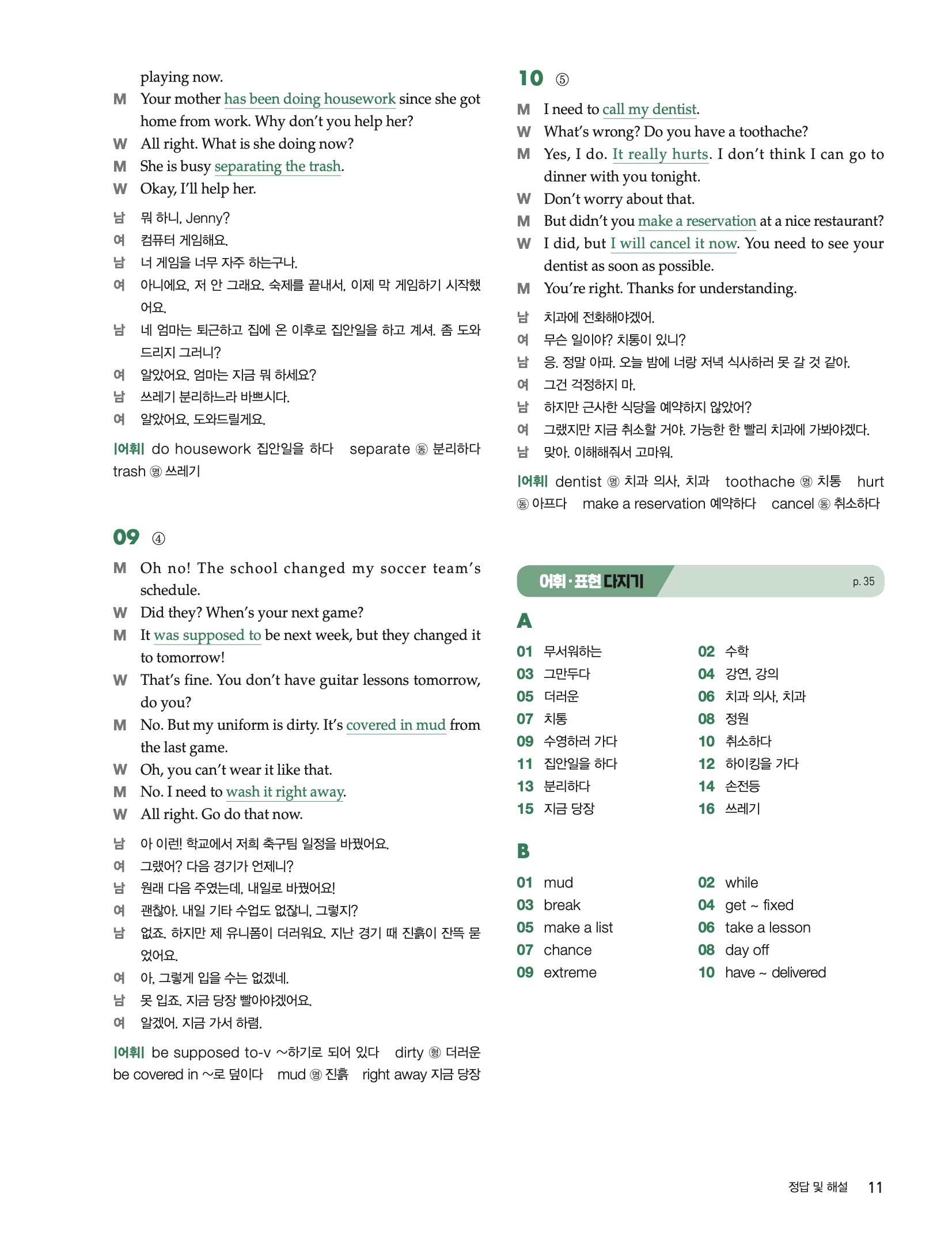 아래는 듣기 실력 향상과 영어 학습에 도움이 되는 다른 교재의 답지와 해설을 제공하는 포스팅입니다.