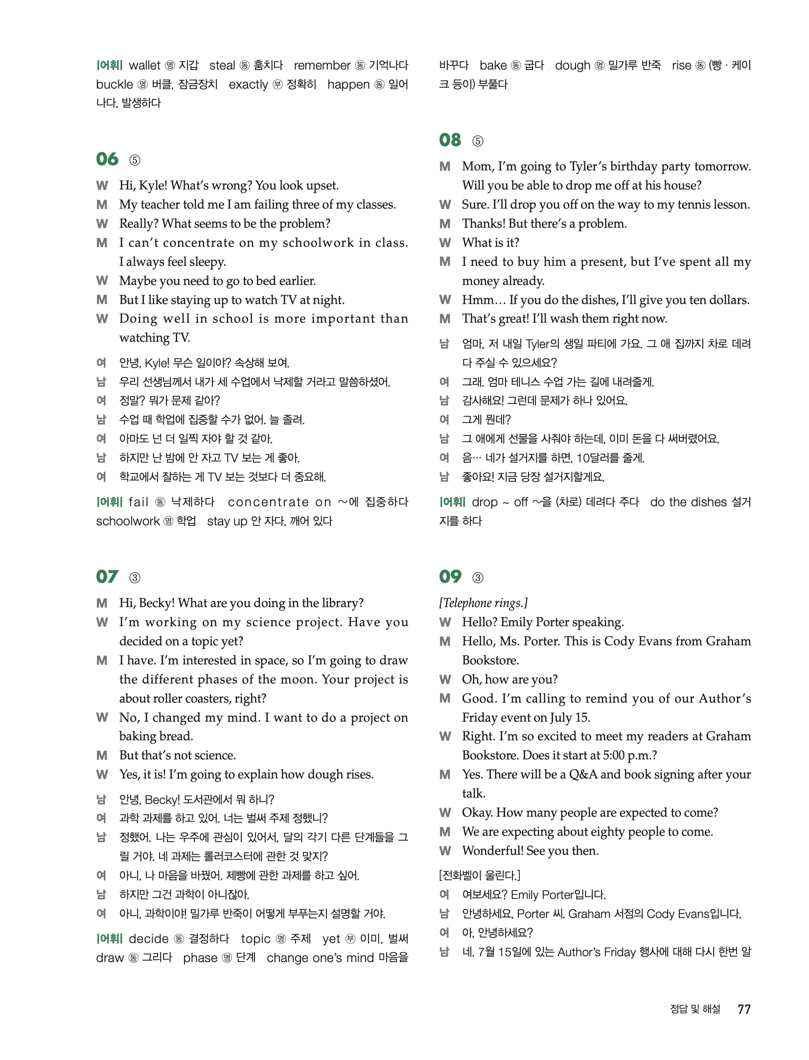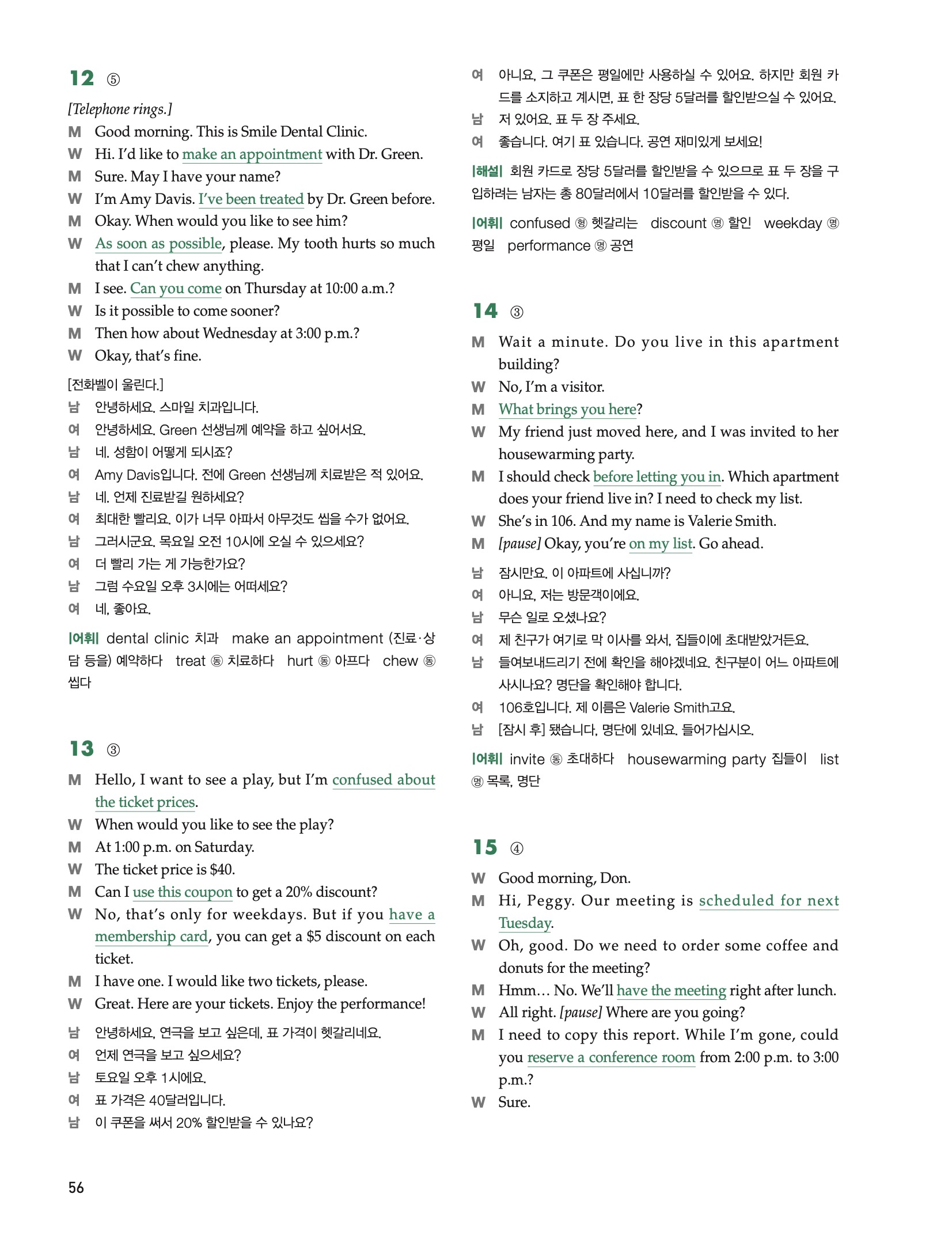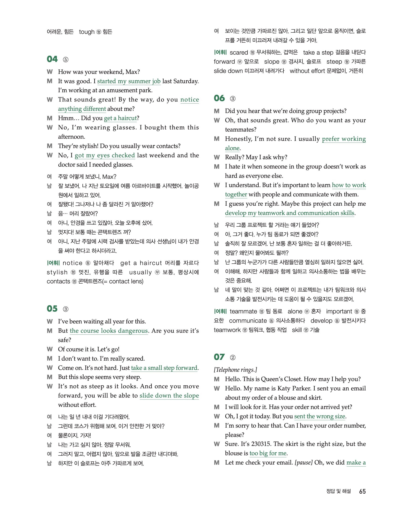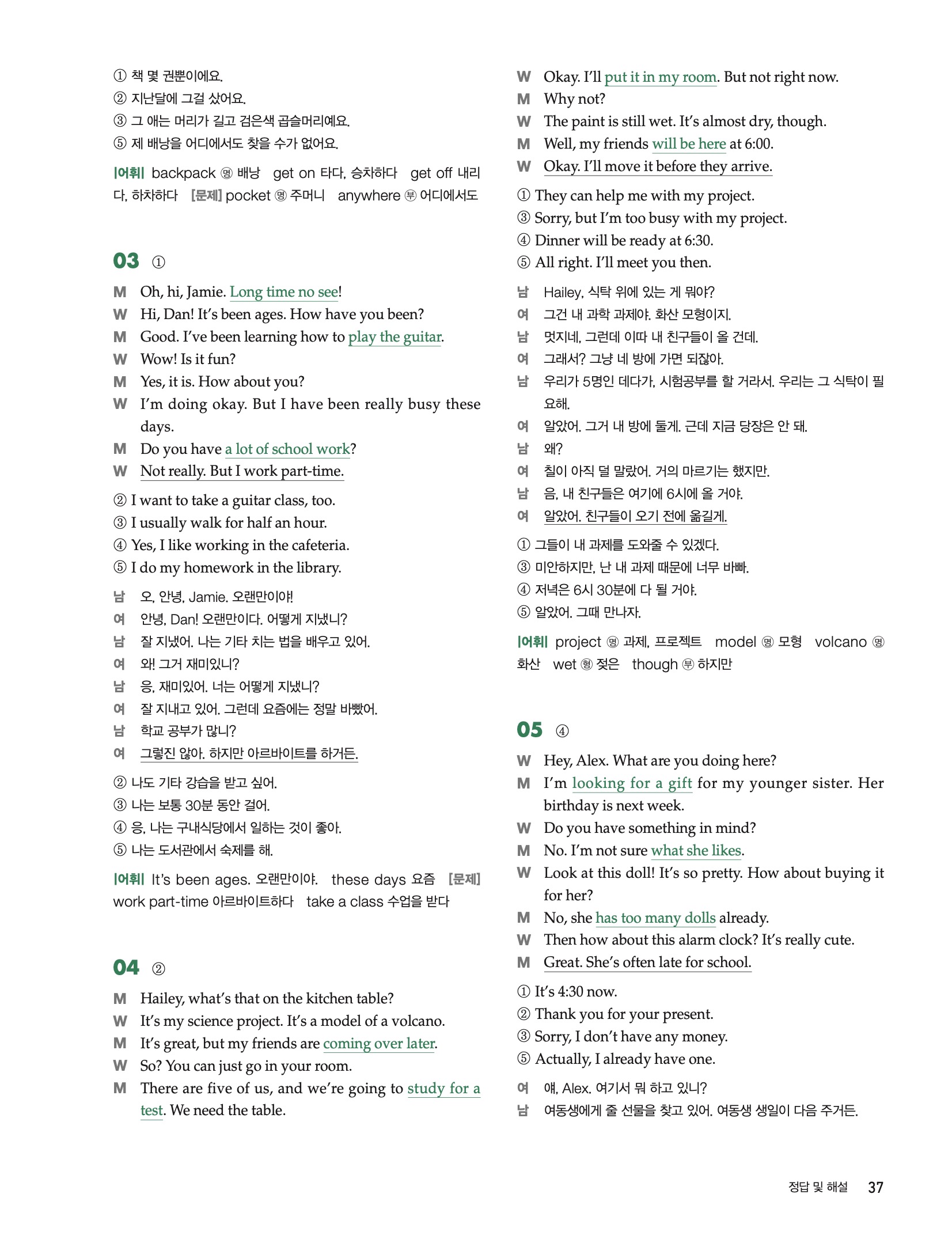 아래는 듣기 실력 향상과 영어 학습에 도움이 되는 다른 교재의 답지와 해설을 제공하는 포스팅입니다.