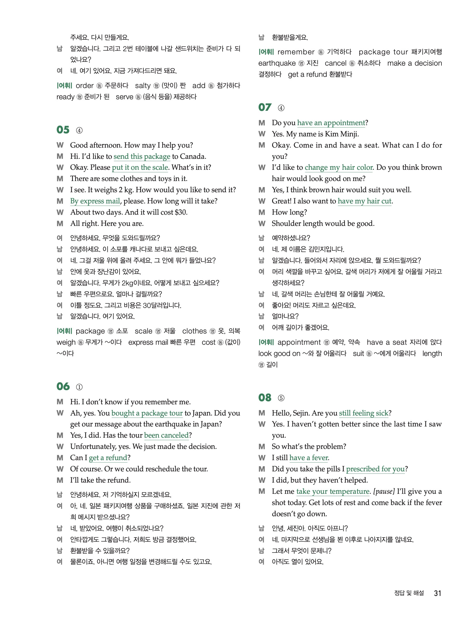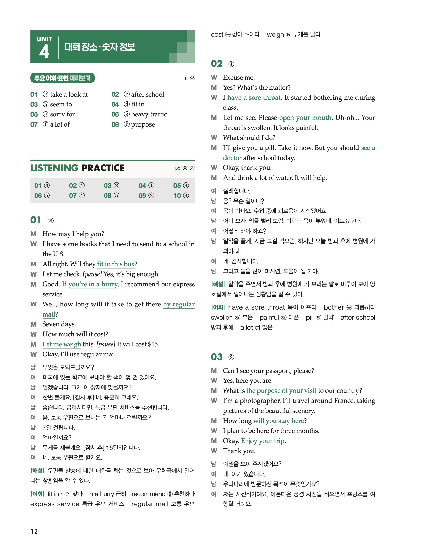 ✅ 핵심 개념 및 실전 연습 – 듣기 문제 풀이와 함께 주요 표현과 패턴을 익힐 수 있습니다.