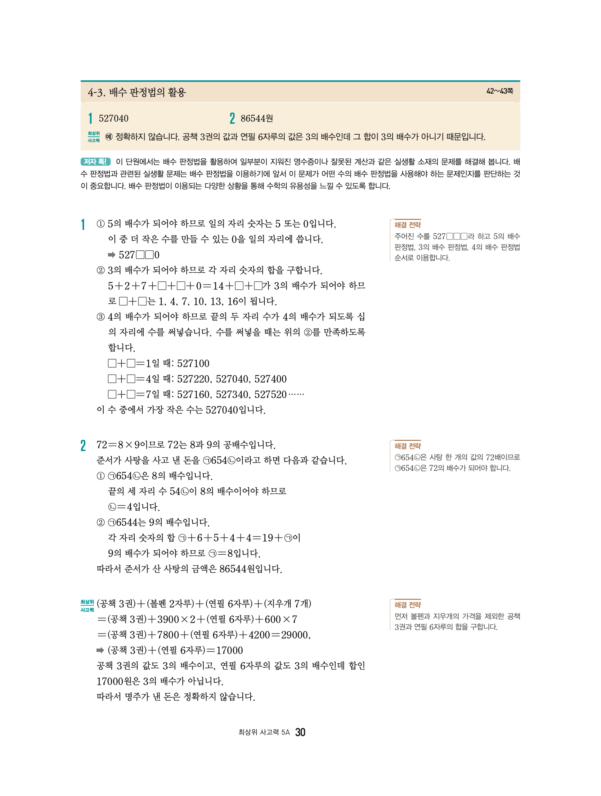 📚 디딤돌 초등 최상위 사고력 5A 답지 활용법