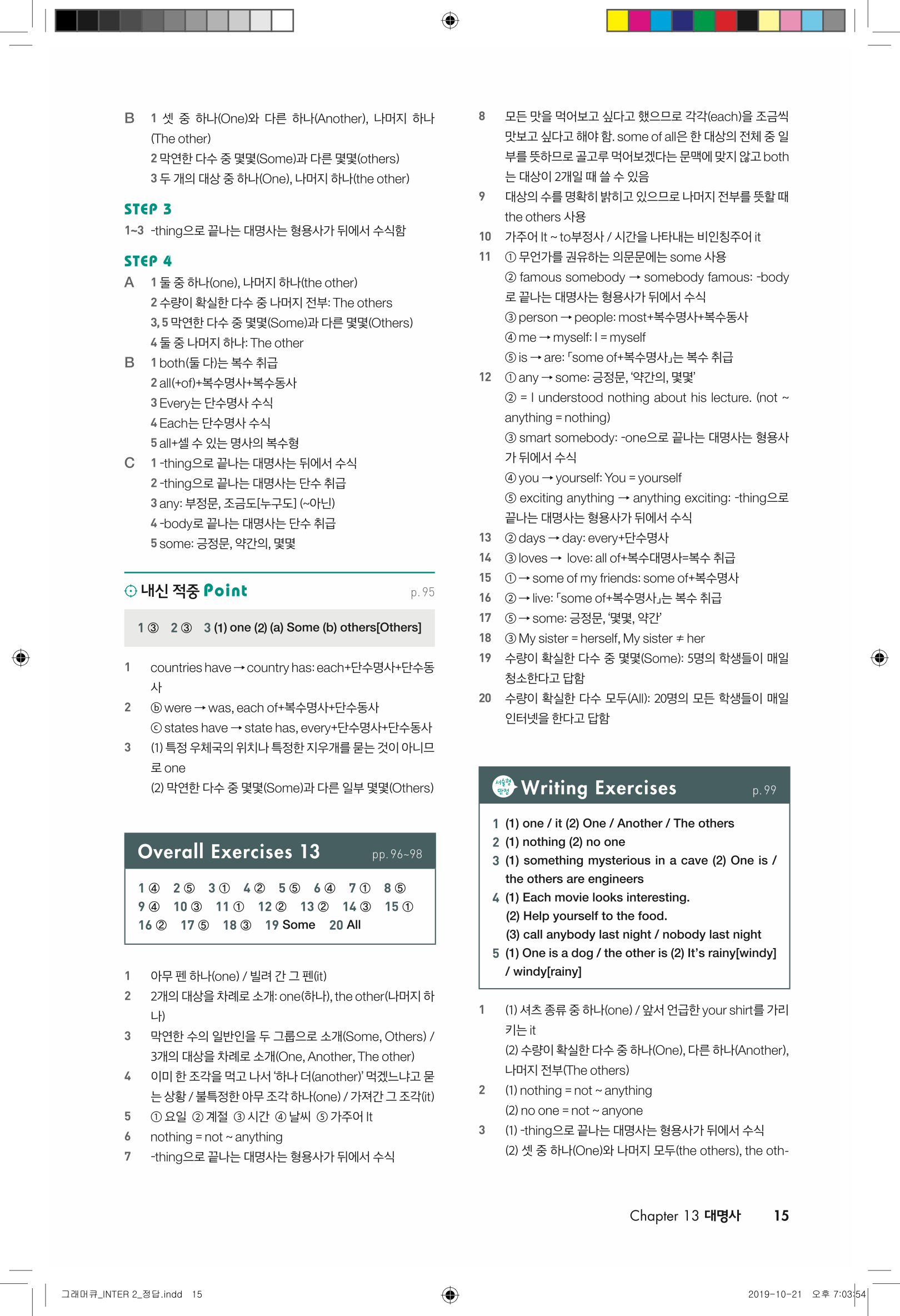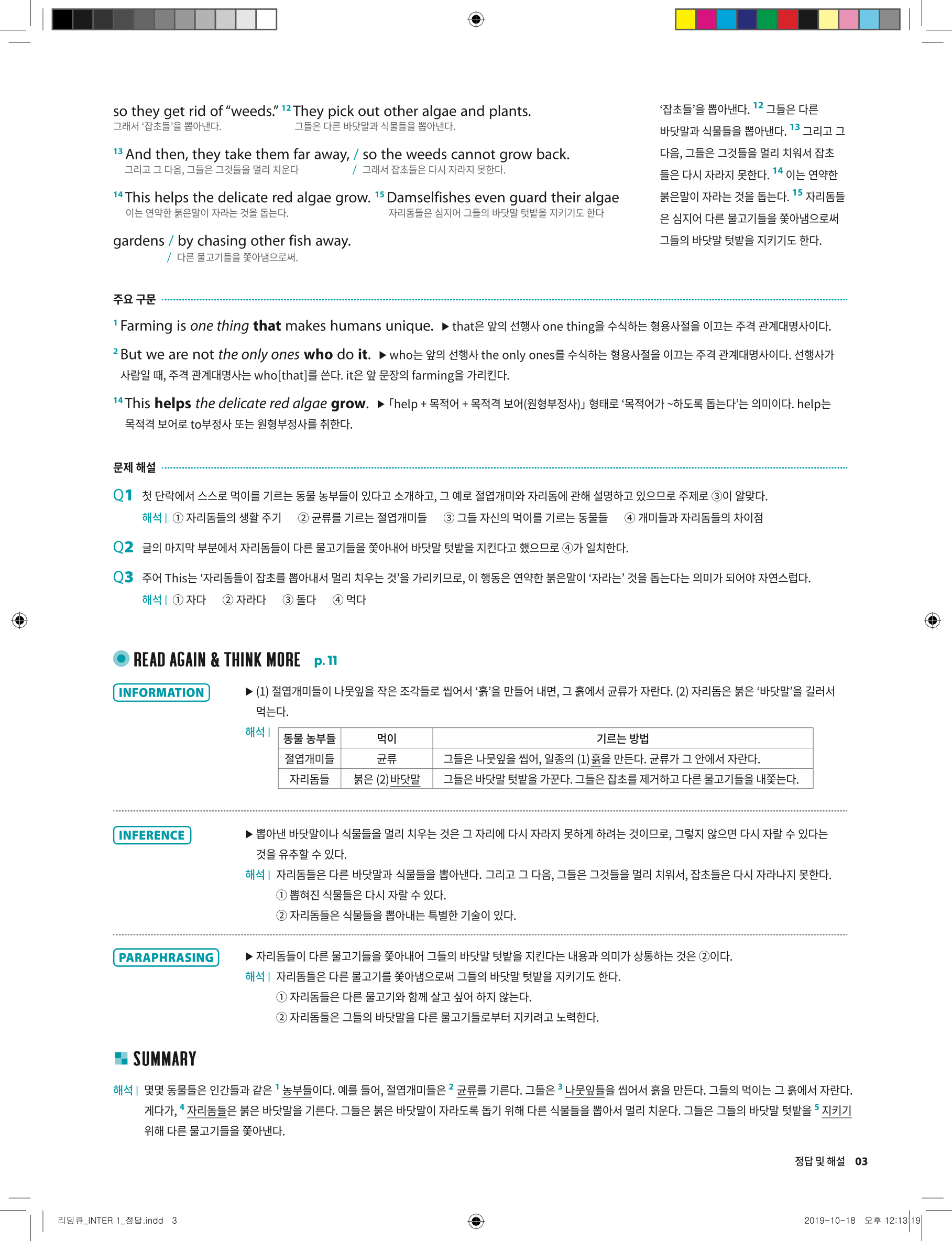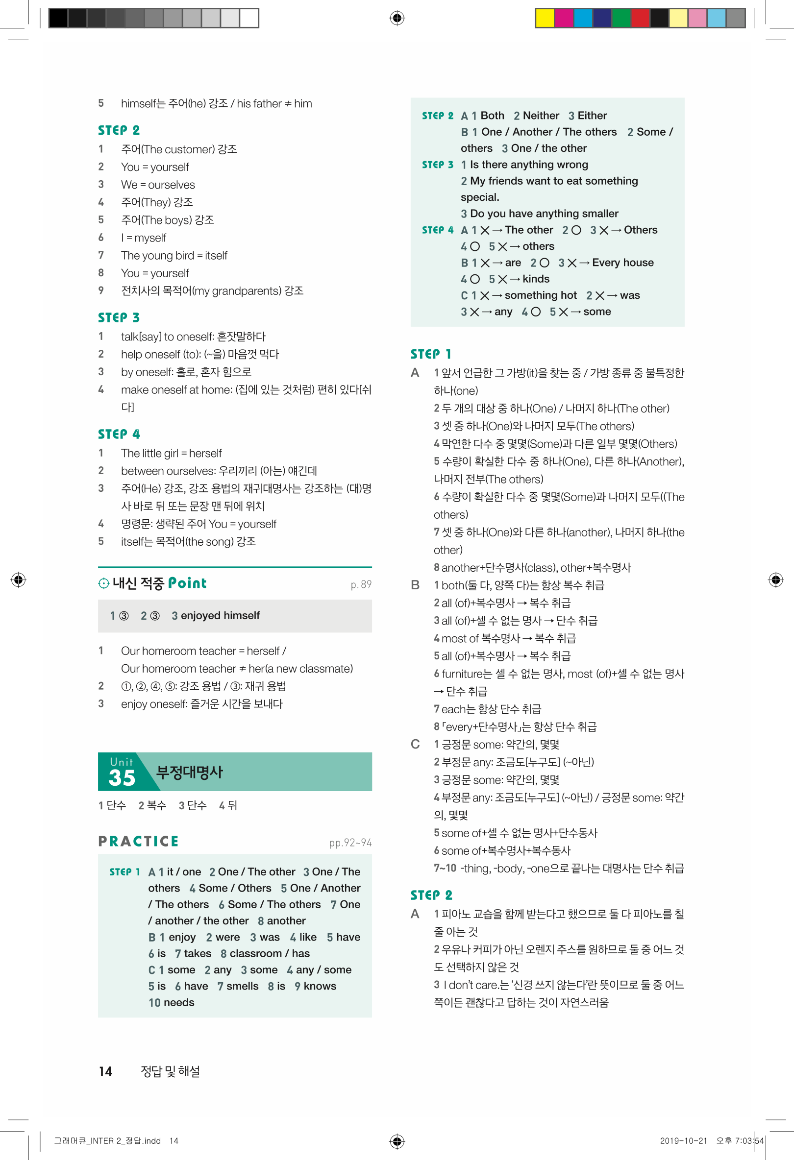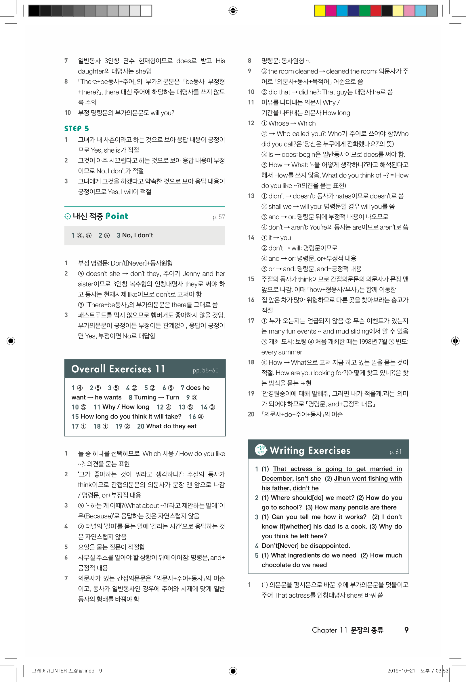 📢 세듀 그래머큐 인터2 답지 해설 풀이 빠른답지 PDF 다운로드