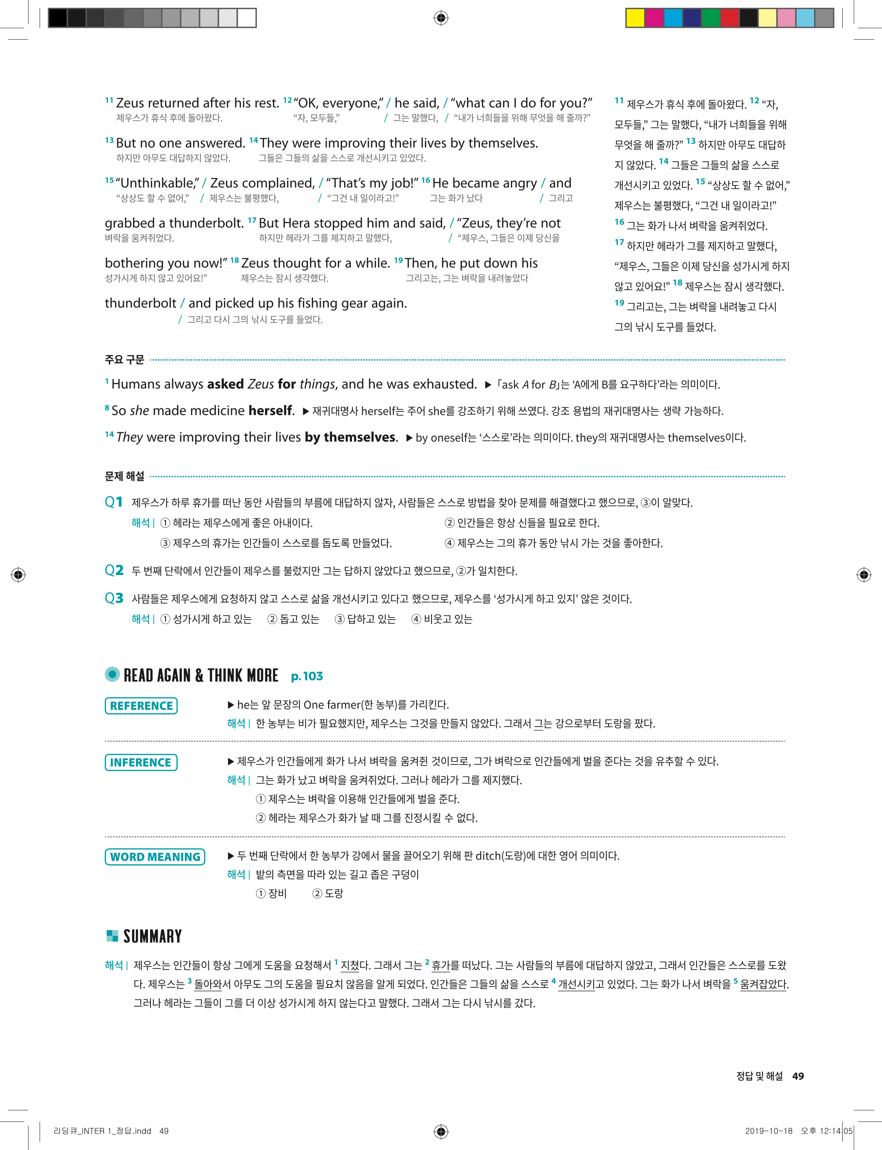 📥 세듀 그래머큐 인터2 답지 해설 풀이 빠른답지 PDF 다운로드