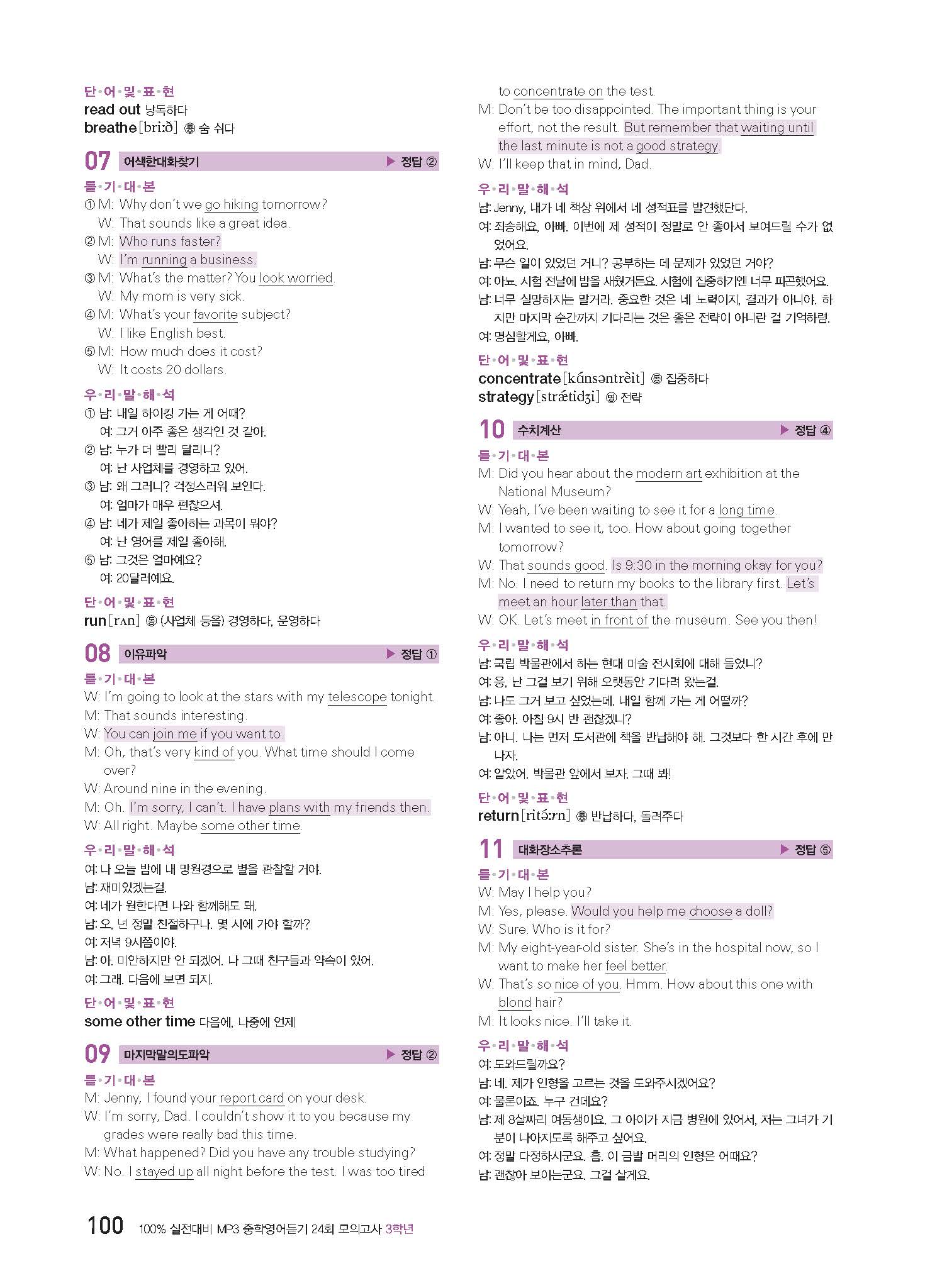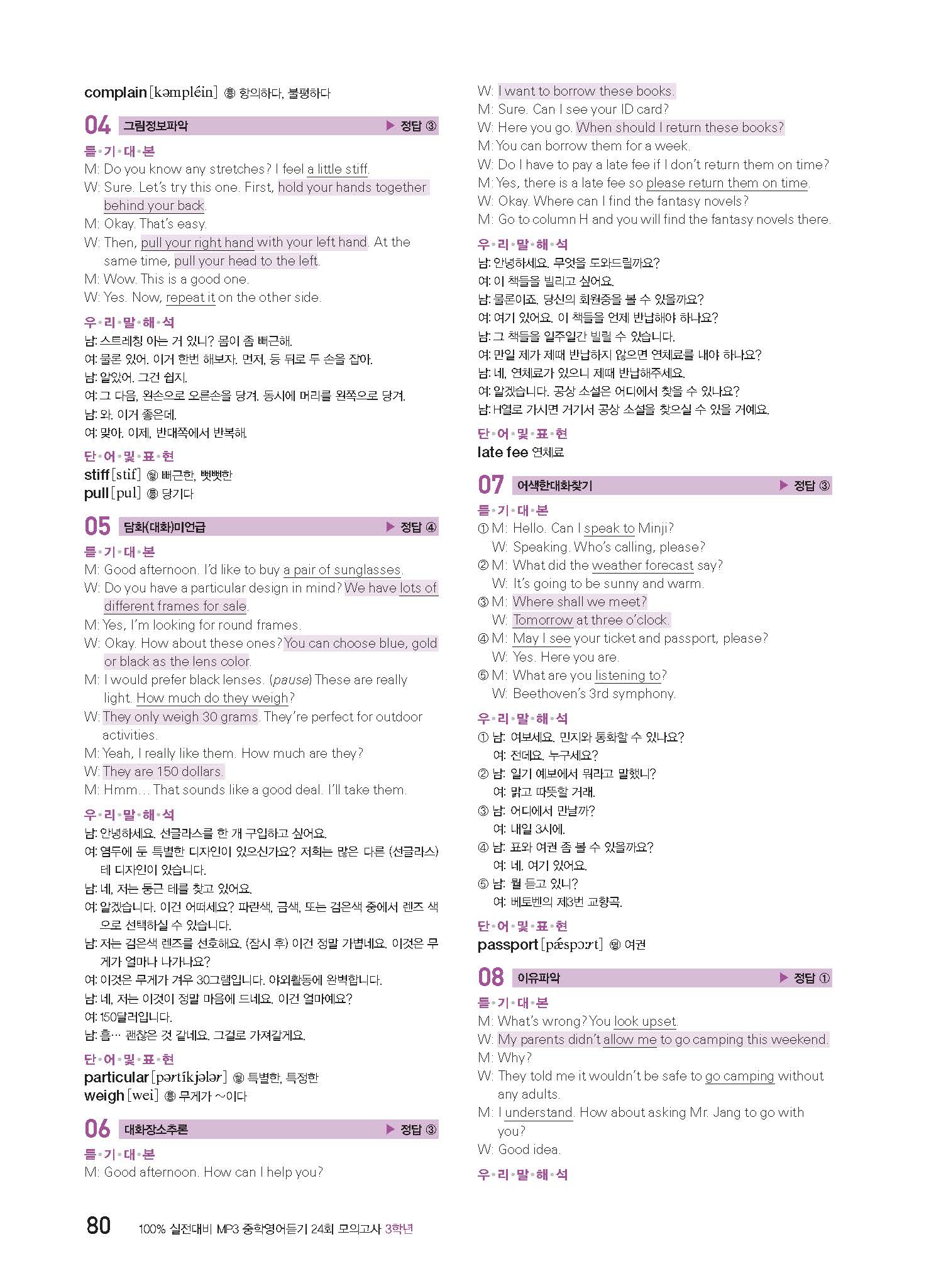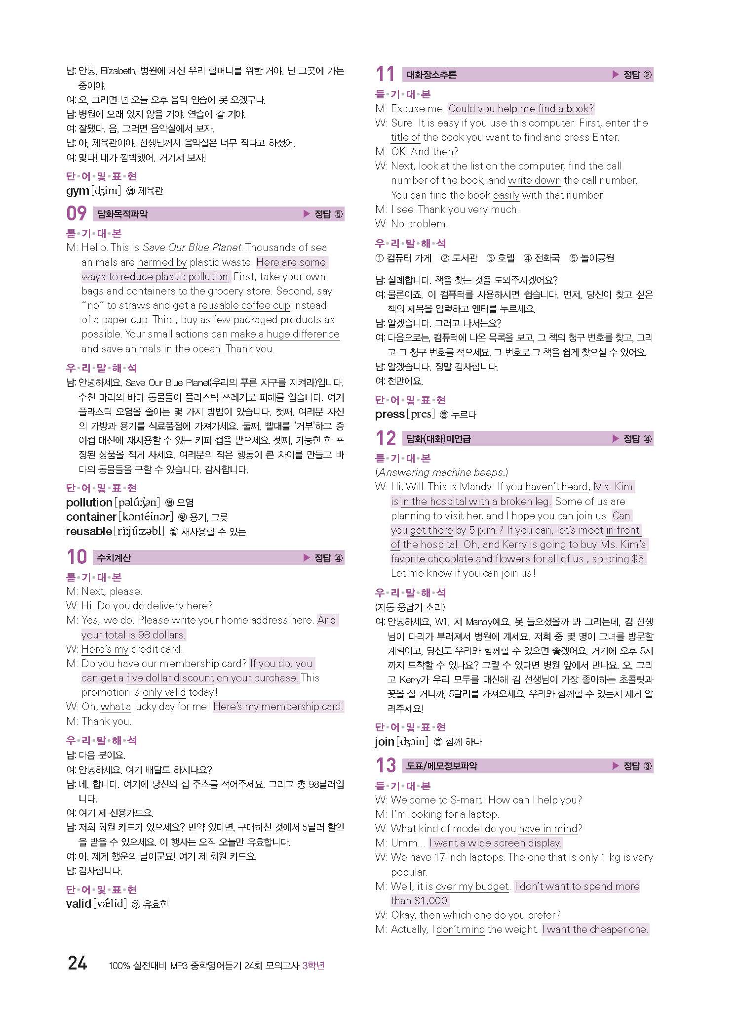 2021 100% 실전대비 MP3 중학영어듣기 24회 모의고사 3학년 답지 사진답지 빠른답지 모바일최적화