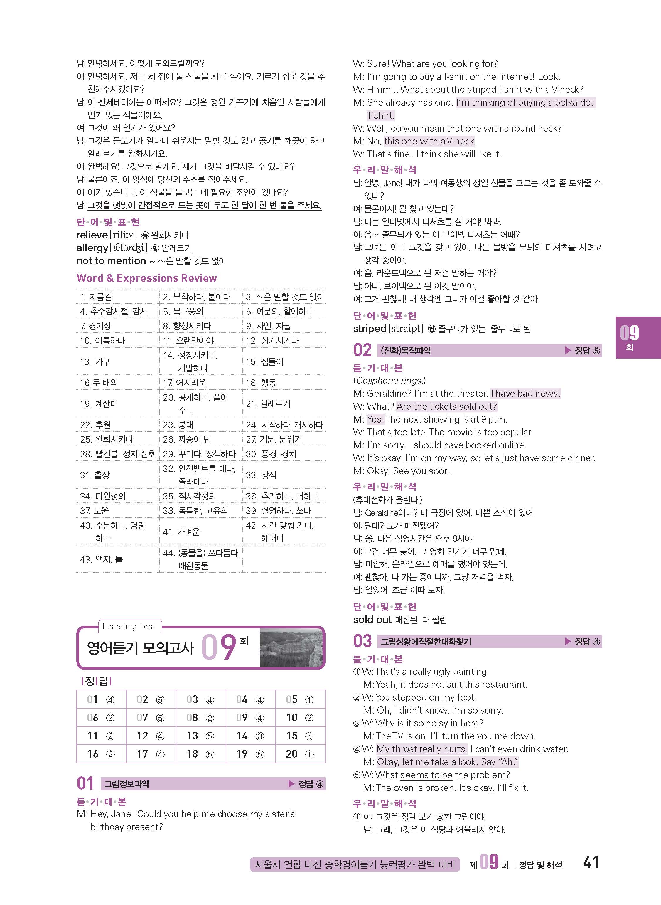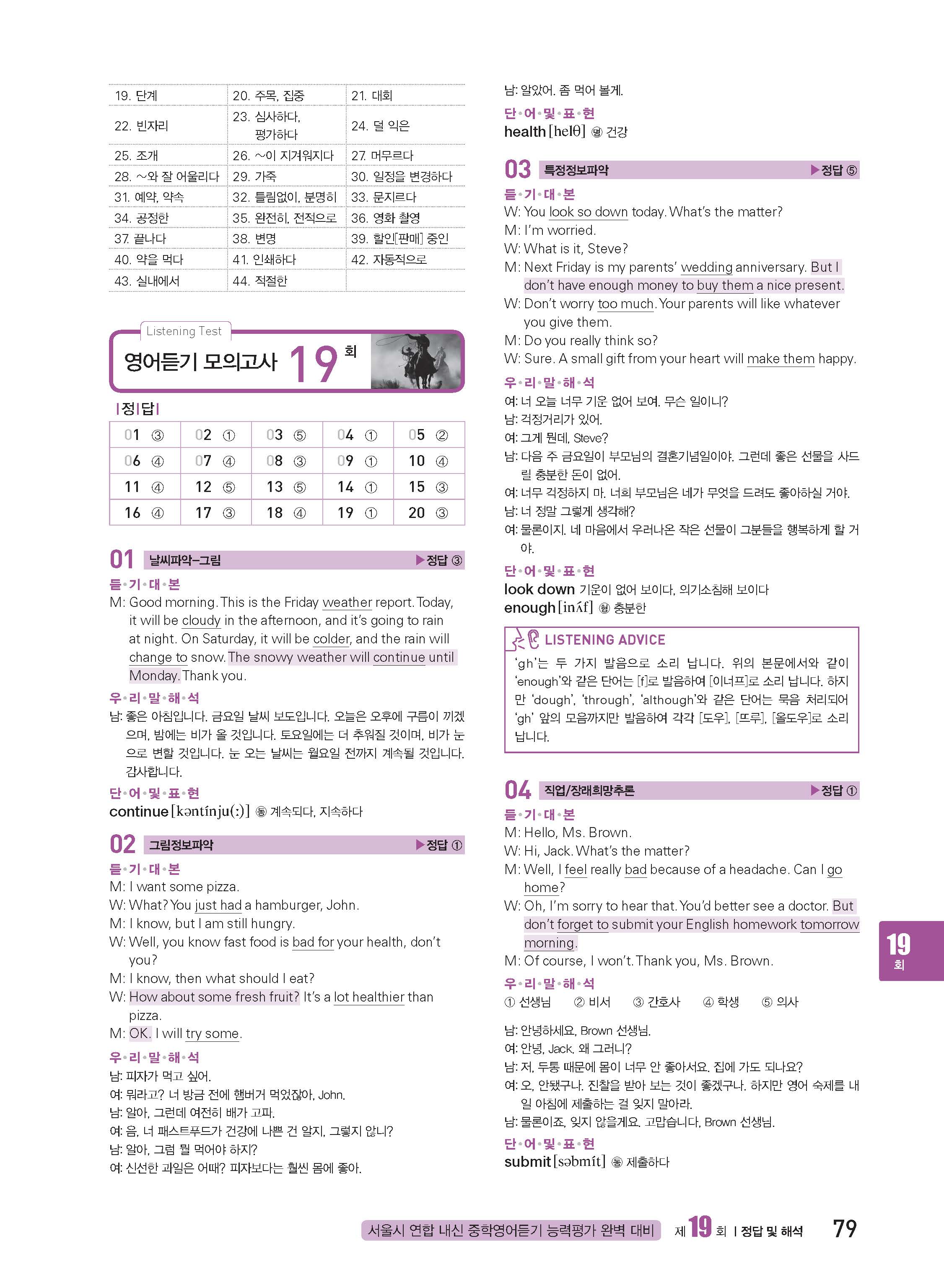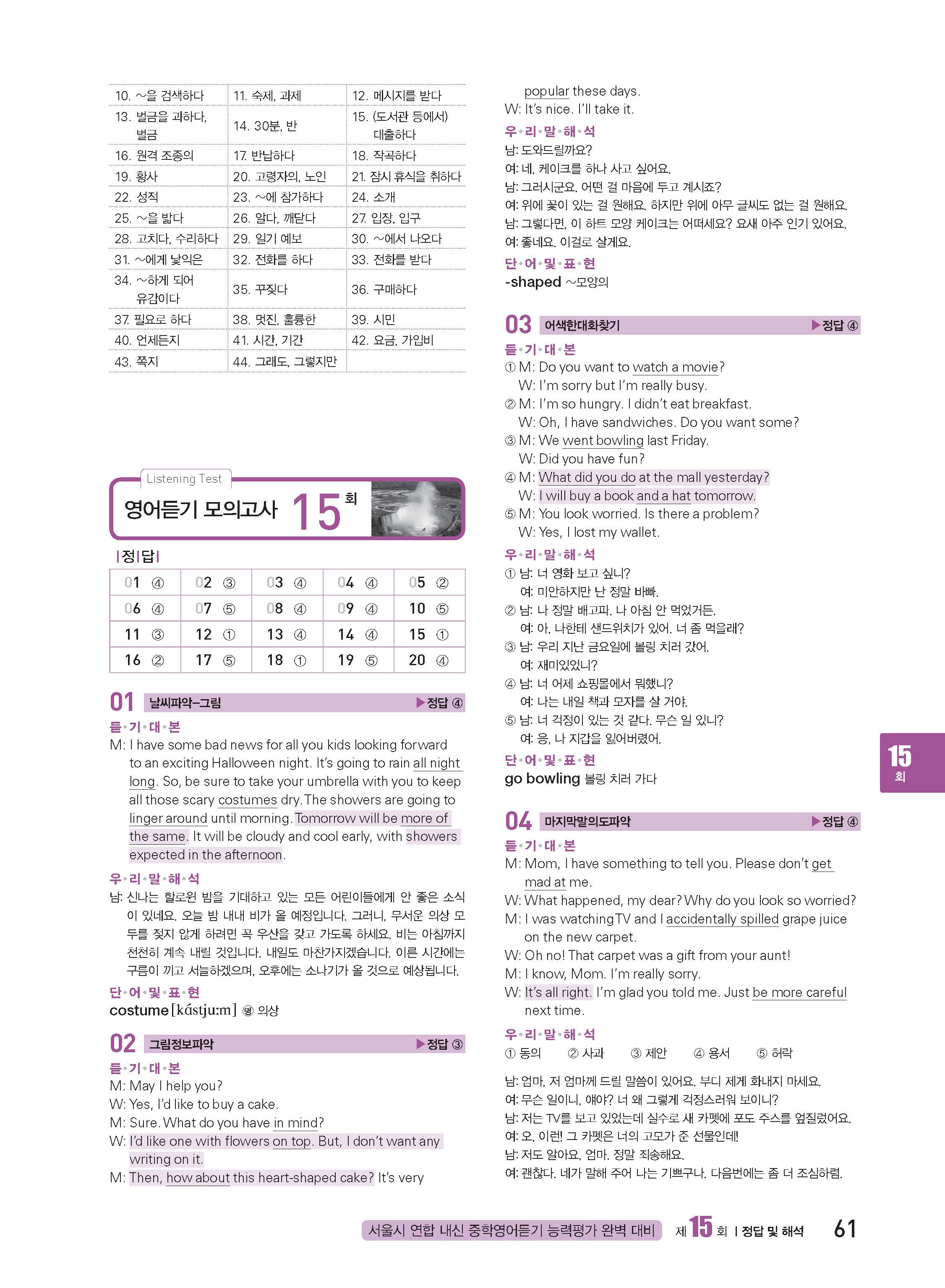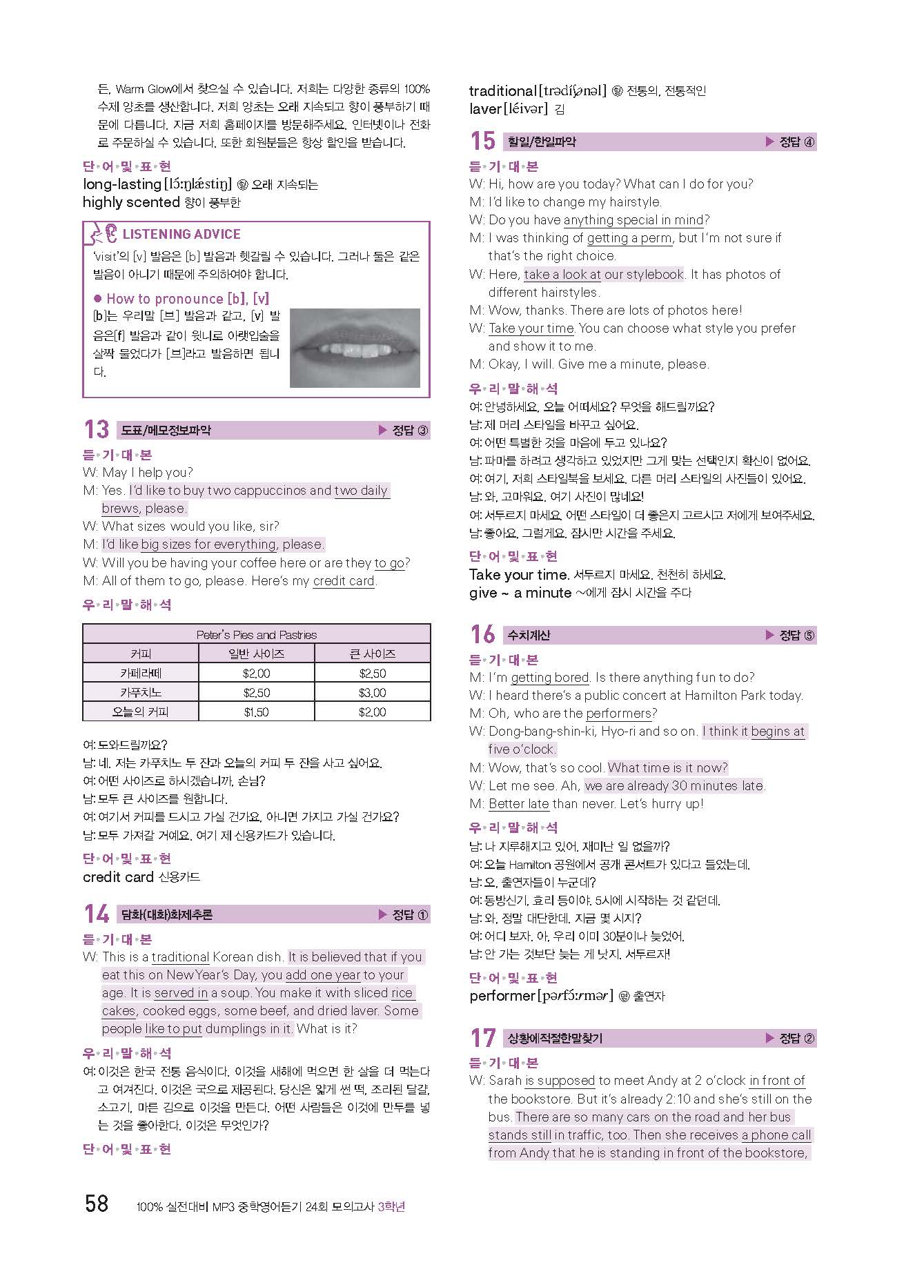 2021 100% 실전대비 MP3 중학영어듣기 24회 모의고사 3학년 답지 사진답지 빠른답지 모바일최적화