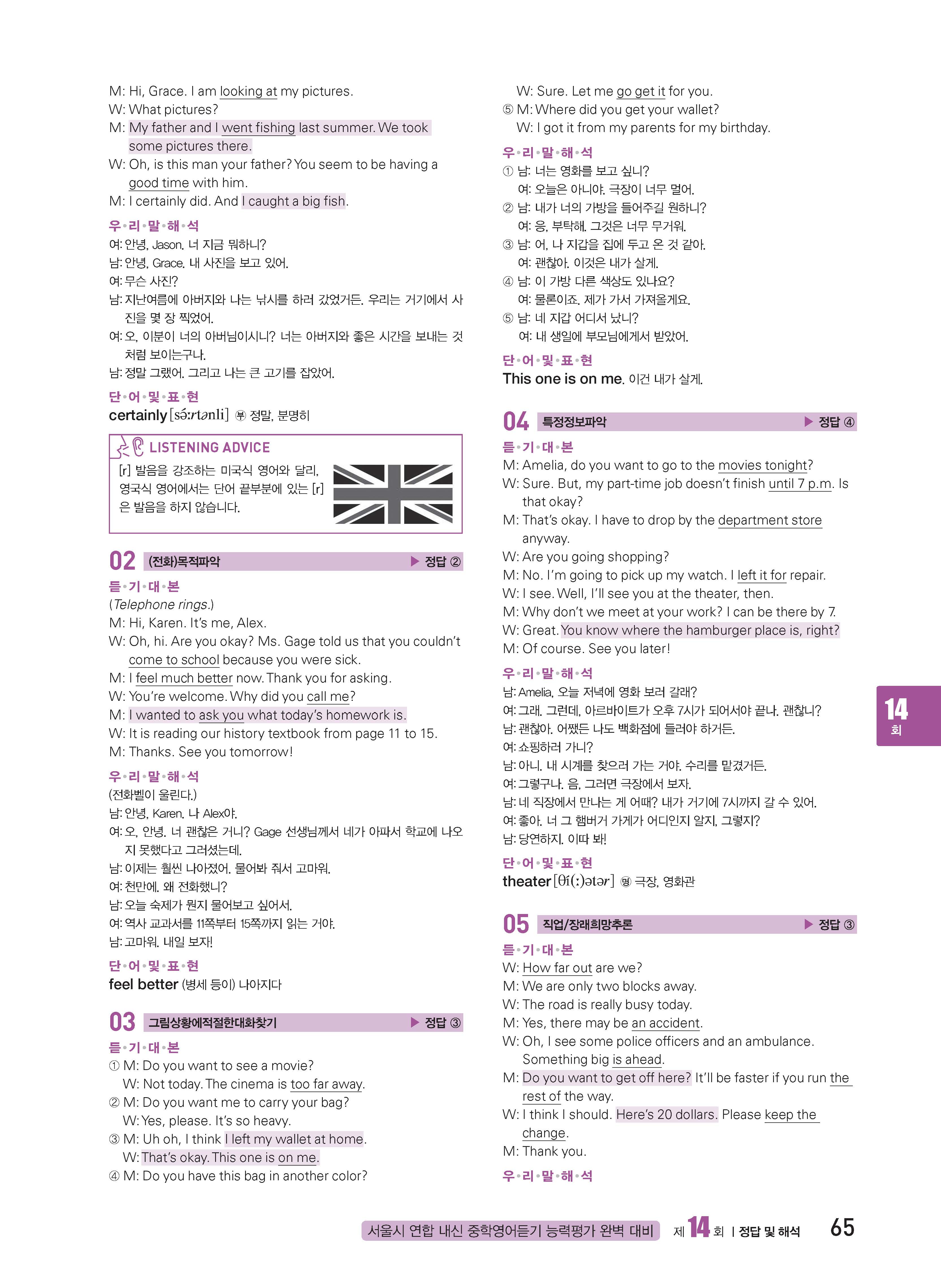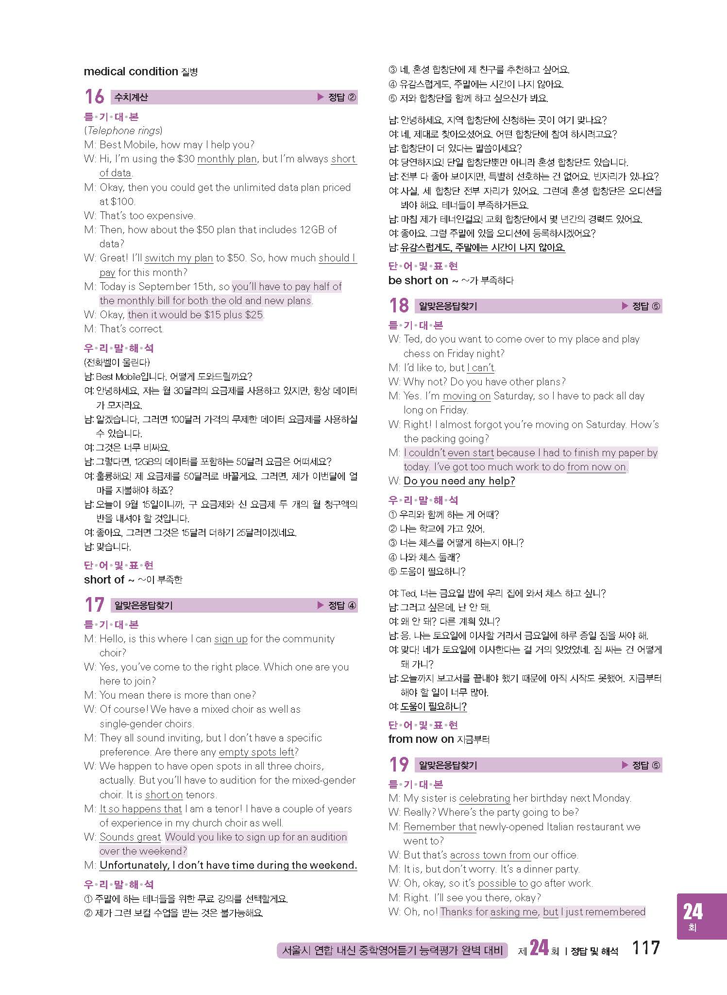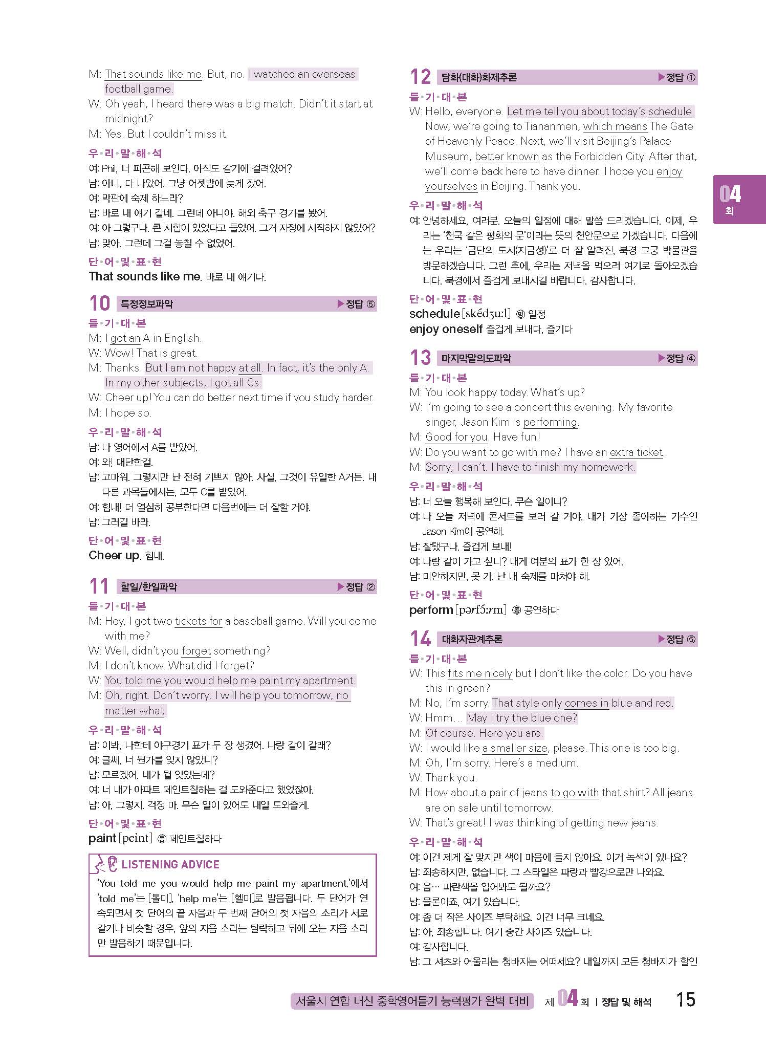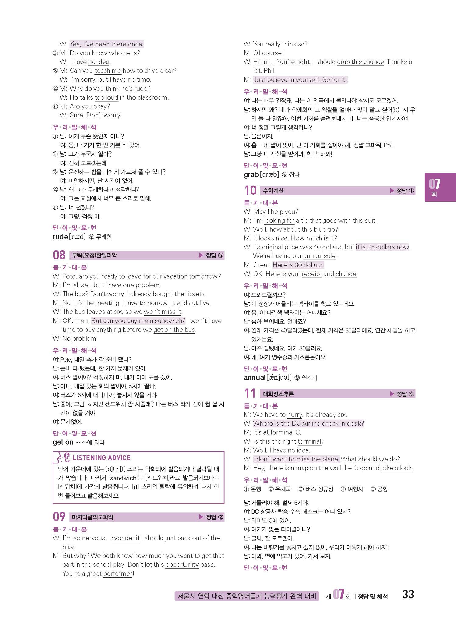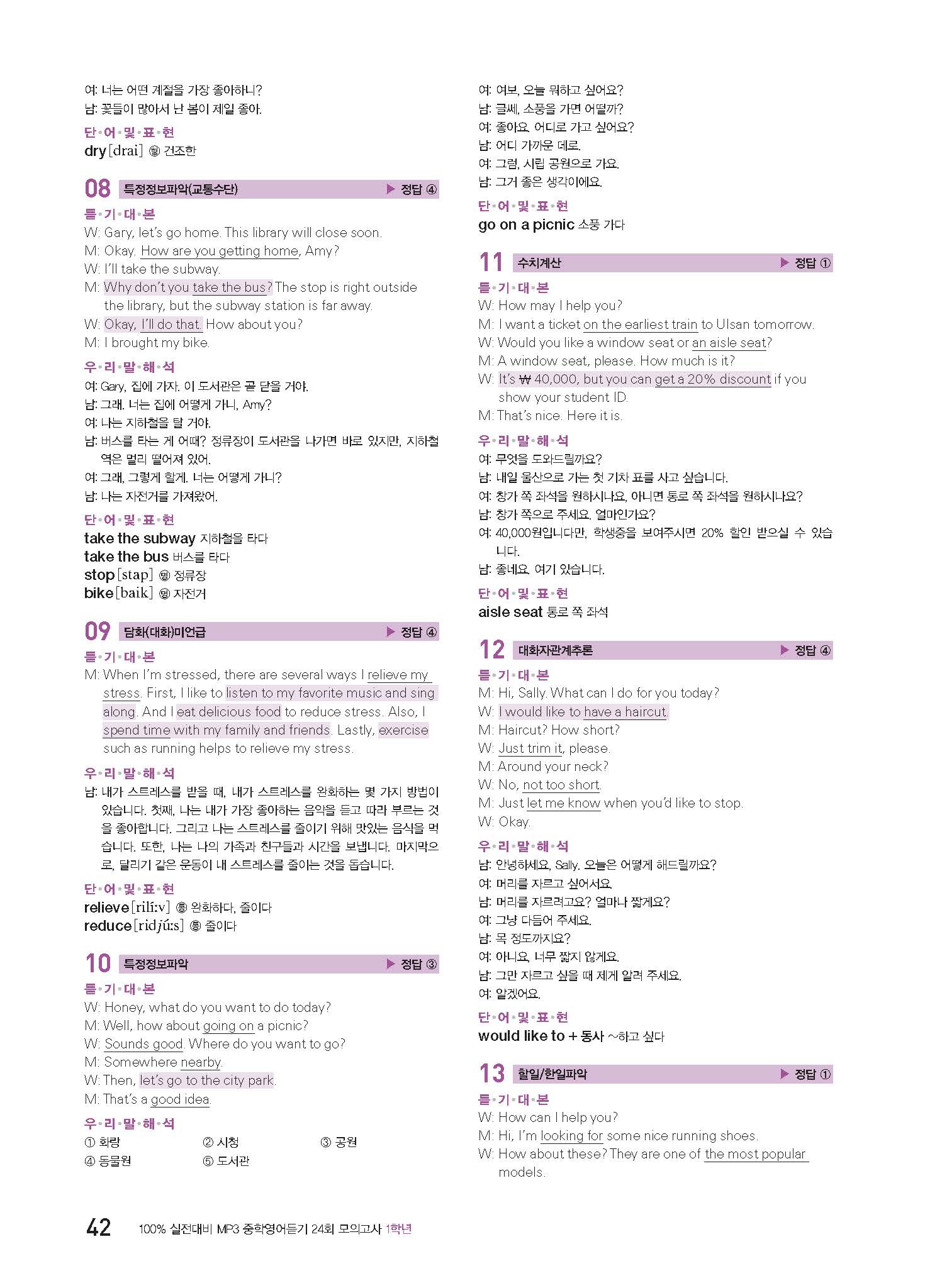 2021 100% 실전대비 MP3 중학영어듣기 24회 모의고사 2학년 답지 사진답지 빠른답지 모바일최적화