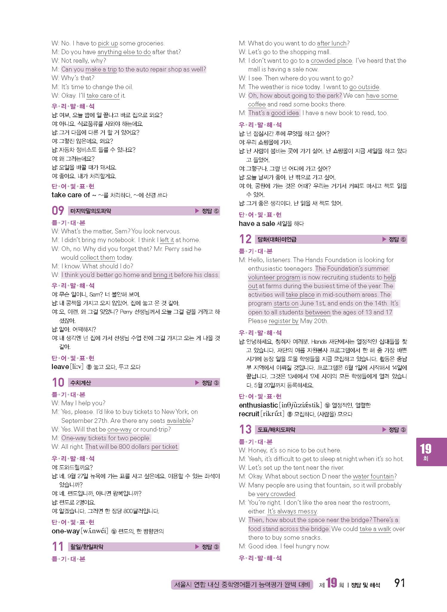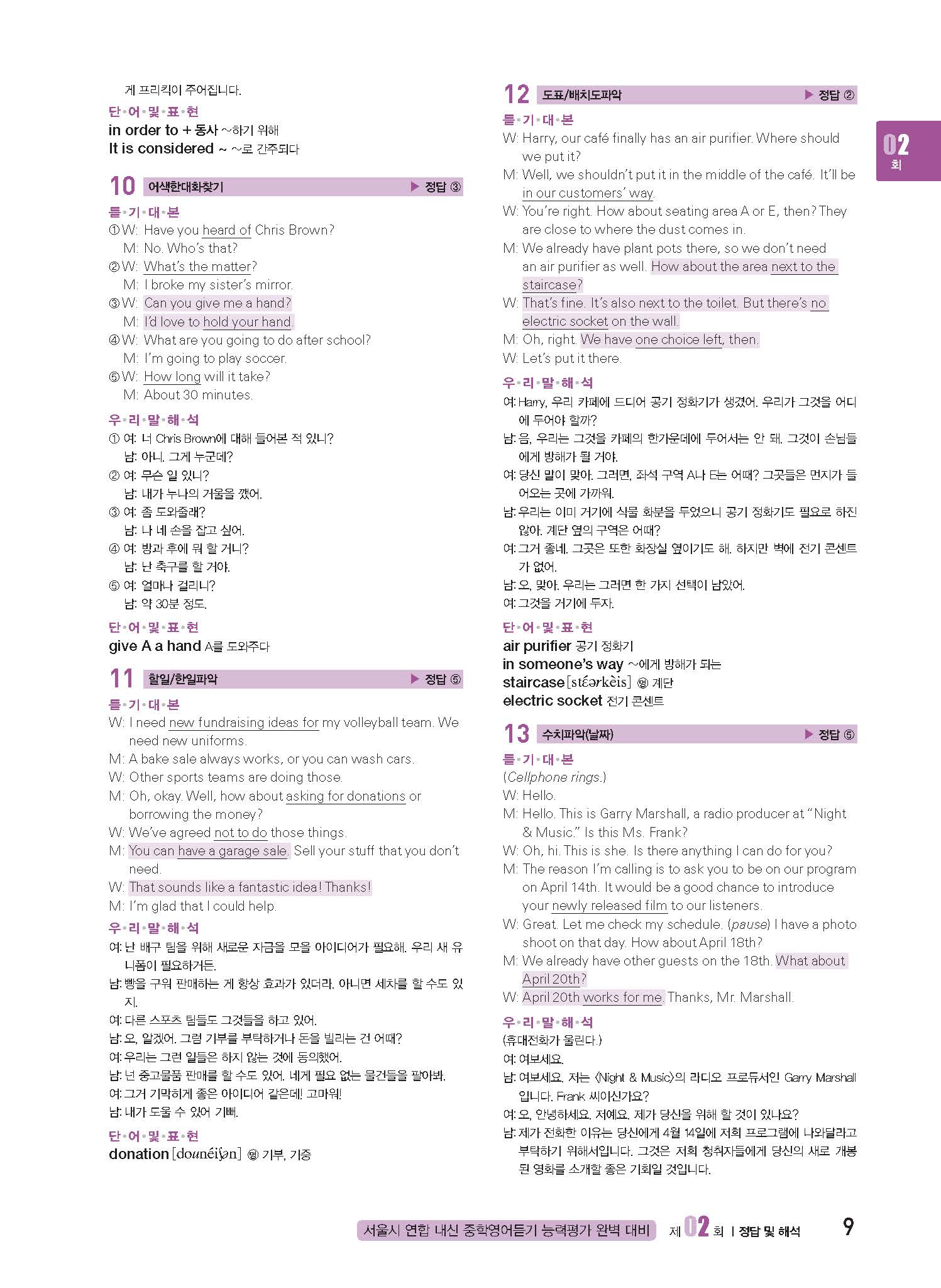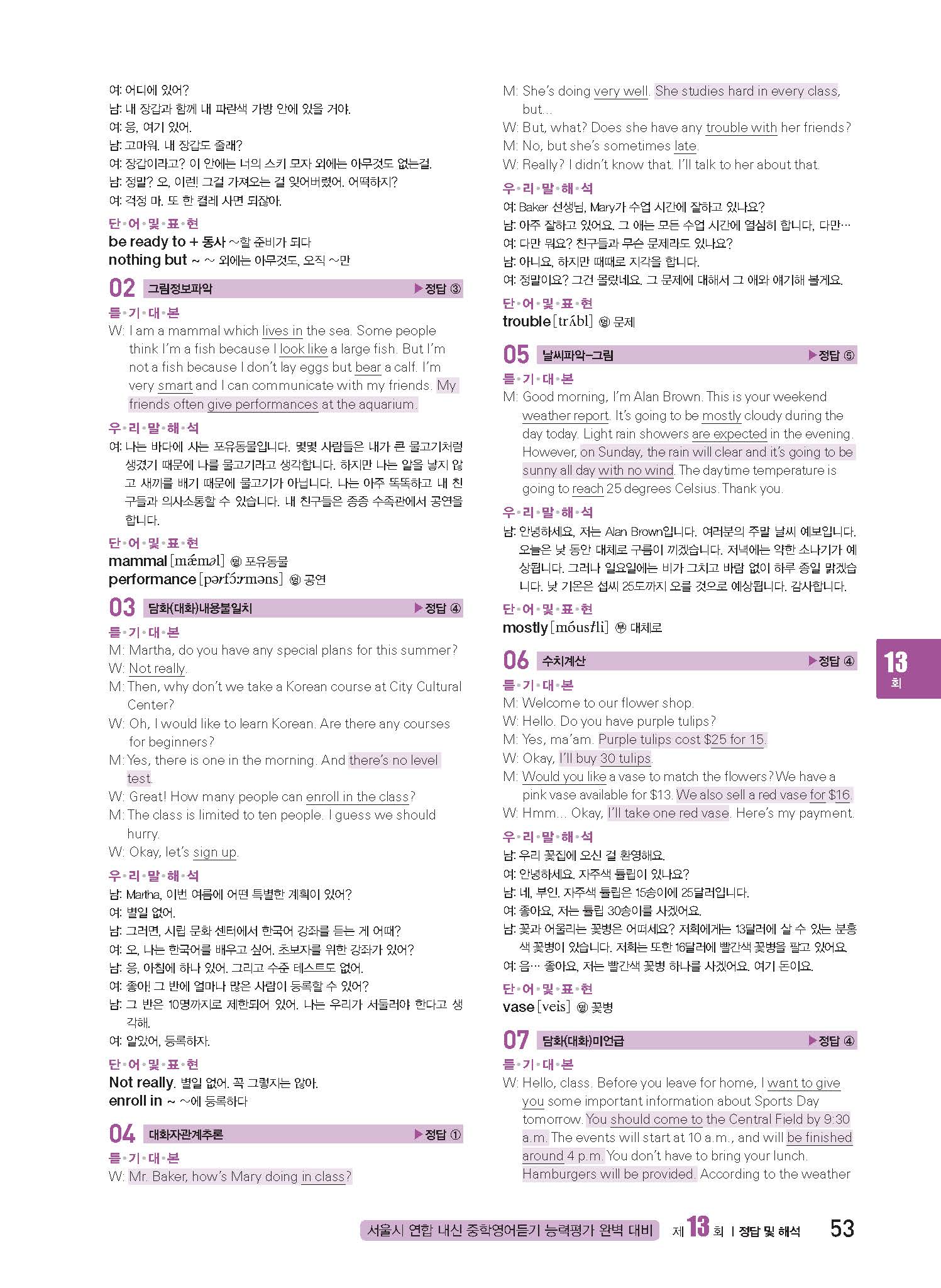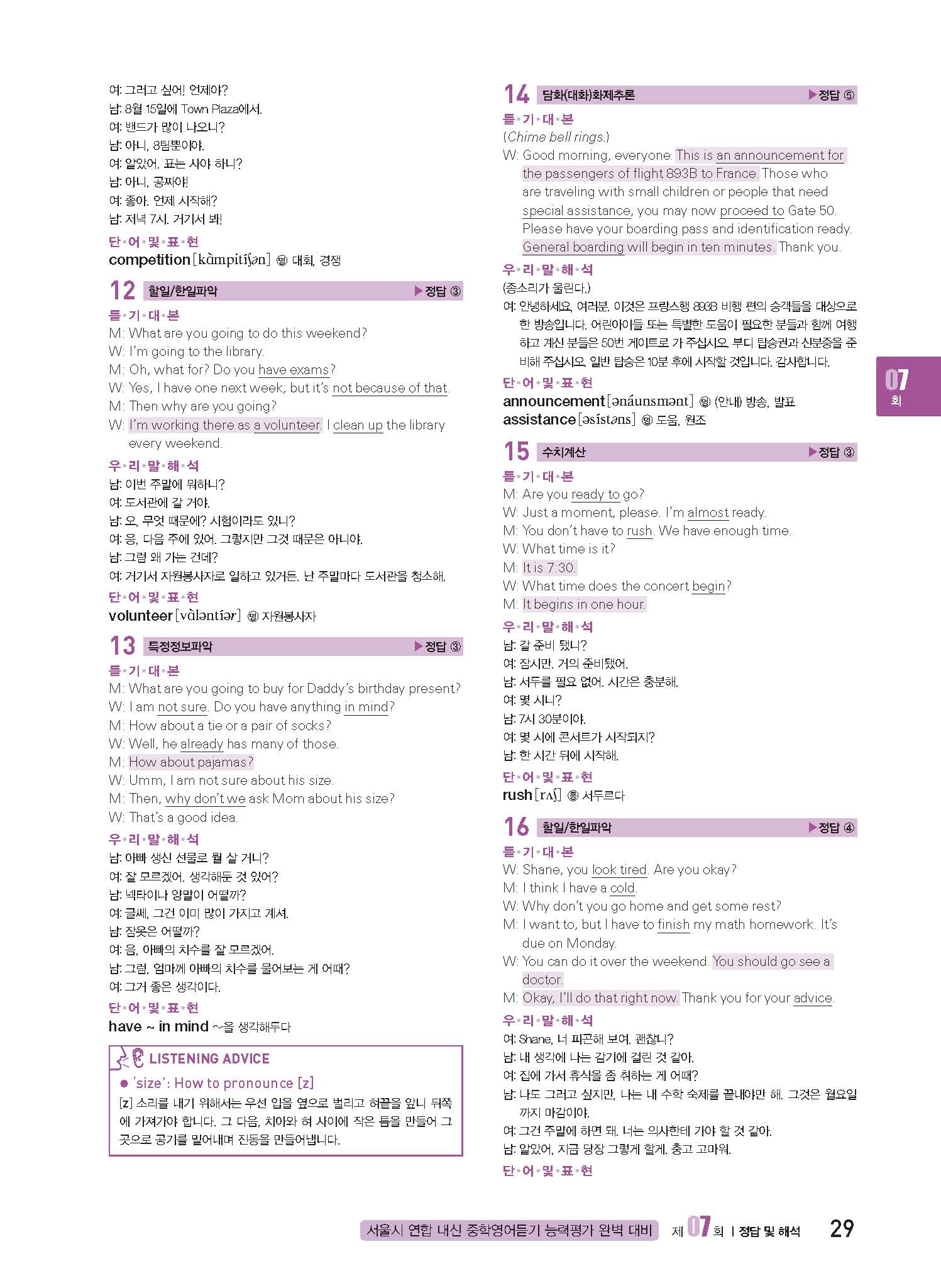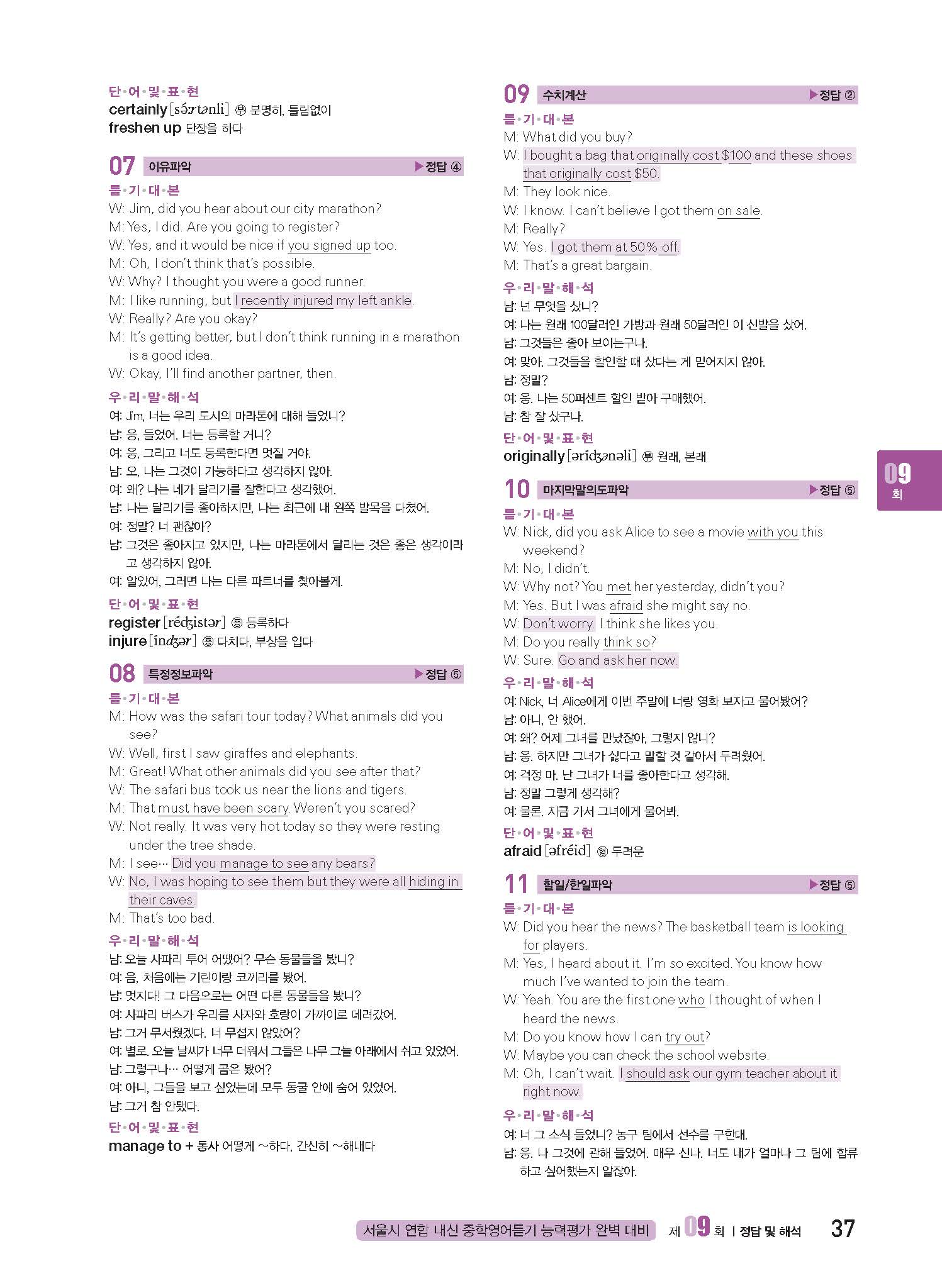 2021 100% 실전대비 MP3 중학영어듣기 24회 모의고사 2학년 답지 사진답지 빠른답지 모바일최적화