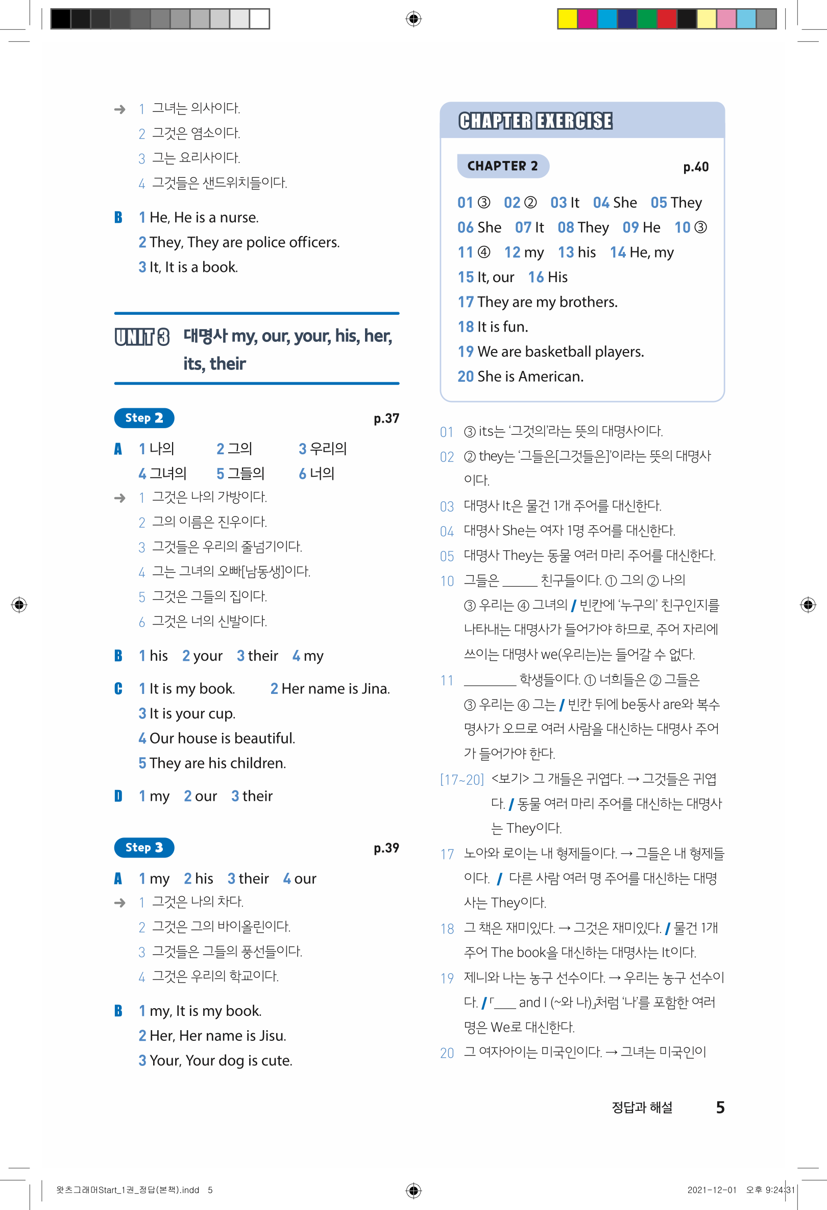 📥 쎄듀 왓츠그래머 스타트1 답지 해설 풀이 빠른답지 PDF 다운로드