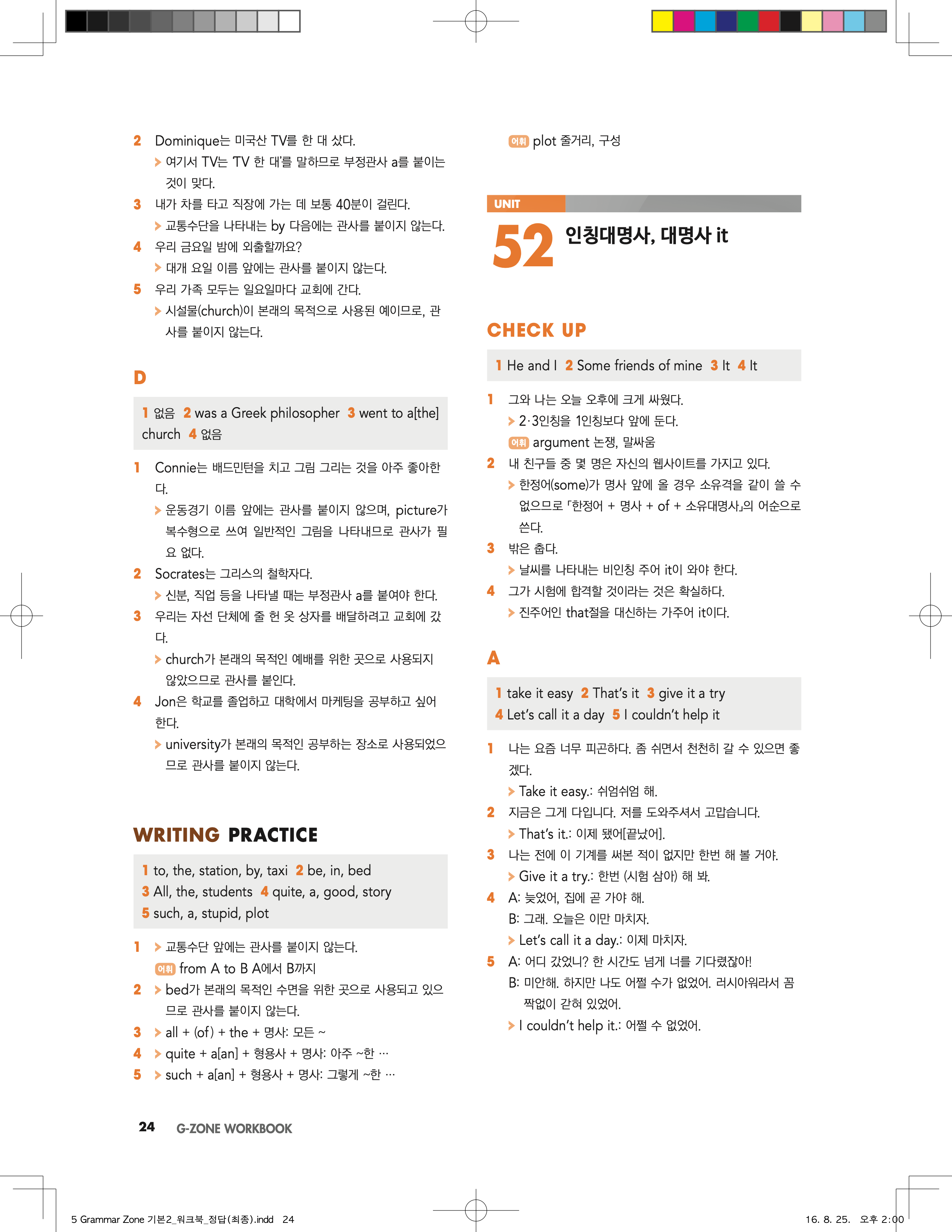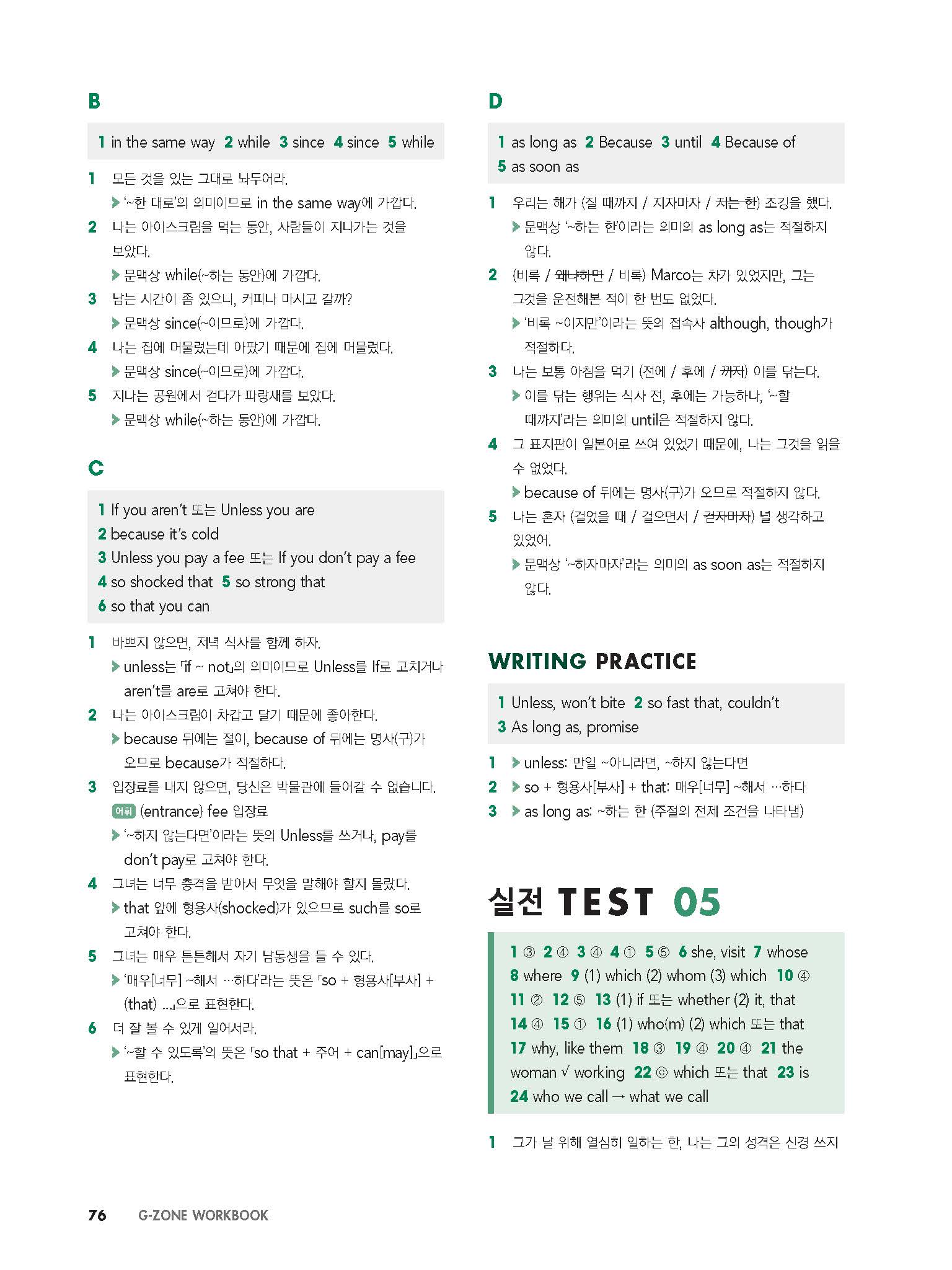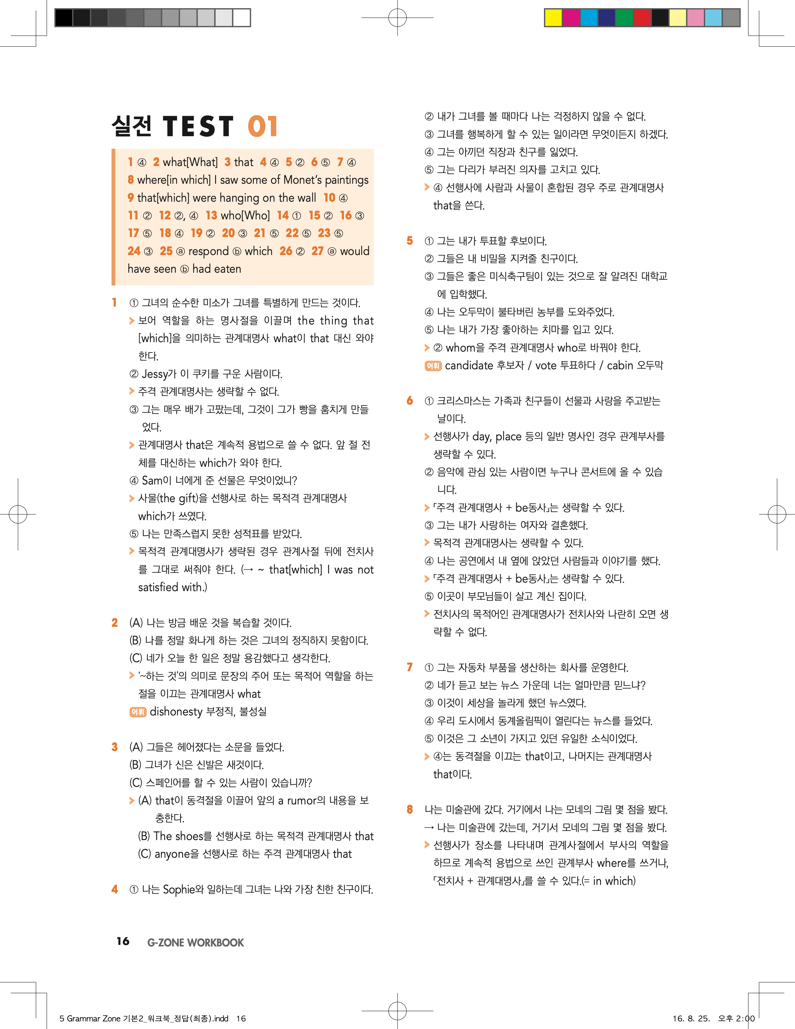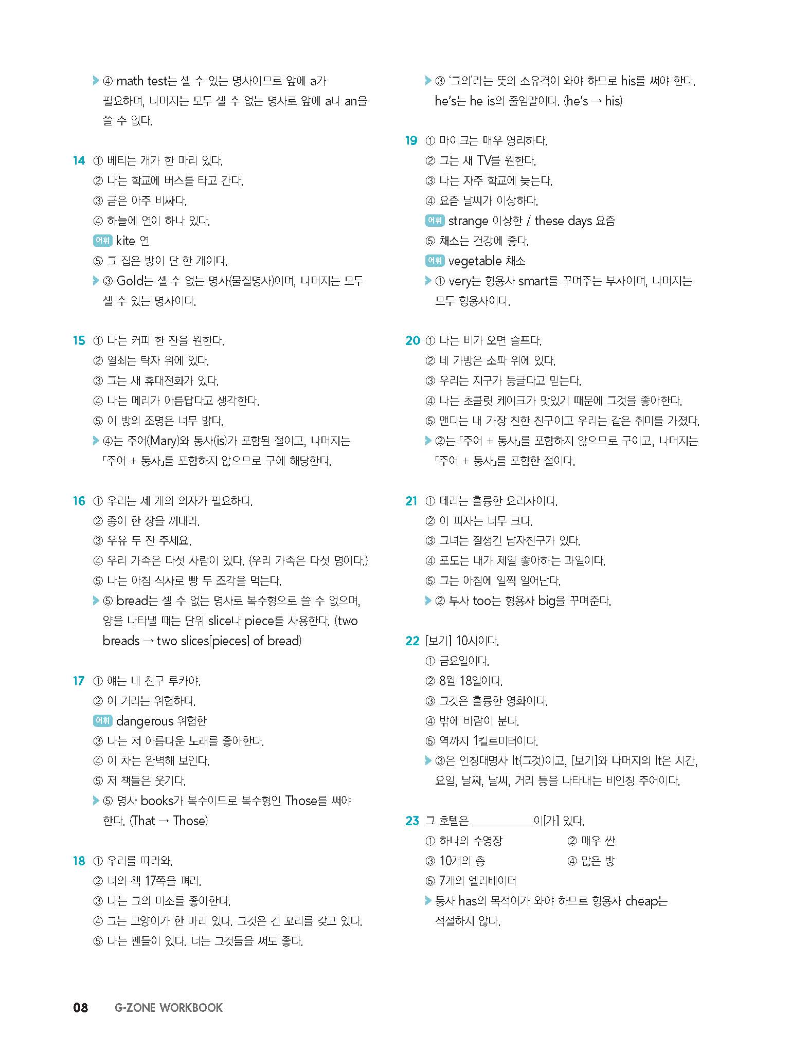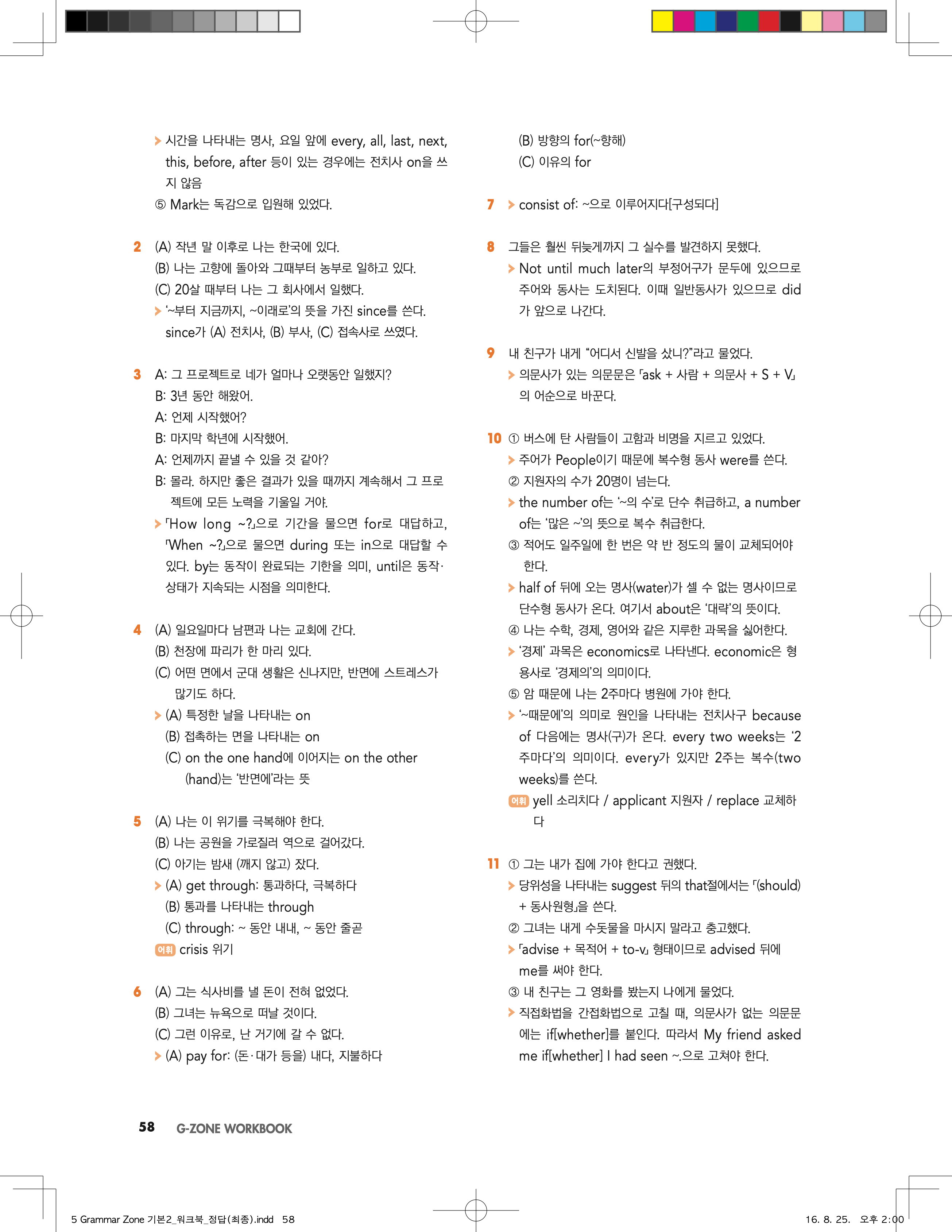 그래머존 기본편2 워크북 답지 해설 바로보는 사진답지 빠른답지 모바일최적화 grammar zone