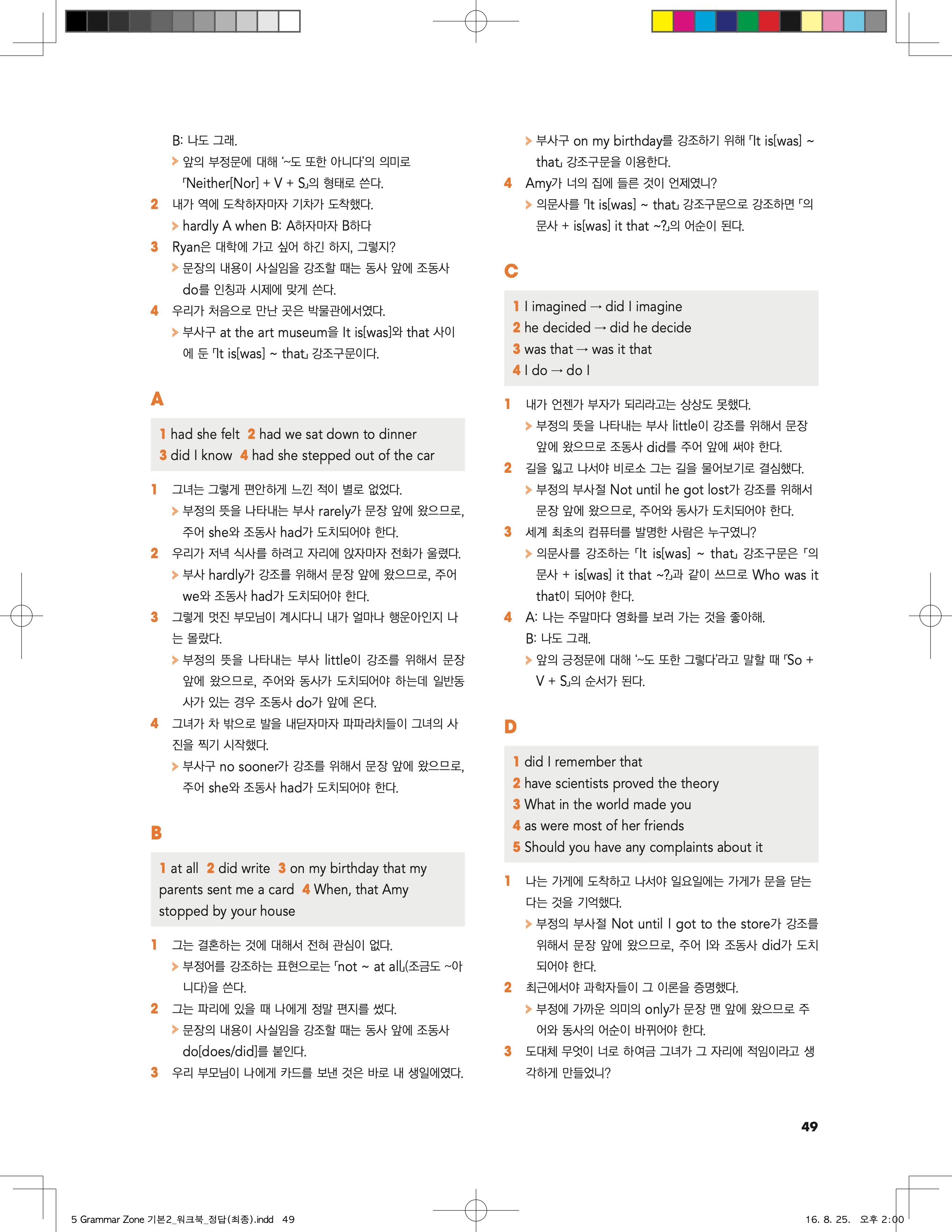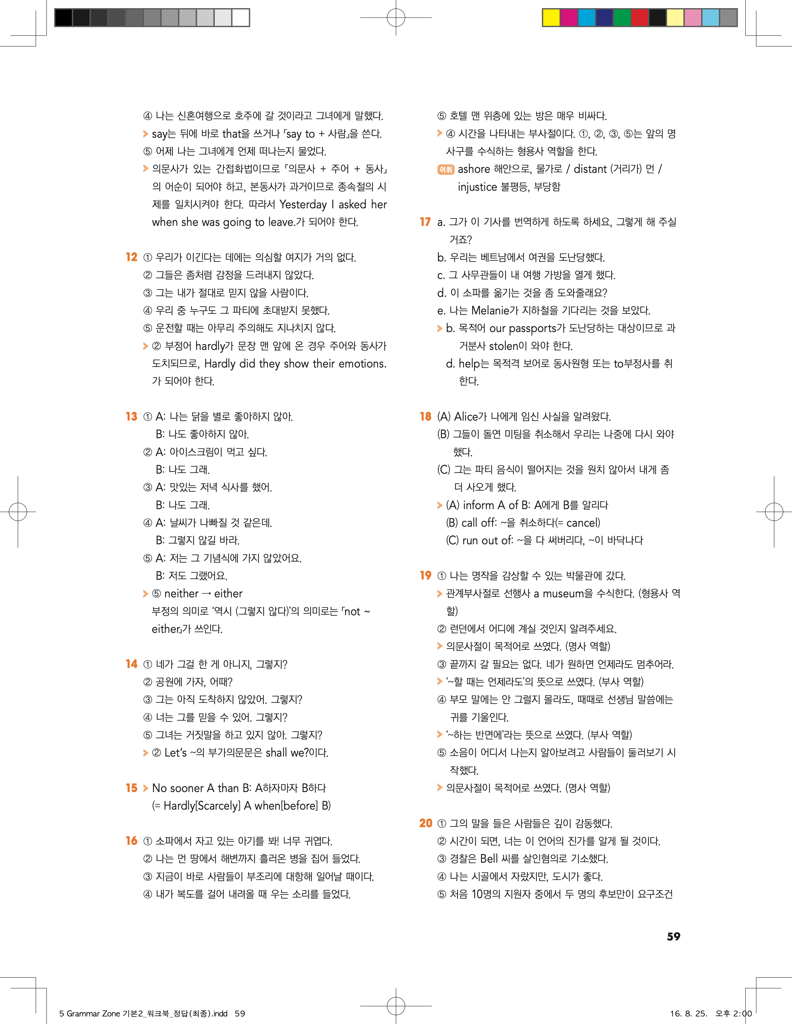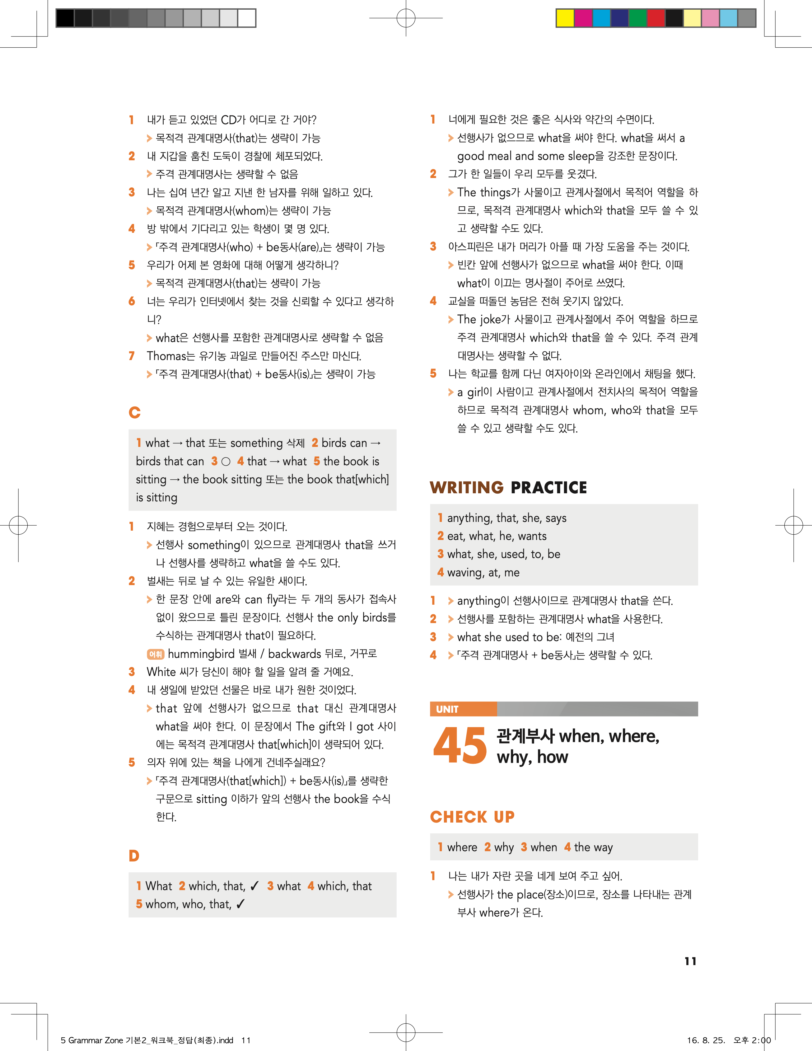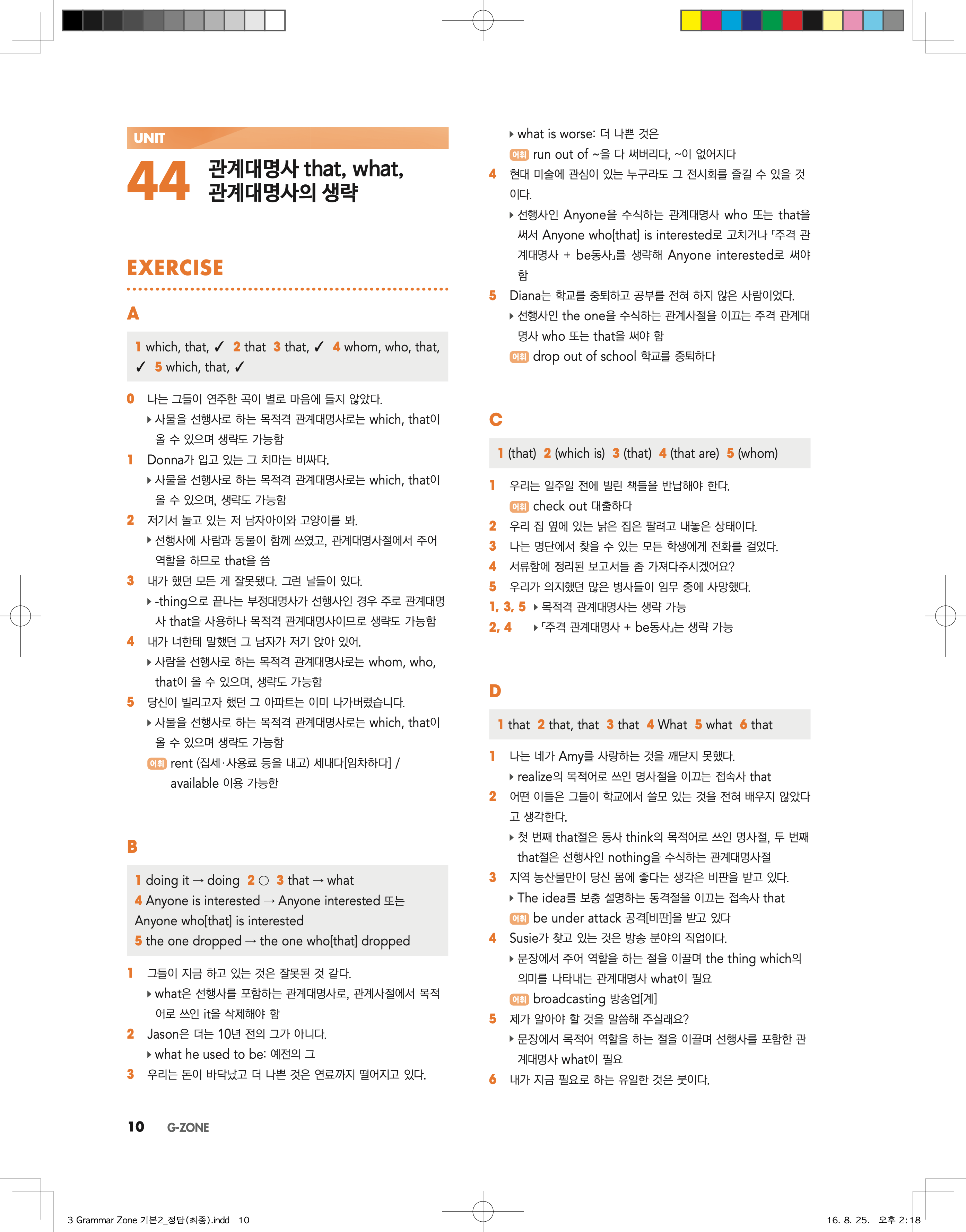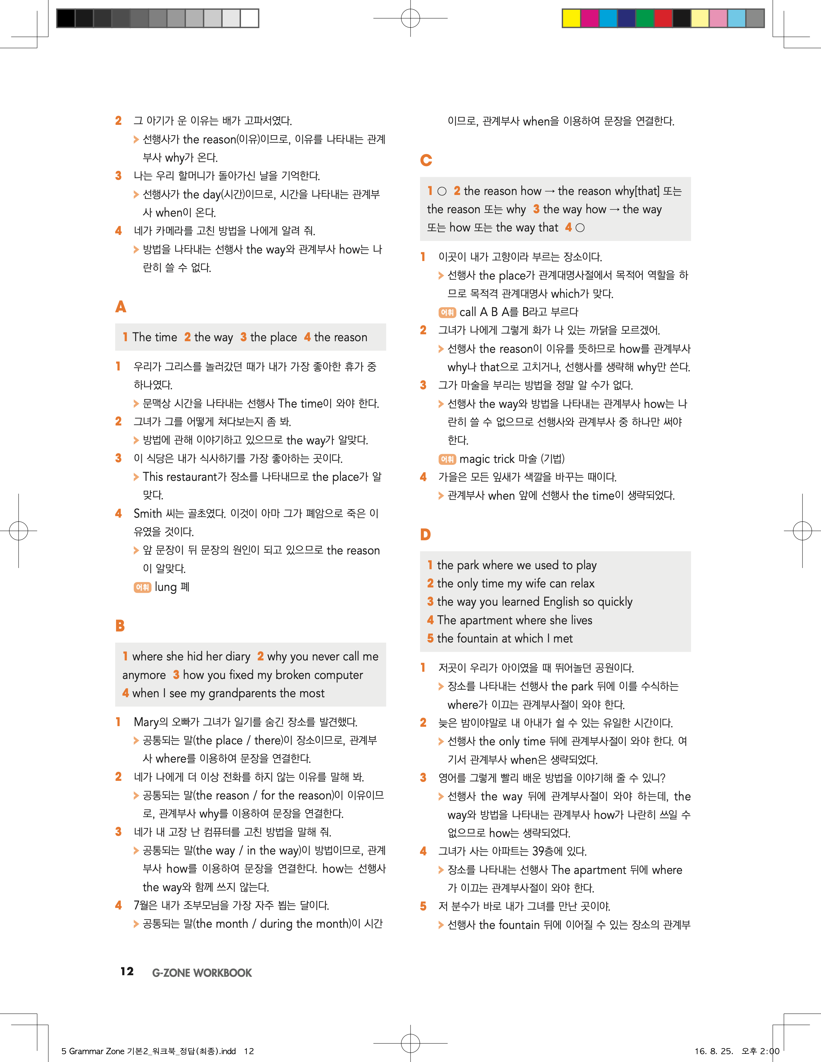 그래머존 기본편2 워크북 답지 해설 바로보는 사진답지 빠른답지 모바일최적화 grammar zone